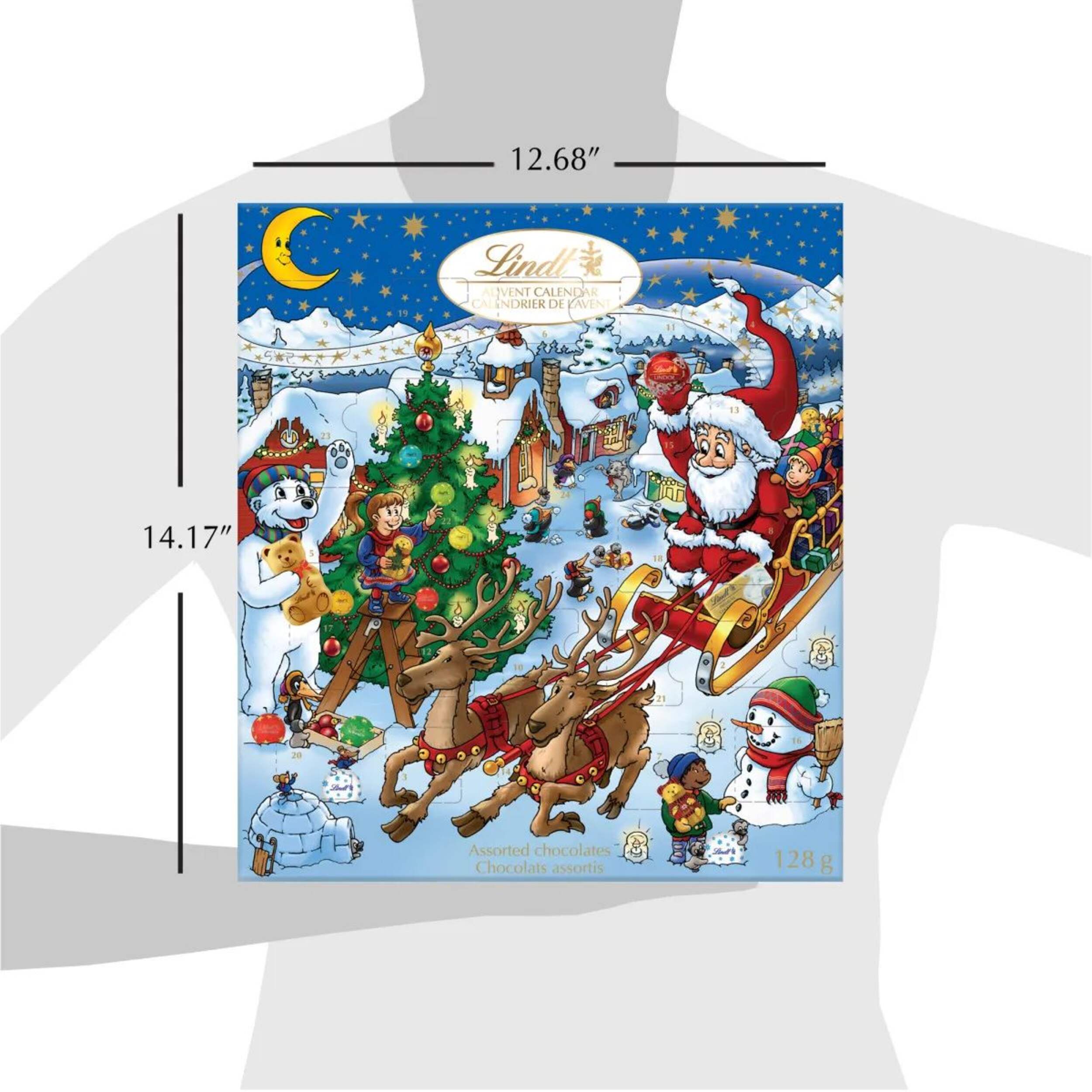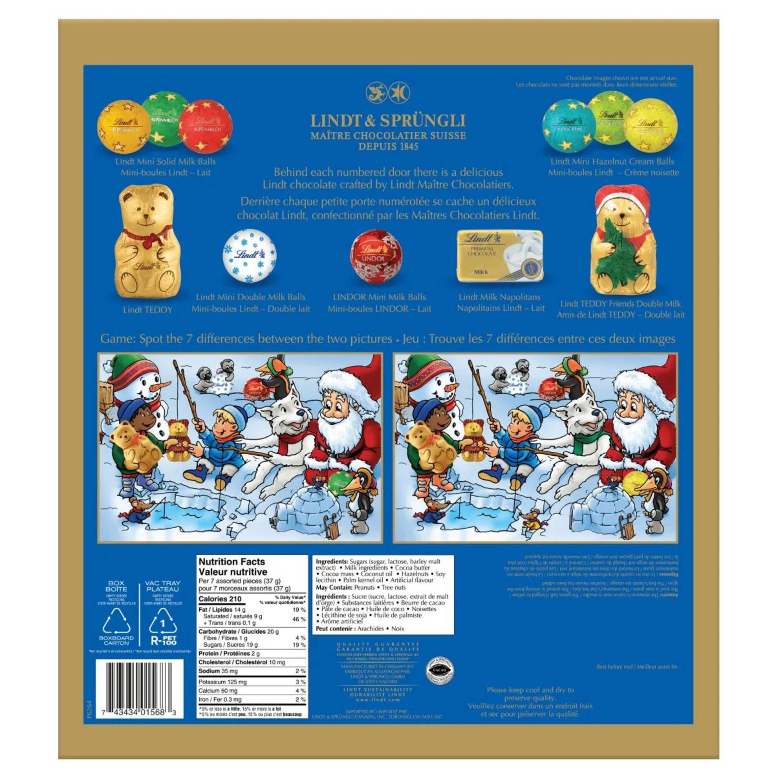 The Lindt Christmas Assorted Chocolate Advent Calendar is a classic festive treat to help you enjoy the tradition of counting down to Christmas. Behind each of the calendar's doors hides a Lindt chocolate surprise to unwrap daily. Lindt makes the wait for Christmas extra special with this assorted chocolate advent calendar filled with their popular Christmas chocolates. Enjoy a new festive Lindt chocolate every day as you count down the days until Christmas with this cherished holiday calendar.