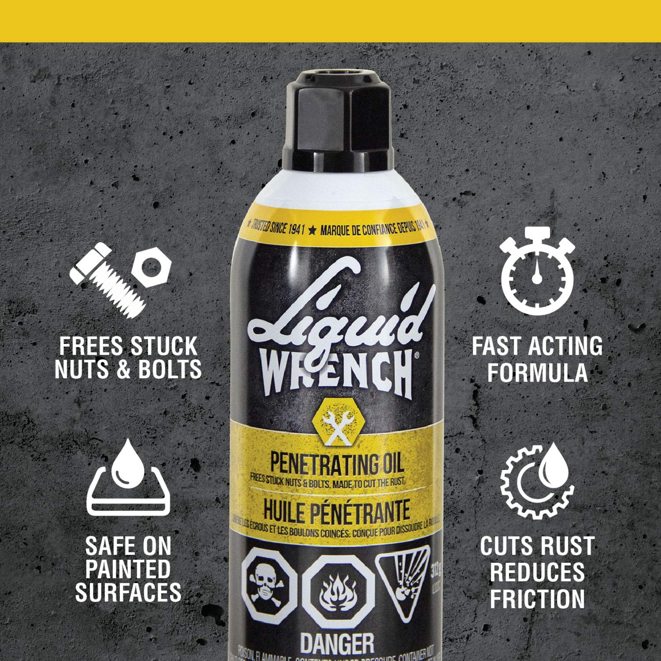 Liquid Wrench Penetrant is a powerful blend of quick-acting, fast penetrating solvents that loosens rusted nuts, bolts and parts in seconds