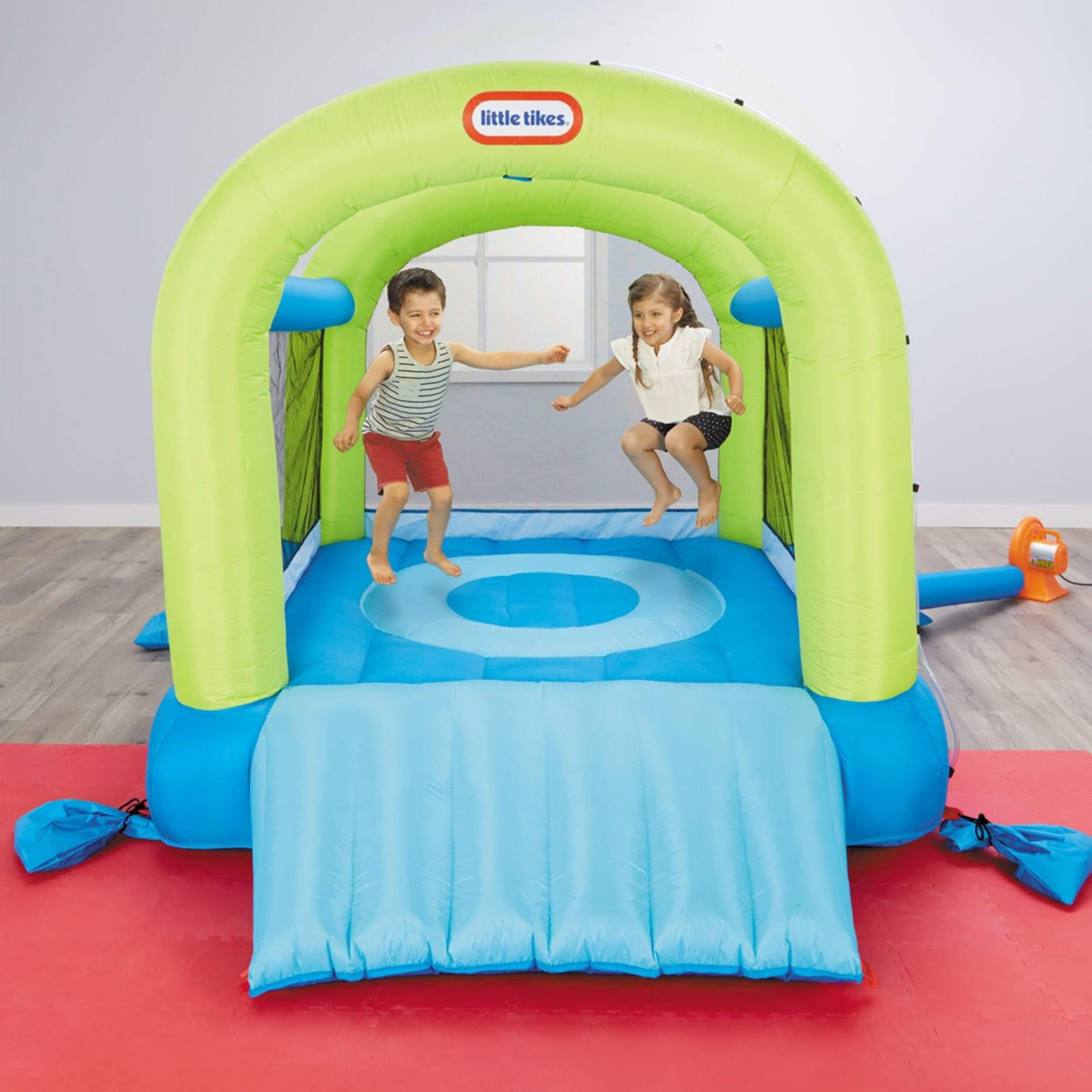 The Little Tikes Toddler Splash 'n Spray Bouncer is designed to provide hours of fun for children. This inflatable bouncer features a gentle slide and a mini pool area, allowing toddlers to enjoy water play safely. Constructed from durable, puncture-resistant materials, it ensures longevity and safety during playtime. The bouncer inflates quickly, making setup easy and convenient. Its compact design allows for easy storage when not in use.