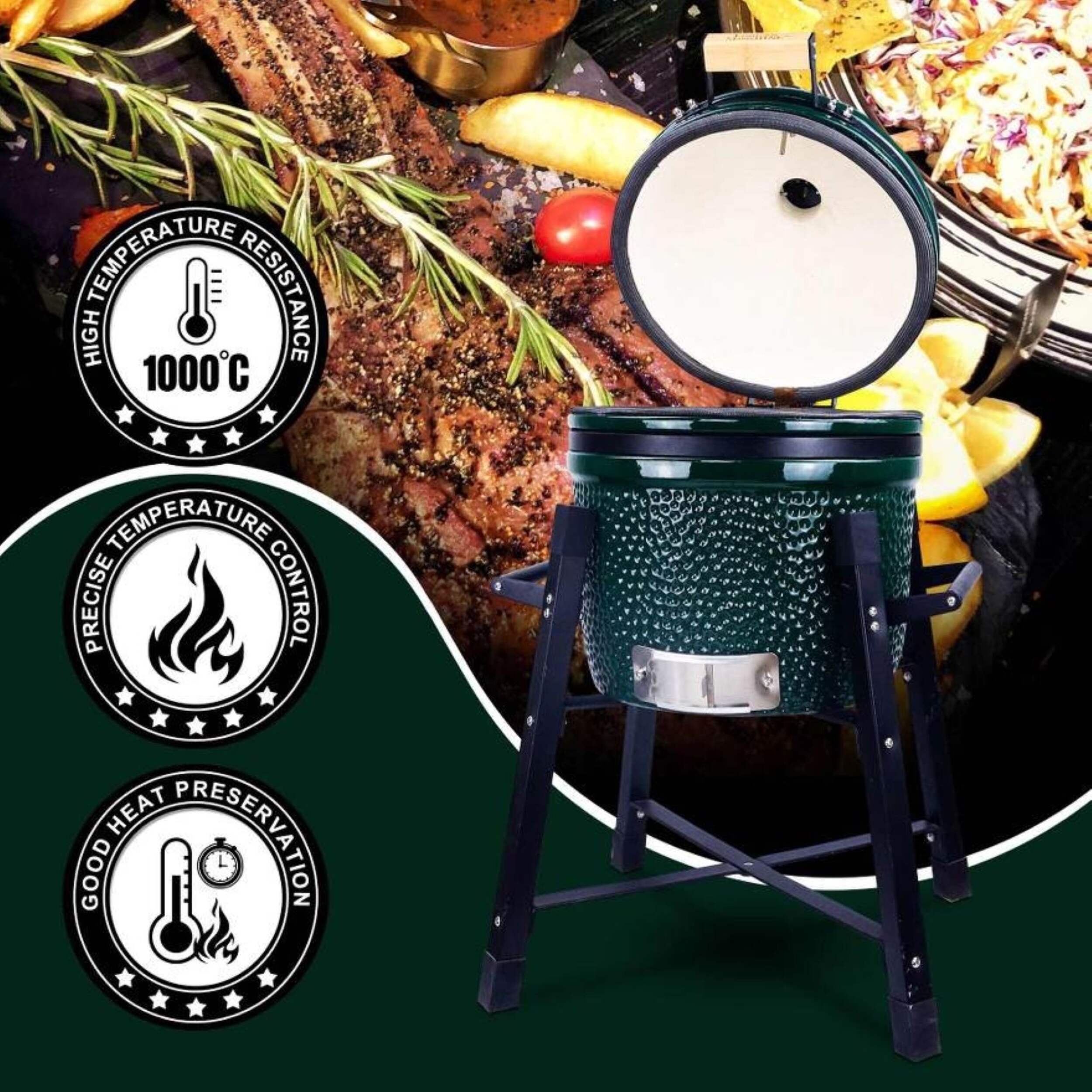 The London Sunshine Junior Series Green Kamado is great for couples and small gatherings. This kamado's compact size makes it ideal for use as both a camping grill and BBQ picnic companion. The grill's vibrant green colour even adds a touch of style to your outdoor cooking experience. Thanks to London Sunshine, you'll be able to enjoy the convenience of a portable grill that doesn't compromise on performance.