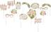 Cute green and pink photo booth props include a bouquet, speech bubbles with cute sayings, fun glasses, and more