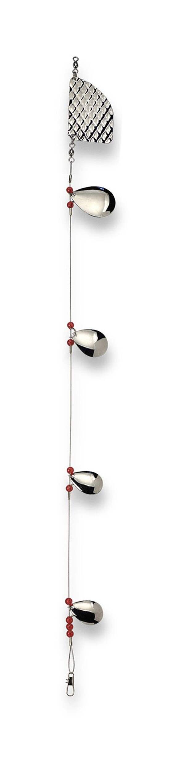 Lucky Strike's Lake Troll trolling lure helps you hook trout and salmon by mimicking a school of baitfish. The 20-inch lure has 4 hammered brass blades and a 2.5- inch rudder to give it action in the water as you troll. The 95 pound test stainless steel wire ensures this lure holds up to the fight of even the biggest fish, keeping your bait in the strike zone until you reel in your catch.