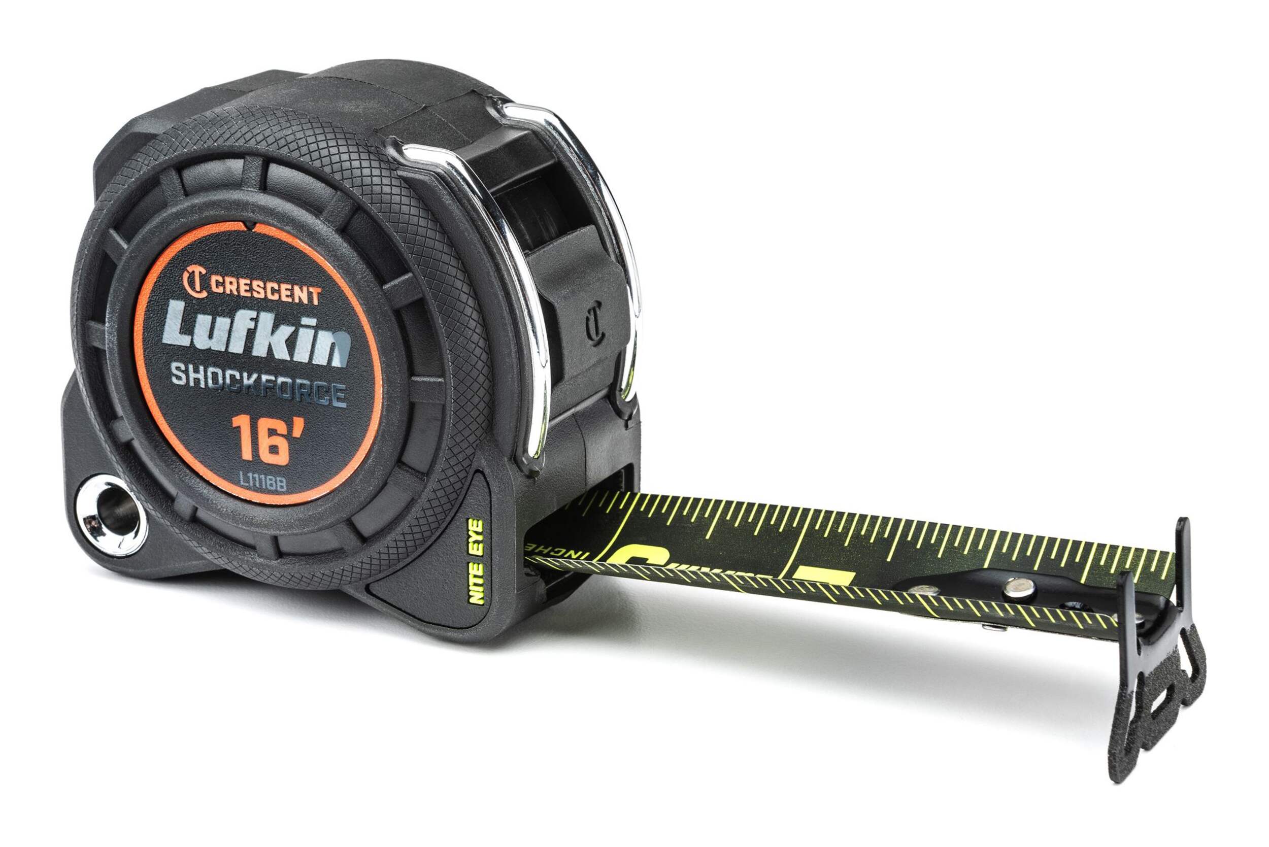 Lufkin Shockforce Nite Eye™ Tape Measure offers a rugged impact-resistant compact case for longer job durability