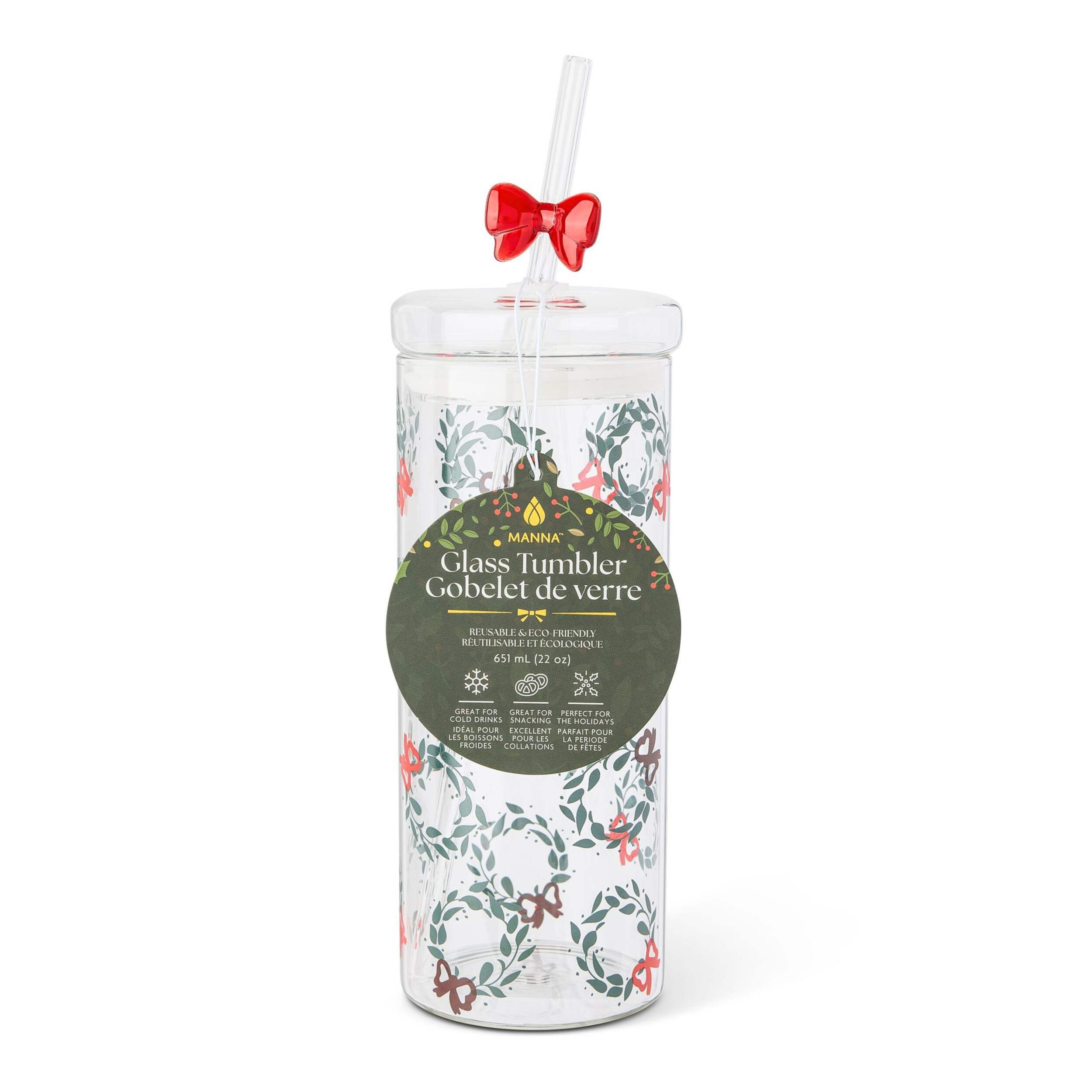 Enjoy your favourite beverages in style with the Manna Printed Glass Tumbler. This 650-ml tumbler features a festive design and comes with a charming holiday-themed straw, making it perfect for seasonal celebrations.