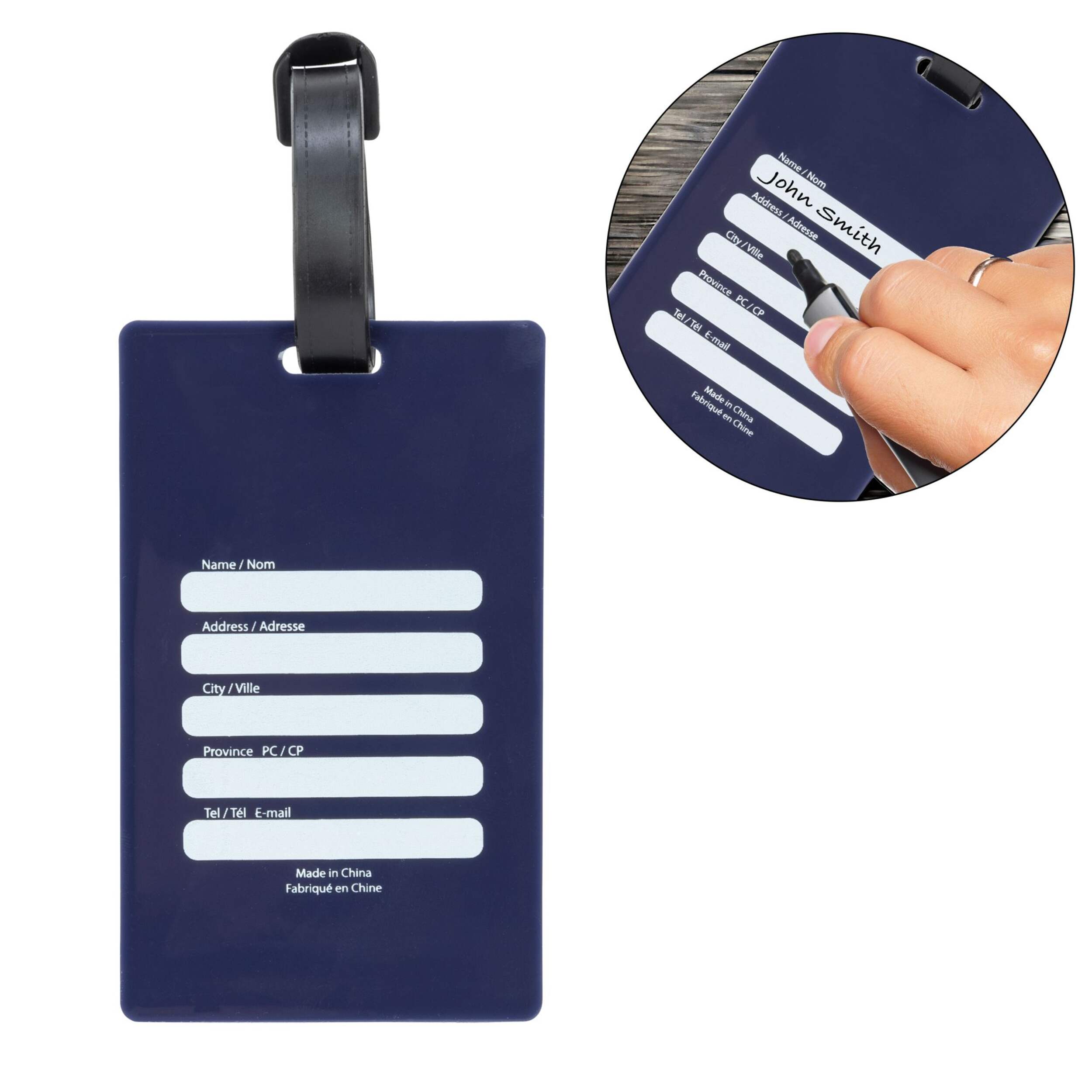Personal information can be written on back of tag