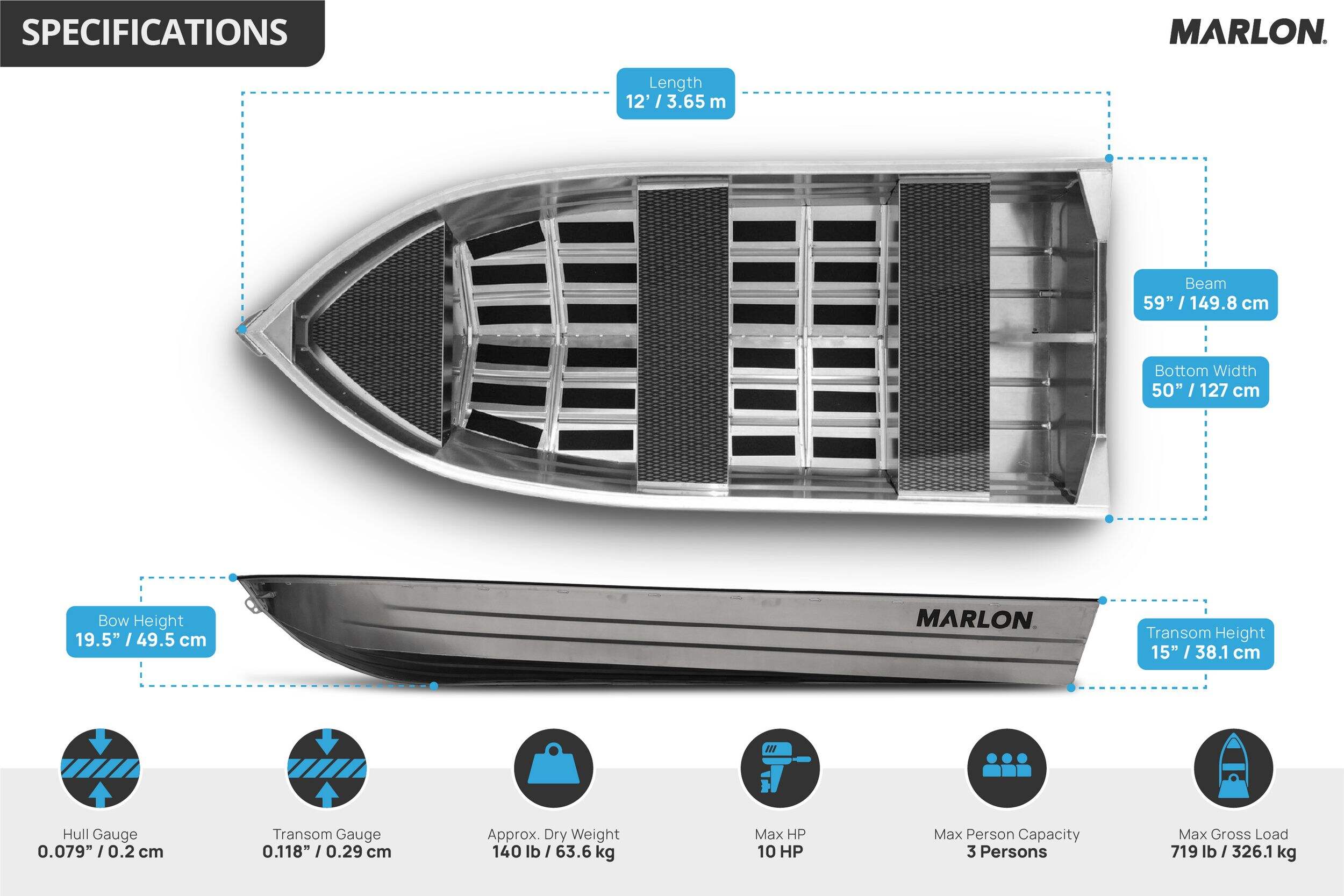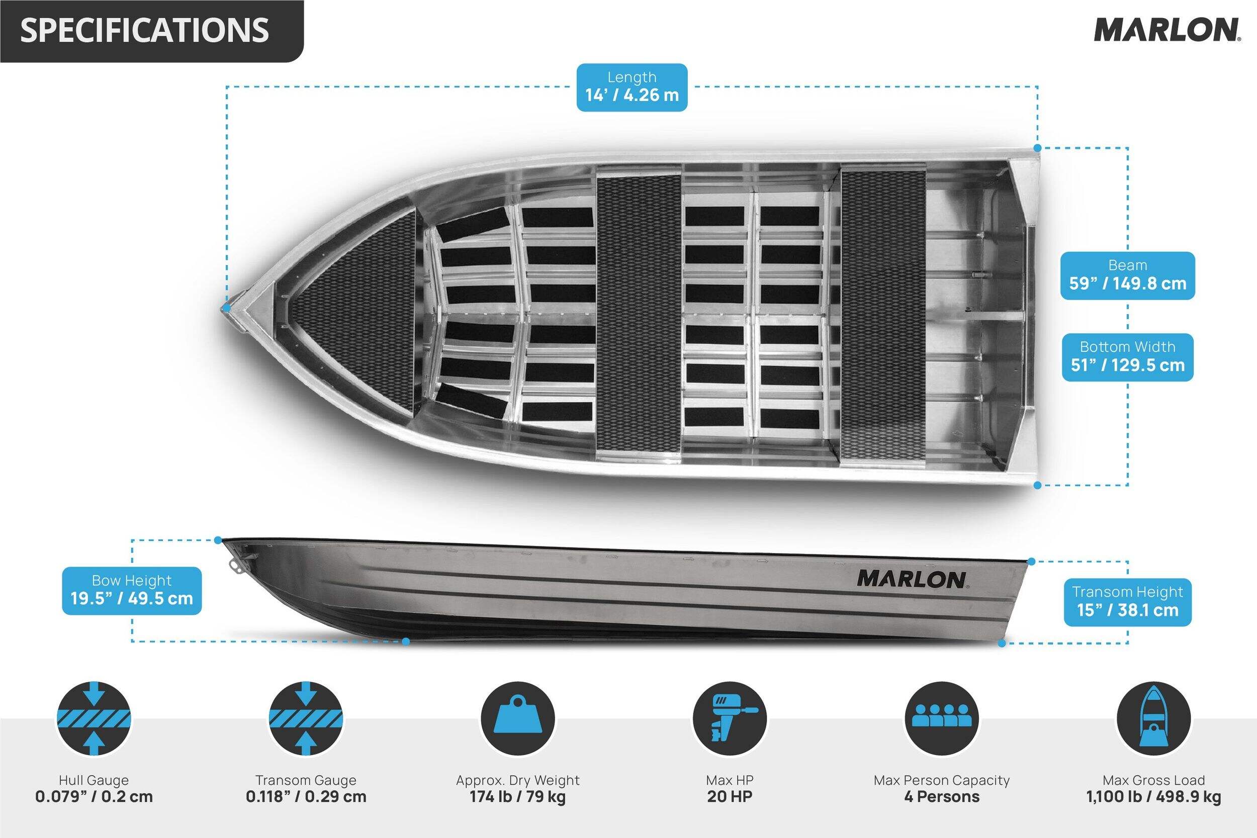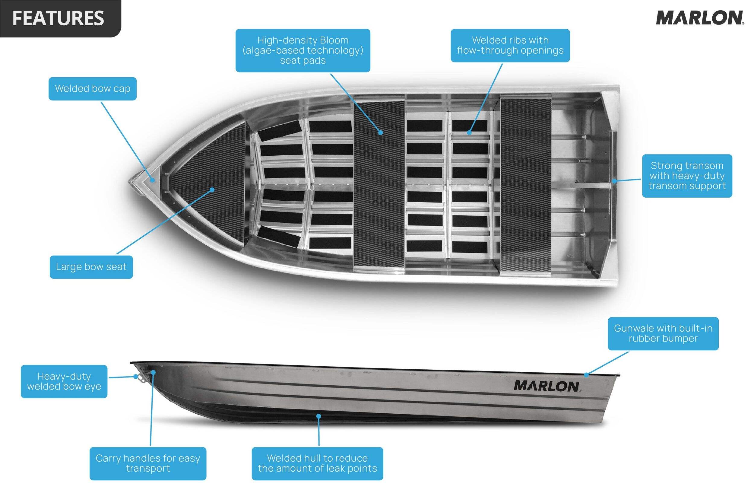 The Marlon Aluminum Utility Boat is lightweight but powerful. Designed to accommodate a wide variety of aquatic activities, this utility boat is sure to prove its mettle on the water. With comfortable padded seats and non-skid strips to help maintain your footing, this boat is built for optimal stability.