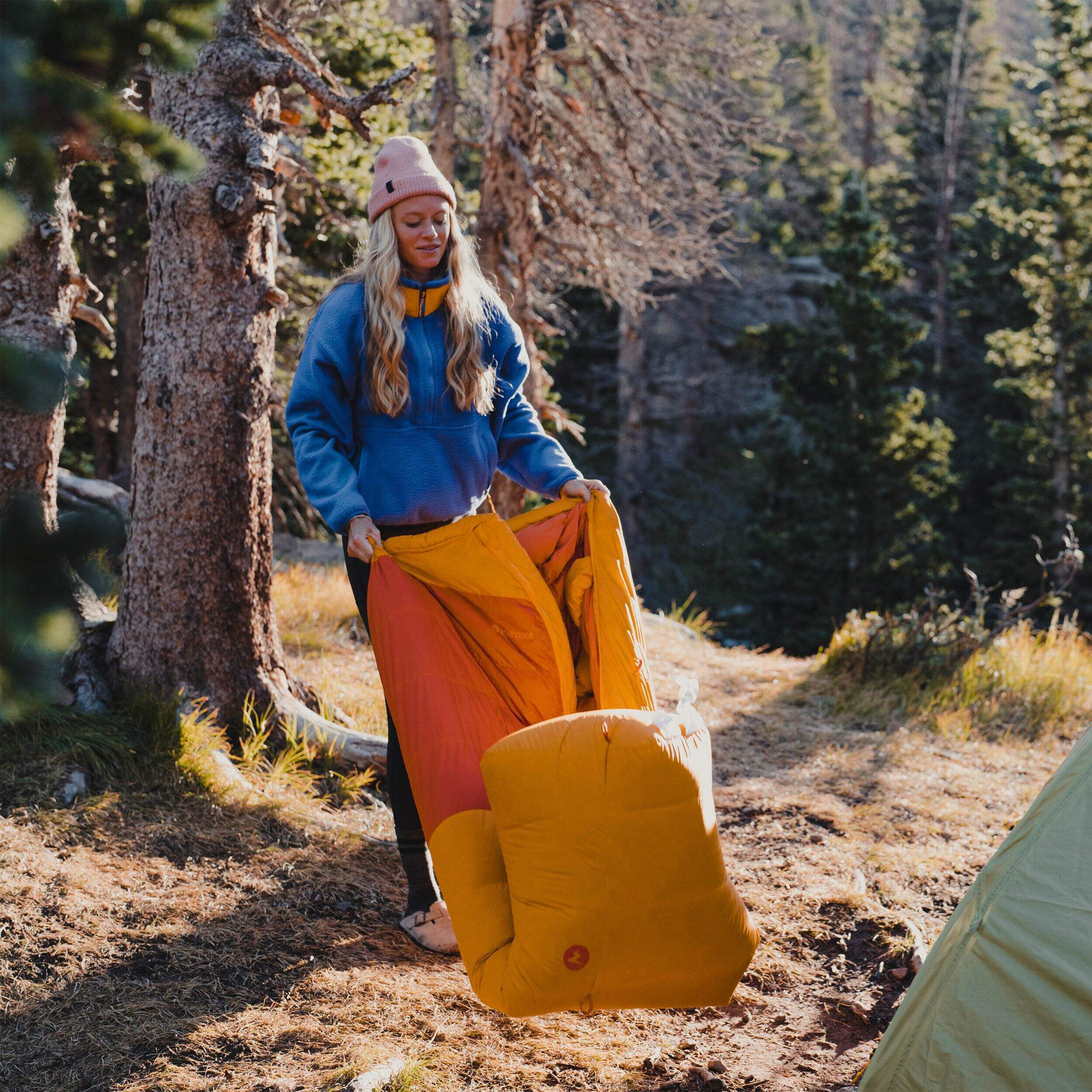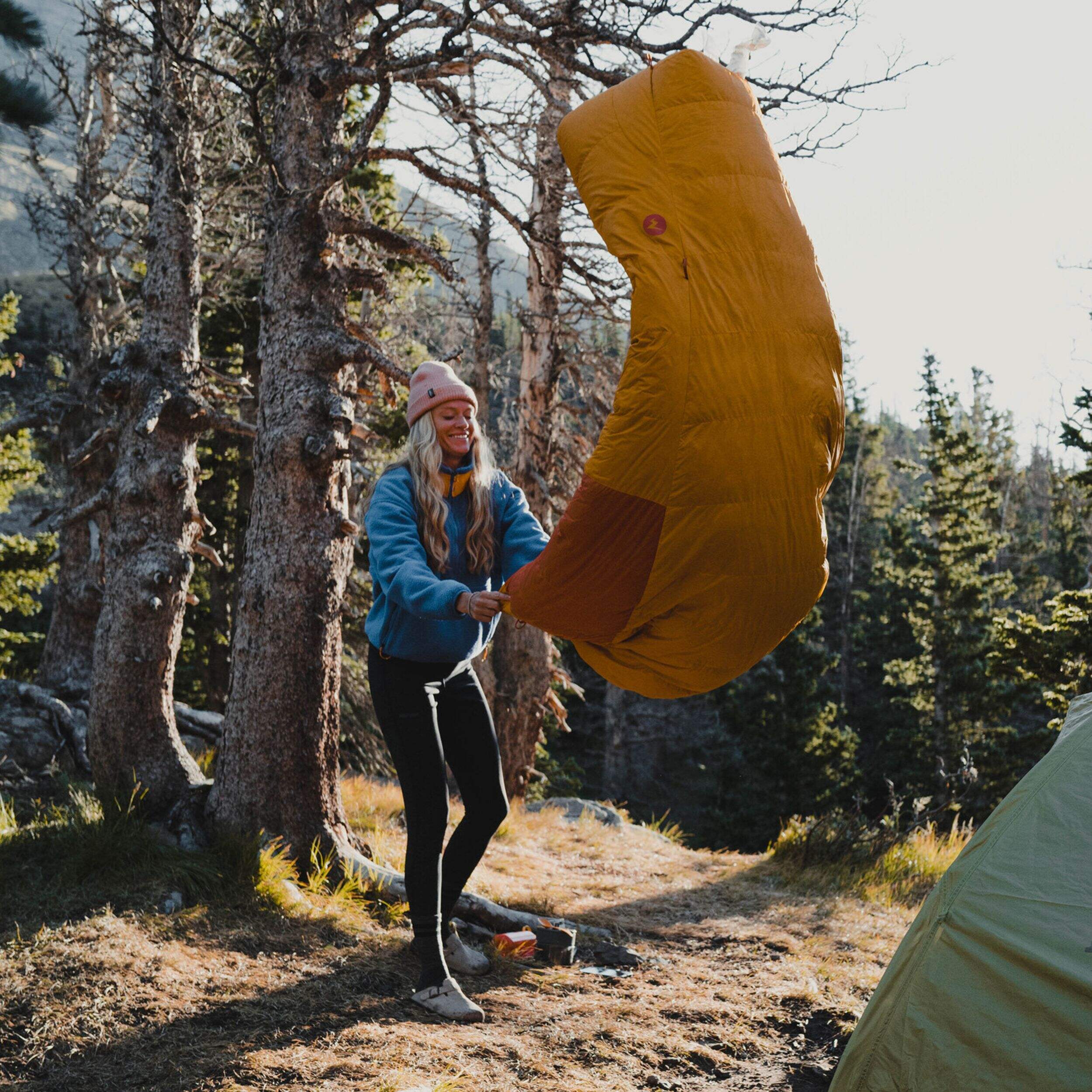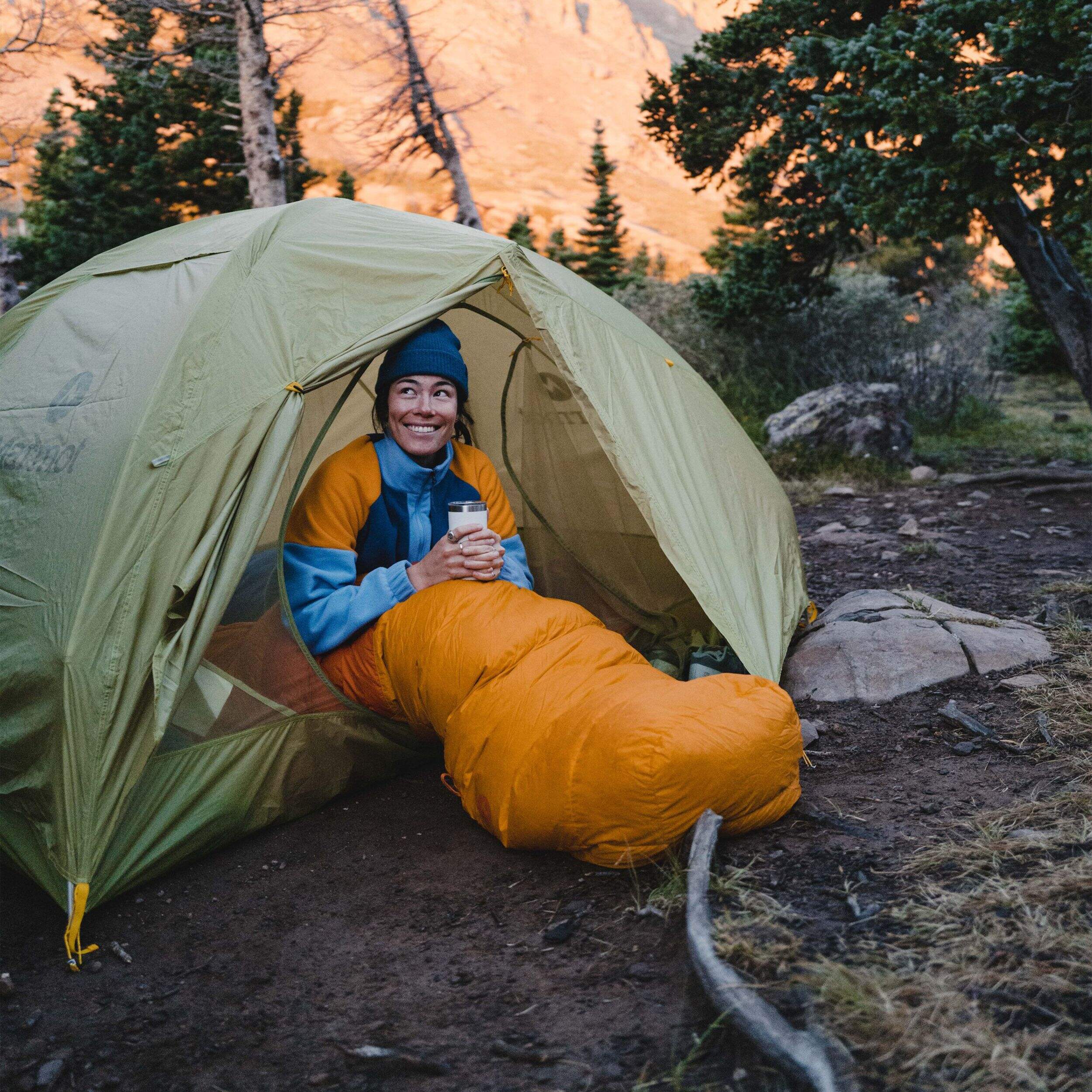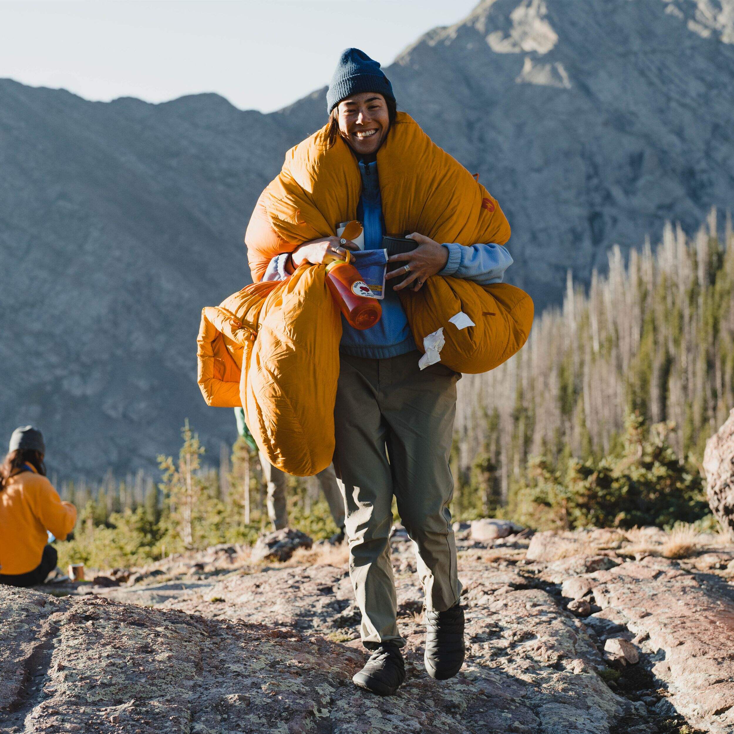 Expand your campsite horizons beyond your car with a pack-friendly down bag that's packed full of comfort. Lofty yet light, this down mummy bag is compact enough to carry on your back yet roomy enough for nights cozied up in the trunk. The 100% post-consumer recycled ripstop shell and liner can handle extended use on the trail, while lightweight 600-fill down keeps you warm—whether you're setting up a plush off-grid basecamp for the weekend or moving to new sites every night. An anti-snag zipper slider makes getting in and out a breeze and lets you easily dial in your comfort throughout the night. The internal stash pocket is perfect for keeping small valuables safe and warm with the help of your body heat.