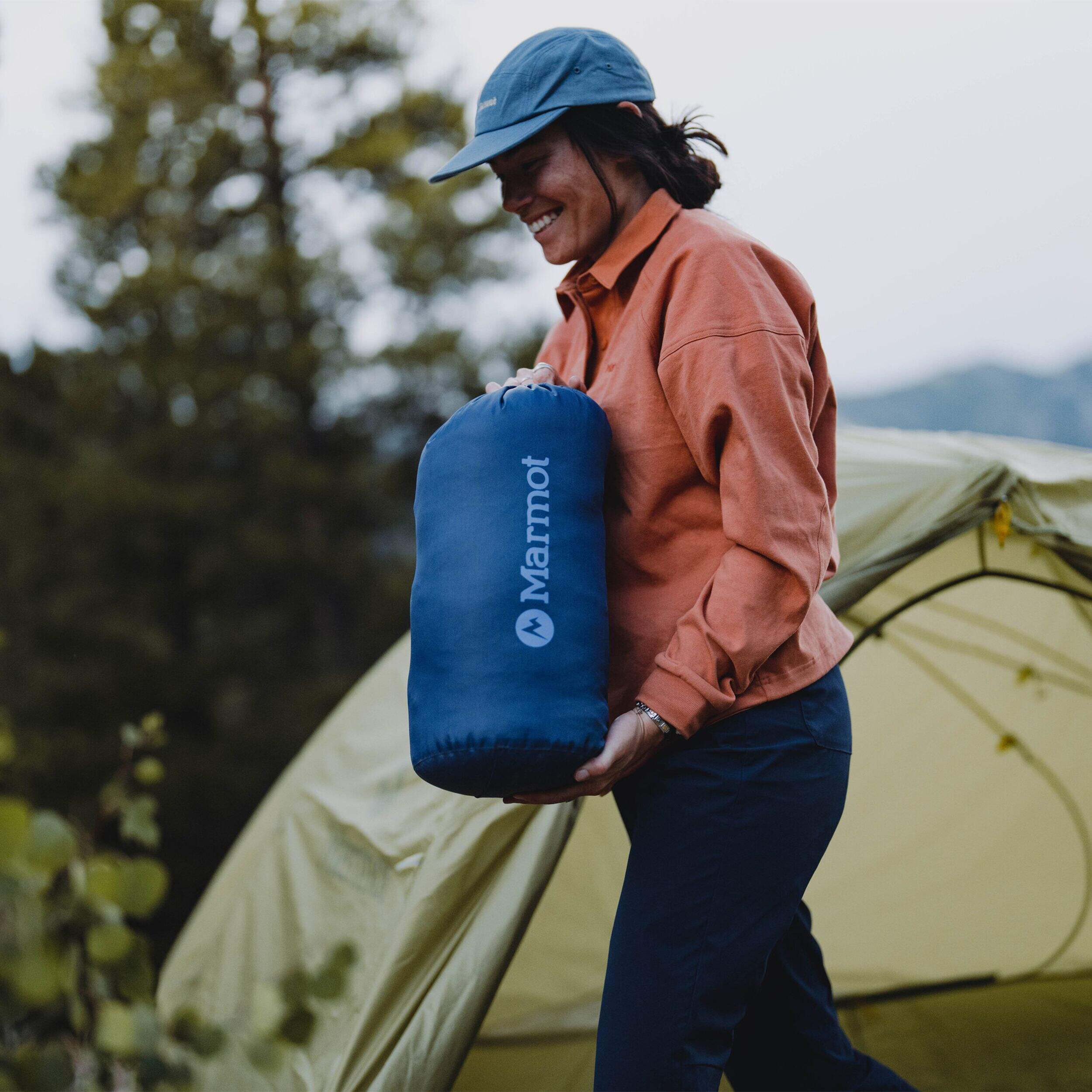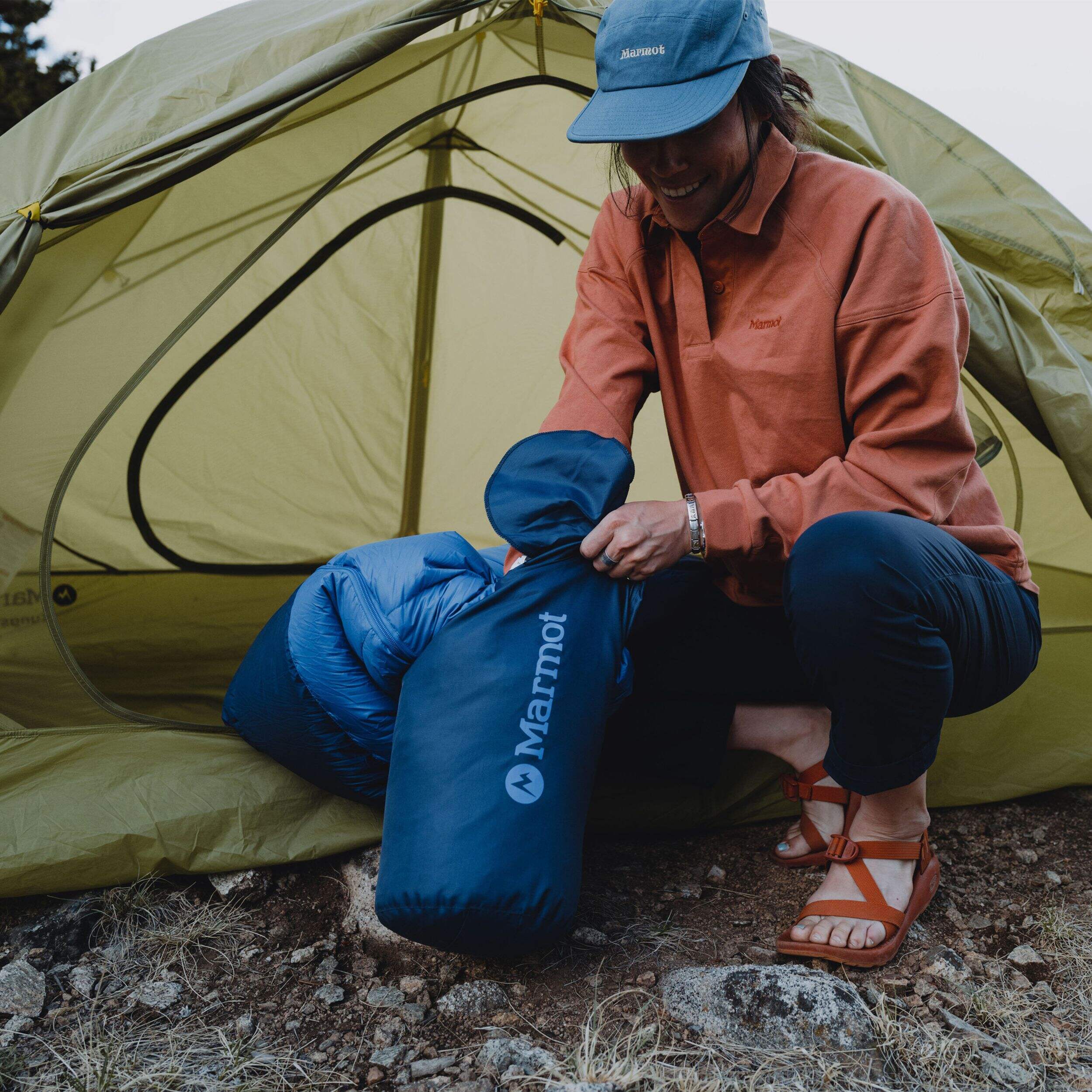 Expand your campsite horizons beyond your car with a pack-friendly down bag that's packed full of comfort. Lofty yet light, this down mummy bag is compact enough to carry on your back yet roomy enough for nights cozied up in the trunk. The 100% post-consumer recycled ripstop shell and liner can handle extended use on the trail, while lightweight 600-fill down keeps you warm—whether you're setting up a plush off-grid basecamp for the weekend or moving to new sites every night. An anti-snag zipper slider makes getting in and out a breeze and lets you easily dial in your comfort throughout the night. The internal stash pocket is perfect for keeping small valuables safe and warm with the help of your body heat.