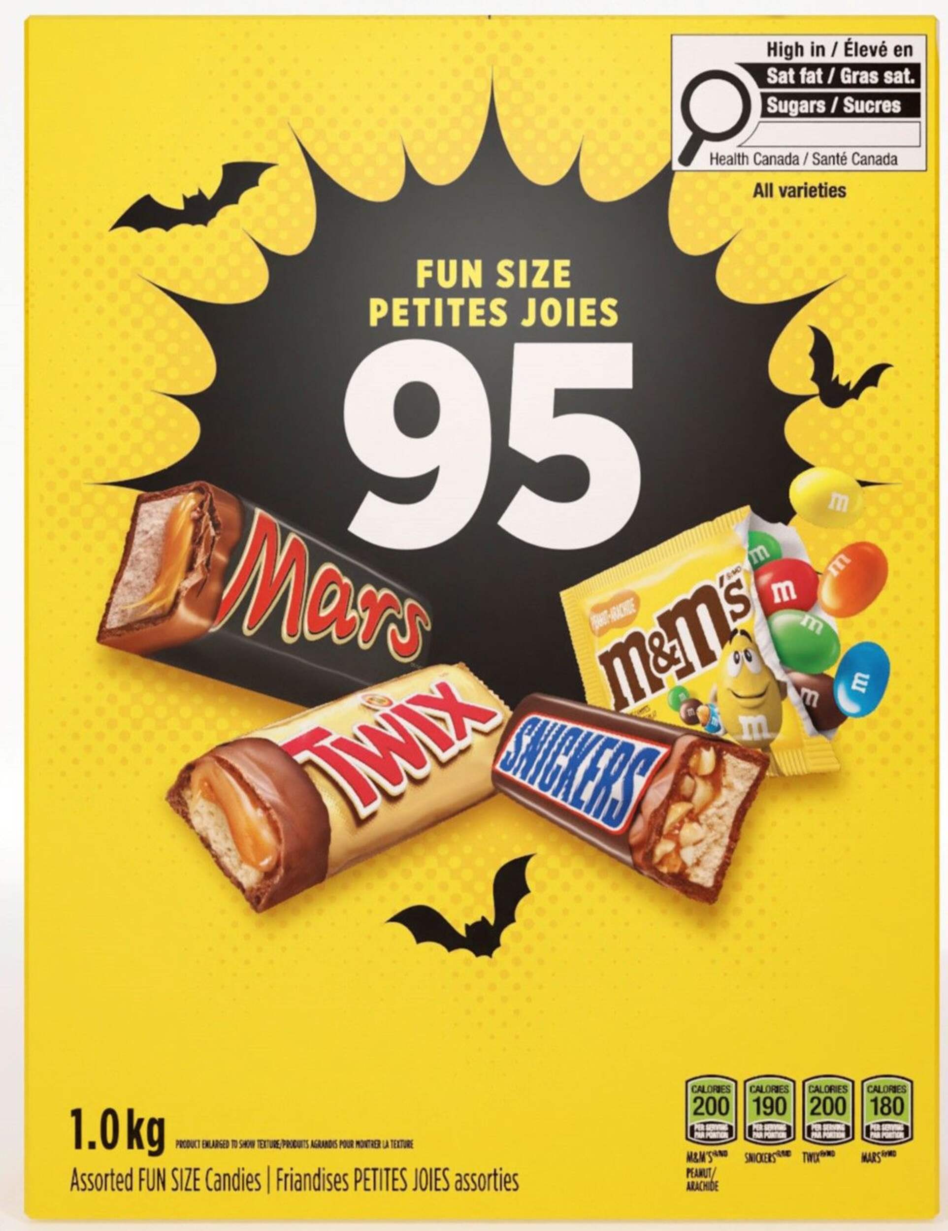 The Mars Chocolate Halloween Variety Pack contains an assortment of fun-size candies such as Twix, Mars, M&M's Peanut, M&M's Milk Chocolate, and Snickers bars. Each mini chocolate bar is individually wrapped, making it easy to toss in lunches or Halloween candy bowls. With all your favorite Mars candy brands together in one variety pack, you can satisfy every chocolate craving this Halloween season.
