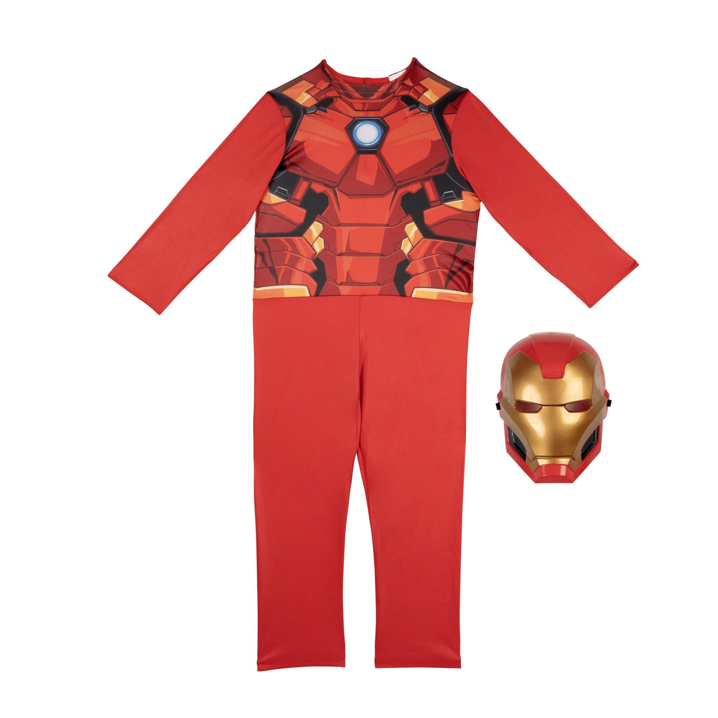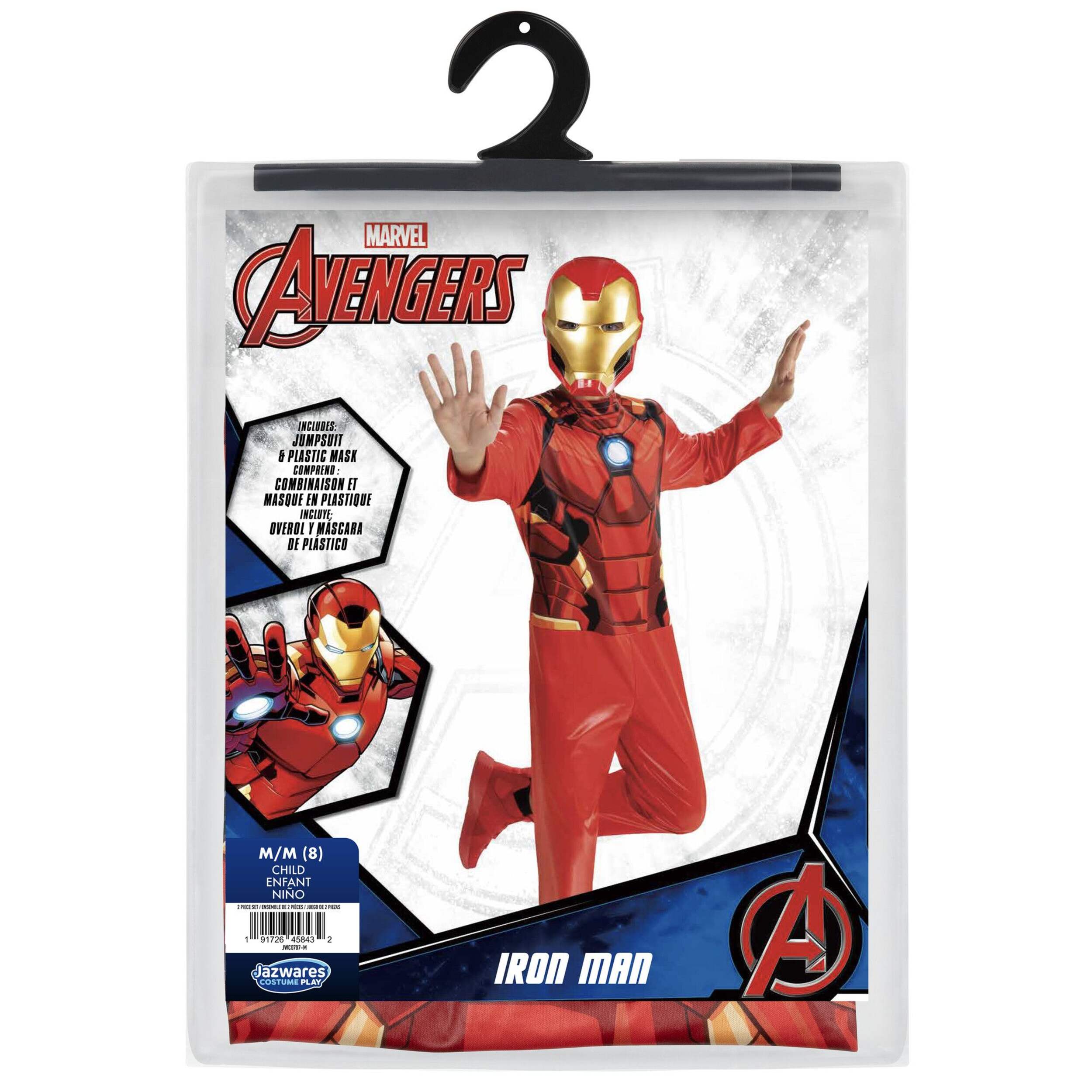 Join the Avengers in the Marvel Iron Man official youth Halloween costume. Inspired by Tony Stark's latest tech, this fabric jumpsuit features a high-resolution printed design and closes with a hook and loop fastener. It also includes a plastic mask with open eye holes. All superhero costumes are made from high-quality fabric with high-resolution prints. Jazwares Costume Play creates costumes for Halloween and everyday play that are made for every member of the family. Officially licensed Marvel product from Jazwares.