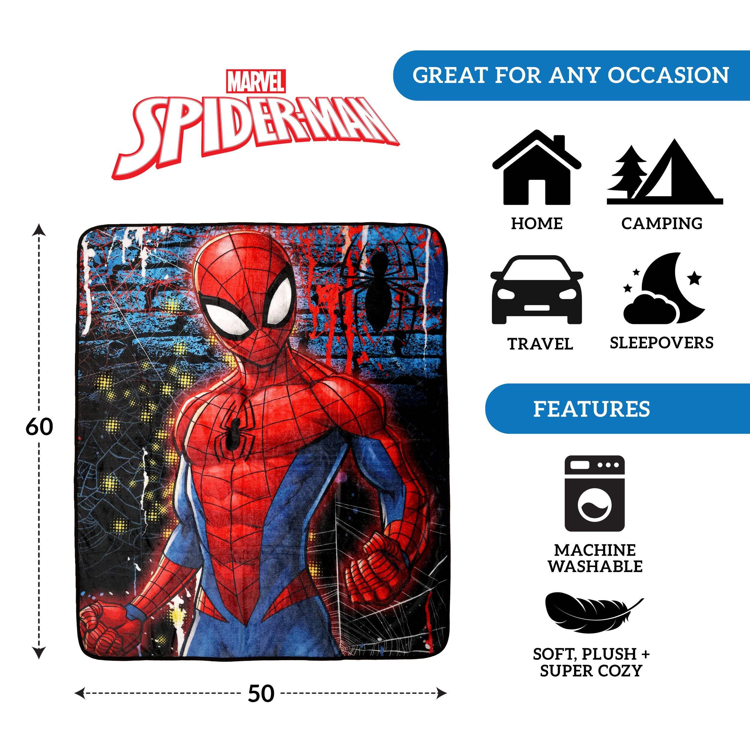 OFFICIAL MARVEL PRODUCT: Featuring a bright and vibrant high-definition your favourite Marvel character, Spider-Man. This high-quality digital printing not only makes for a great blanket after every wash, it also makes this character come to life!