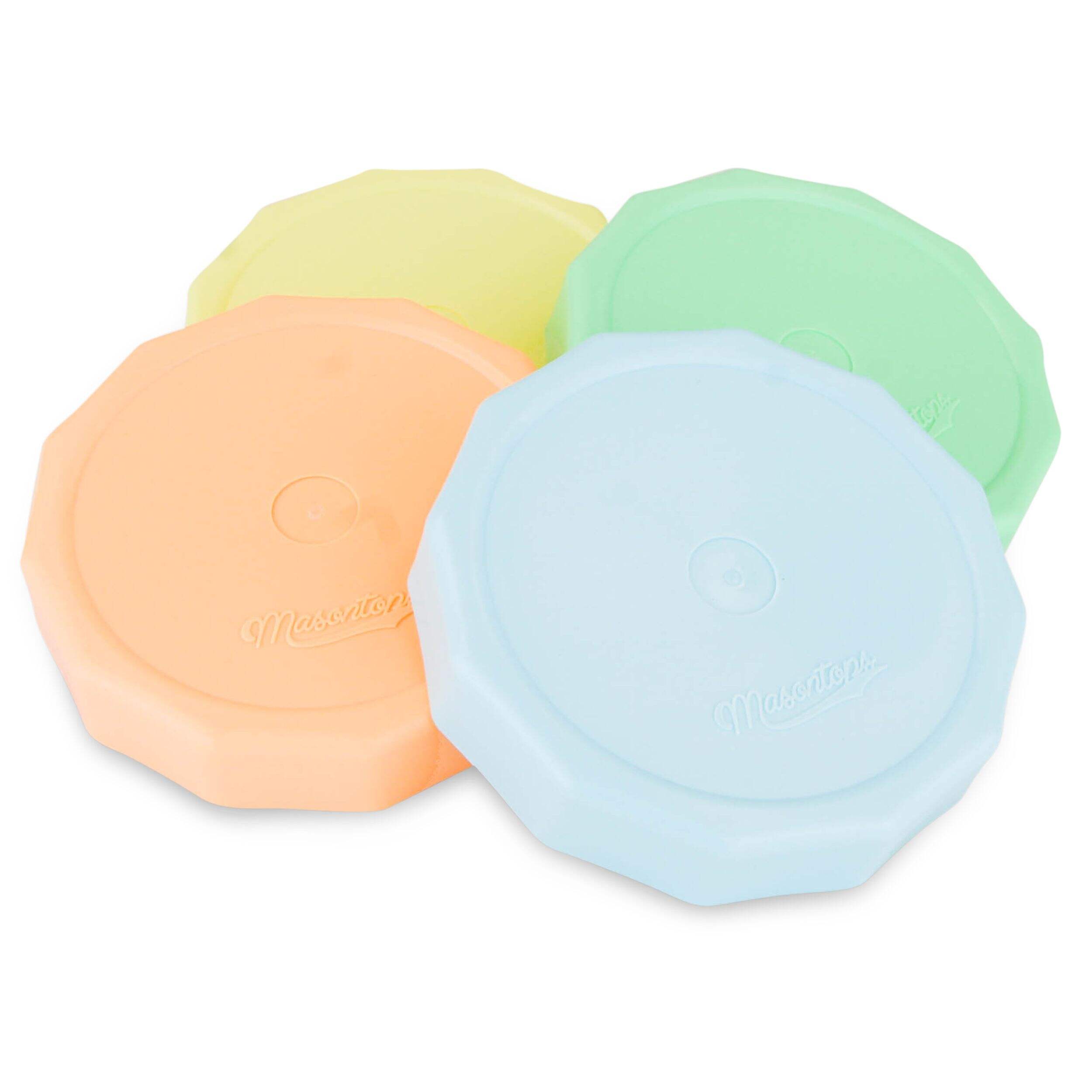 Masontops Tough Tops Durable Plastic Lids feature assorted pastel colours
