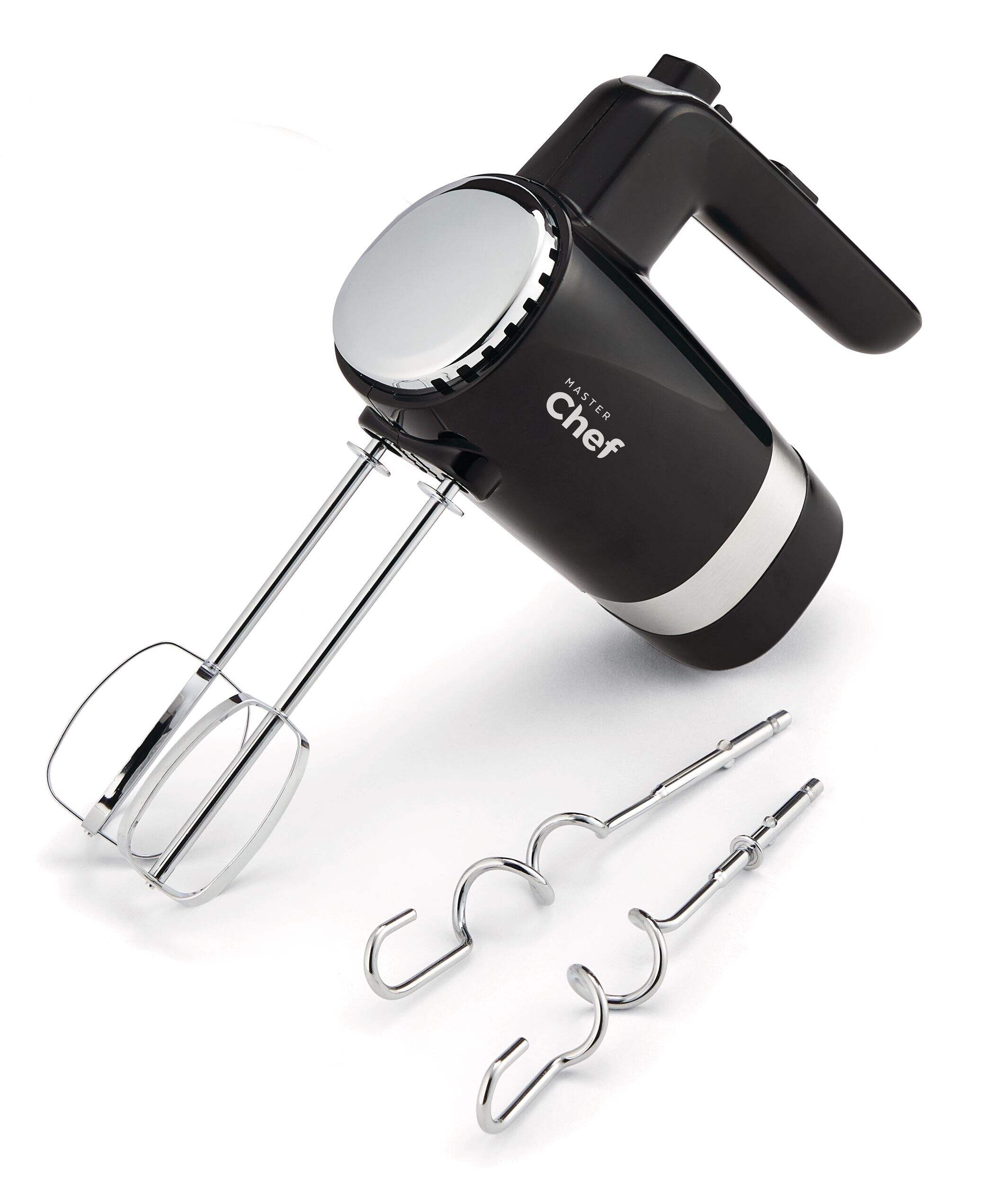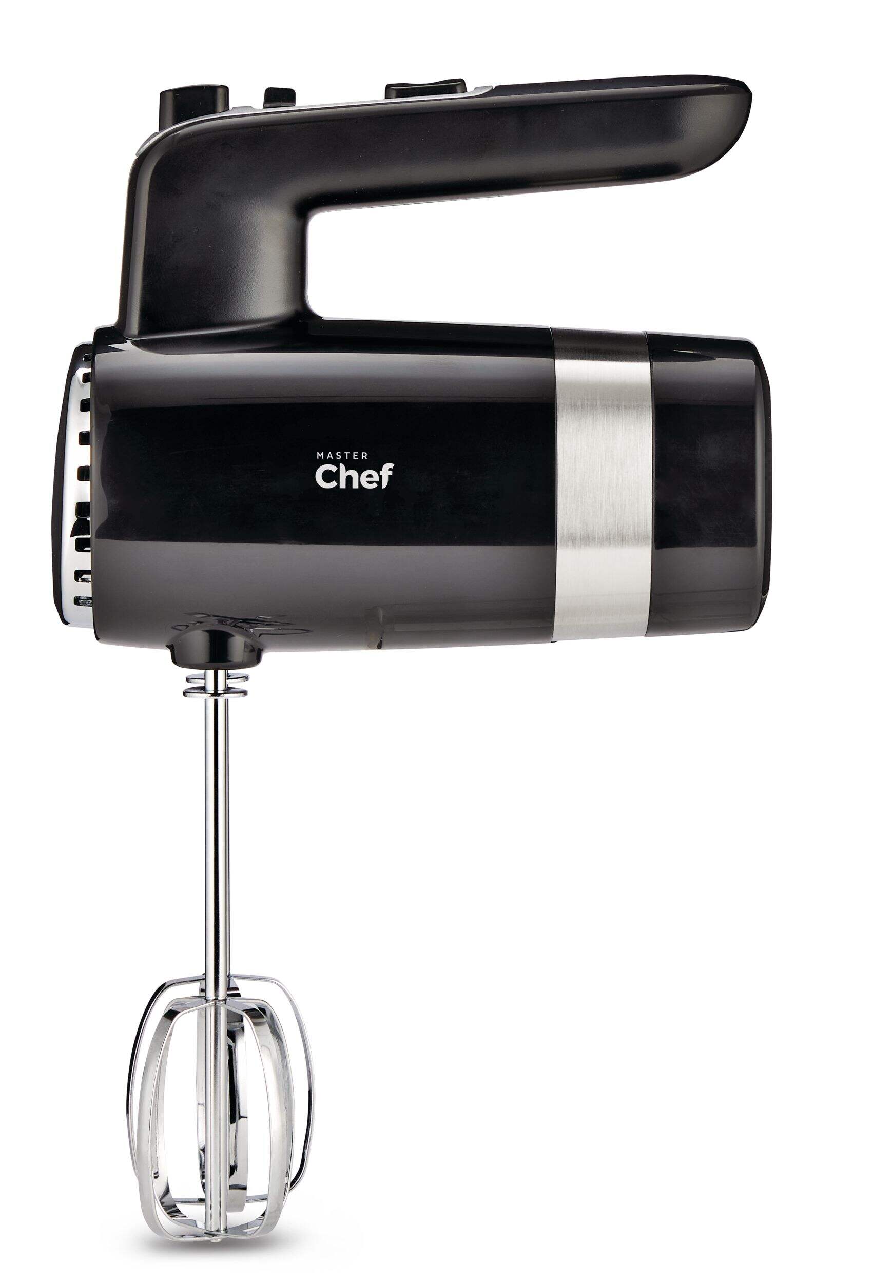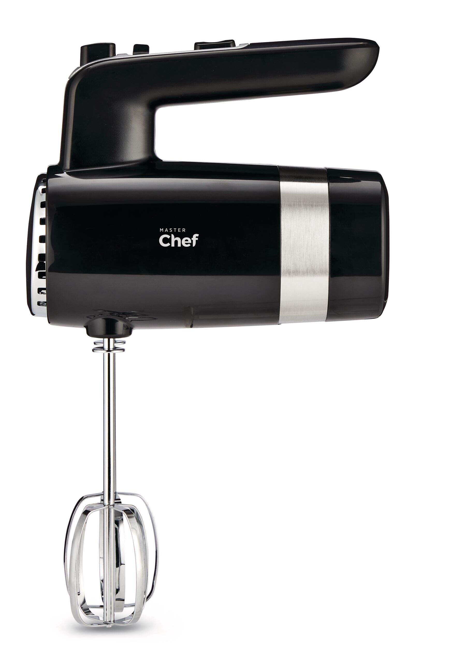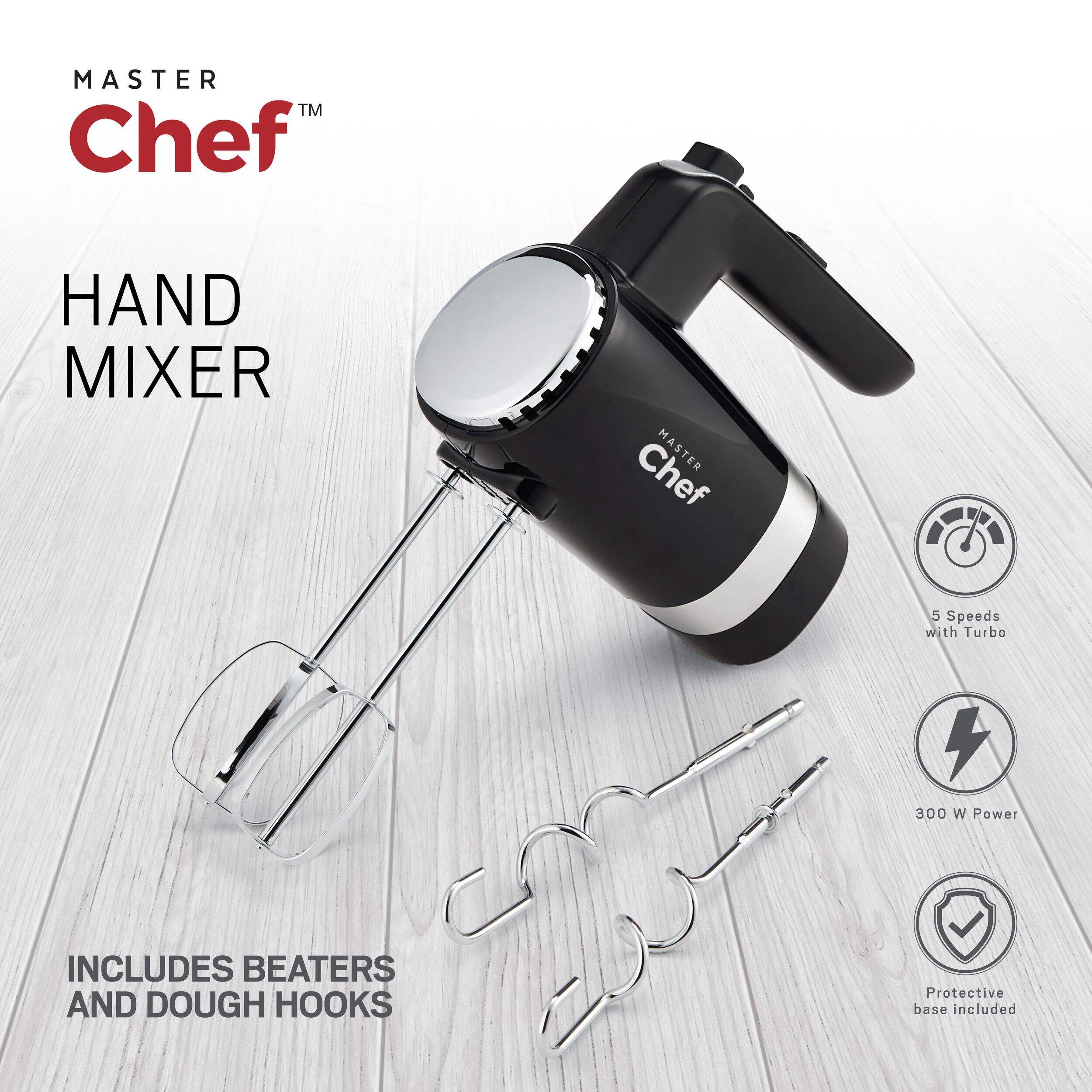 The MASTER Chef 300W 5-Speed Electric Hand Mixer is an easy way to whip up baking masterpieces. With ten speeds and a powerful 300-watt motor, this hand mixer tackles everything from whipped cream to bread dough with ease. The durable ABS and SUS housing keeps things steady as you mix, while the chrome-plated beaters and dough hook allow you to handle multiple recipes without switching attachments. Simply plug in, select your speed, and let the MASTER Chef hand mixer do the work so you can enjoy the results.