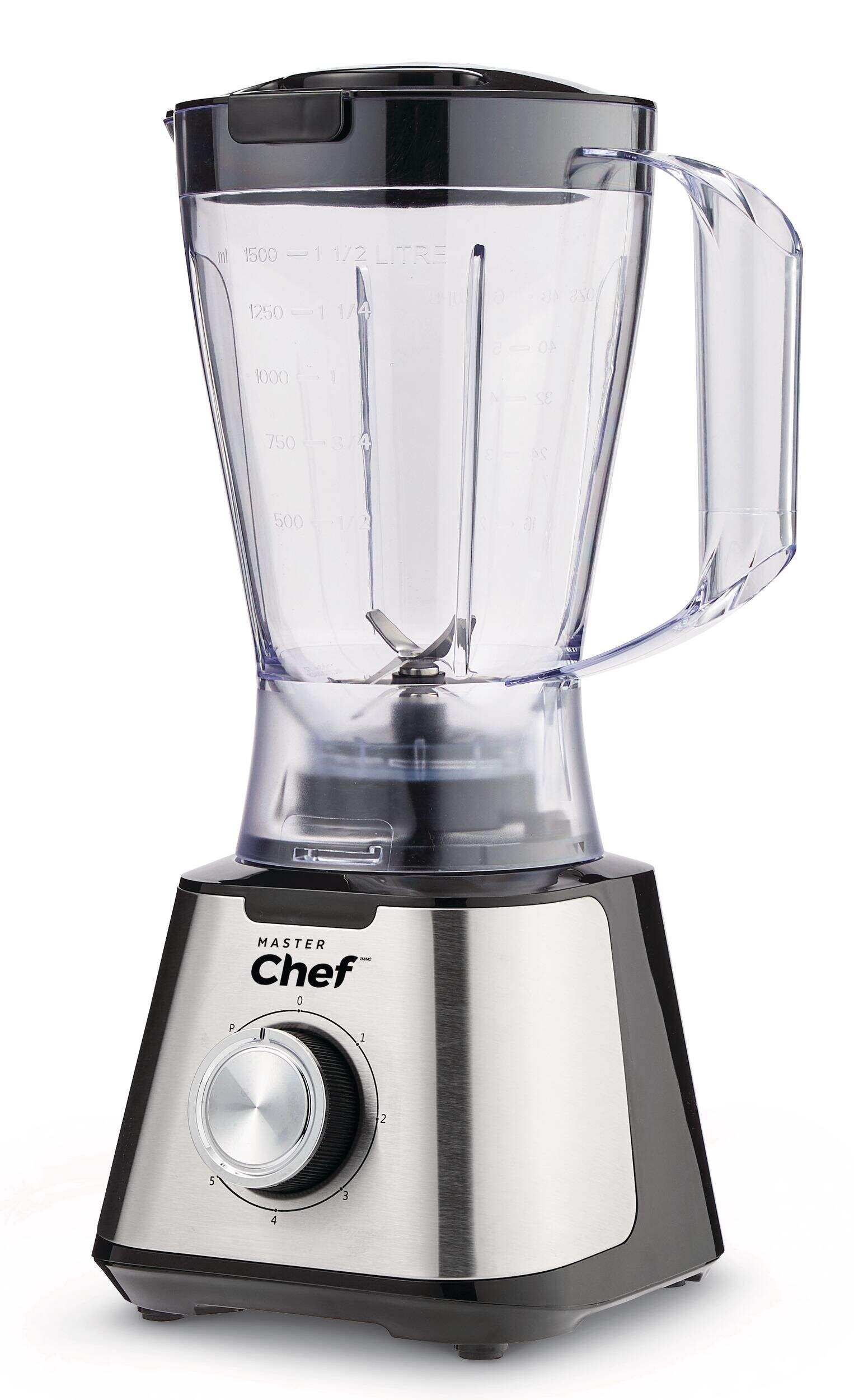 The MASTER Chef 5-Speed Blender makes quick work of blending and chopping tasks with 5 speeds and a Pulse button. The stainless steel blades and the powerful motor power through the ice, frozen fruits, and vegetables with ease, letting you make smoothies, shakes, and soups in no time.