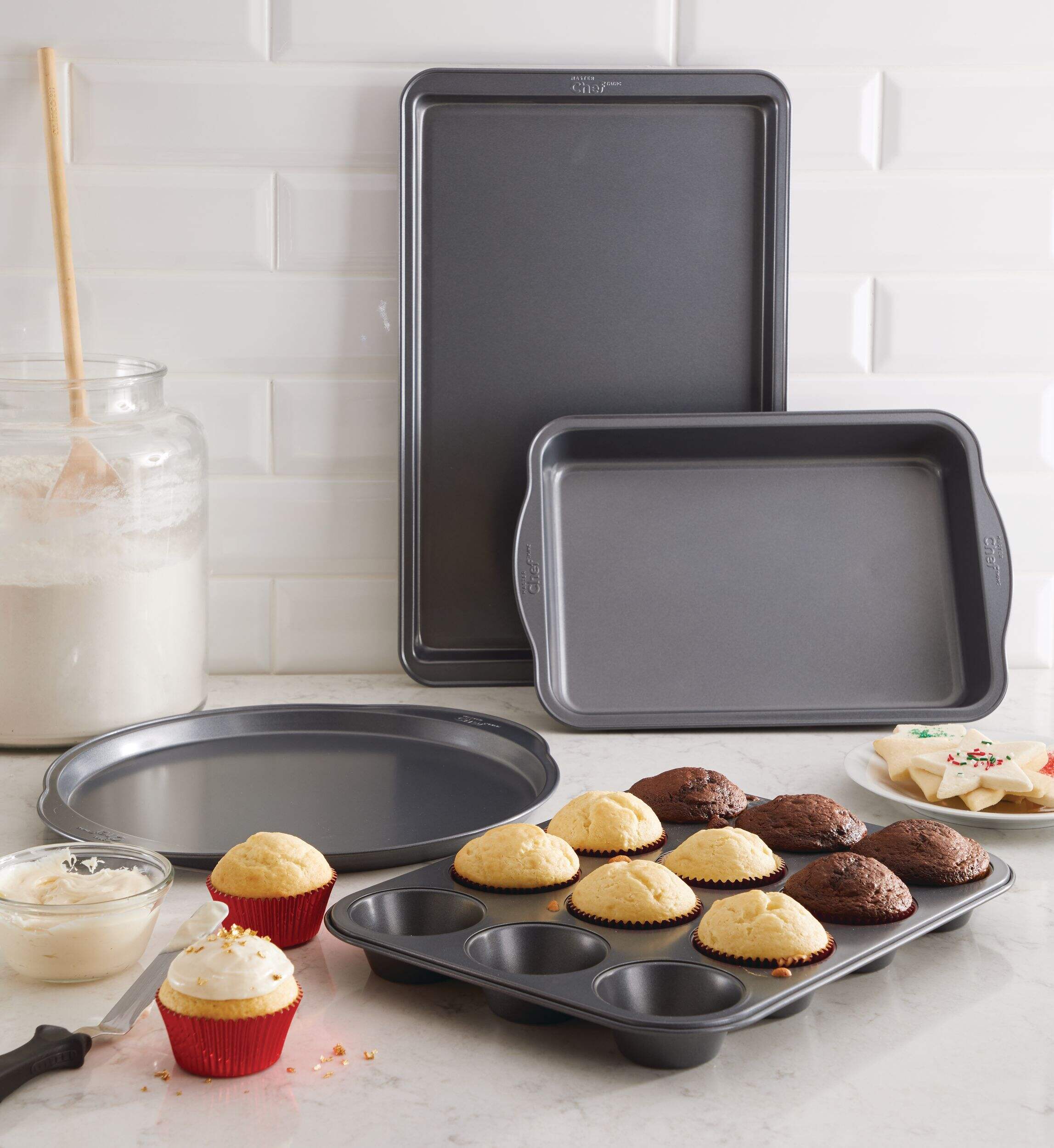 The MASTER Chef Cookie Sheet provides even heat distribution for an exceptional baking experience. With metal handles for easy transportation, this steel baking sheet has a non-stick coating for easy cleaning and perfect release – no stuck clumps, particles or cookie chunks. A kitchen essential exclusive to Canadian Tire.