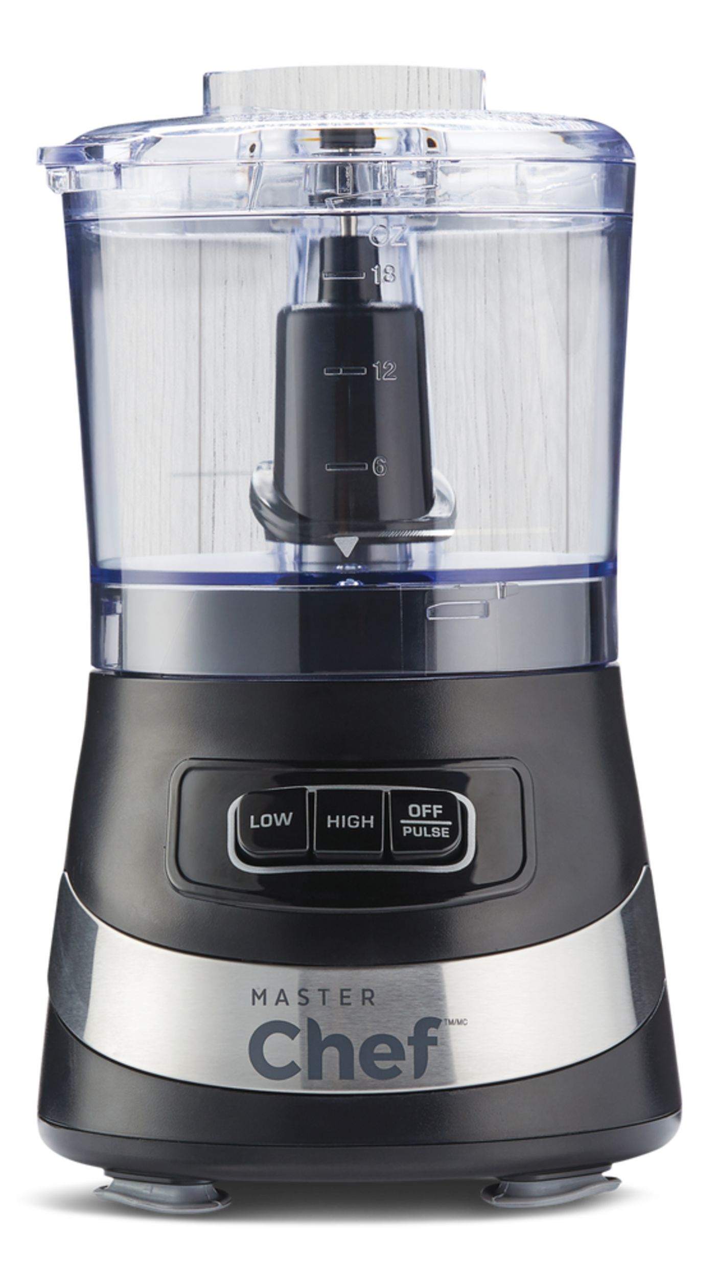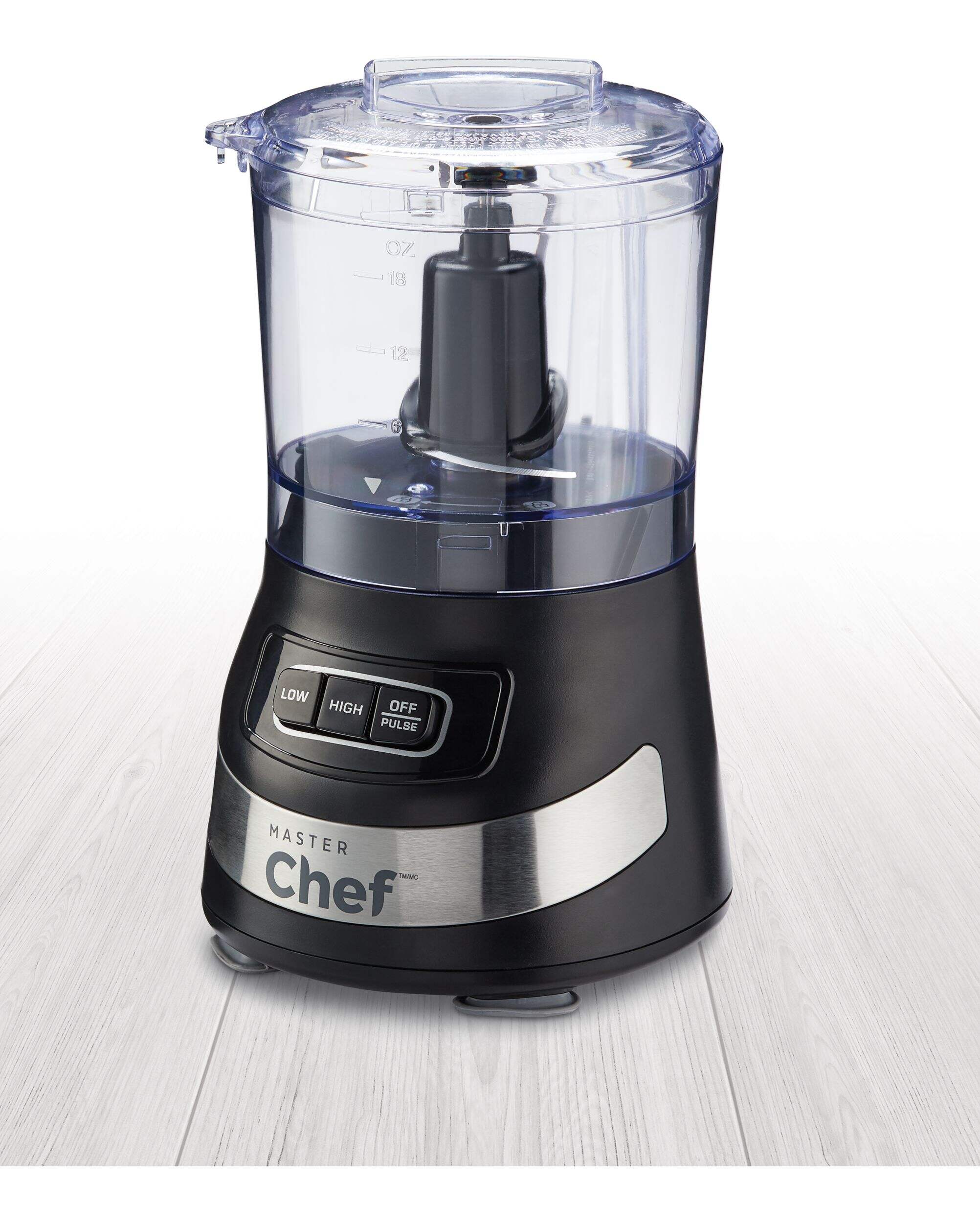 Make preparing your favourite recipes quicker and easier than ever with this food processor. The MASTER Chef Hand Chopper has a roomy 3-cup capacity where you can put onions, carrots, peppers, garlic, and other vegetables you want to dice and slice for your favourite dishes. Just cut them to fit your food chopper, and turn it on. The chopper has three settings – high, low, and off – so you can choose whichever speed you need to achieve the texture you're going for. This mini food processor is the perfect size for smaller tasks, and it's compact enough to fit in any kitchen. It's ideally suited for small apartments, dorms, and even campers or RVs. The plastic bowl can be easily washed after use, while the lid's safety lock keeps your fingers out of harm's way during use. You'll also enjoy that this electric food chopper has a black finish that will easily coordinate with your other kitchen appliances and gadgets thanks to a sleek appearance. It's the best food chopper for anyone who wants power without the big and bulky size or high price tag of other options.