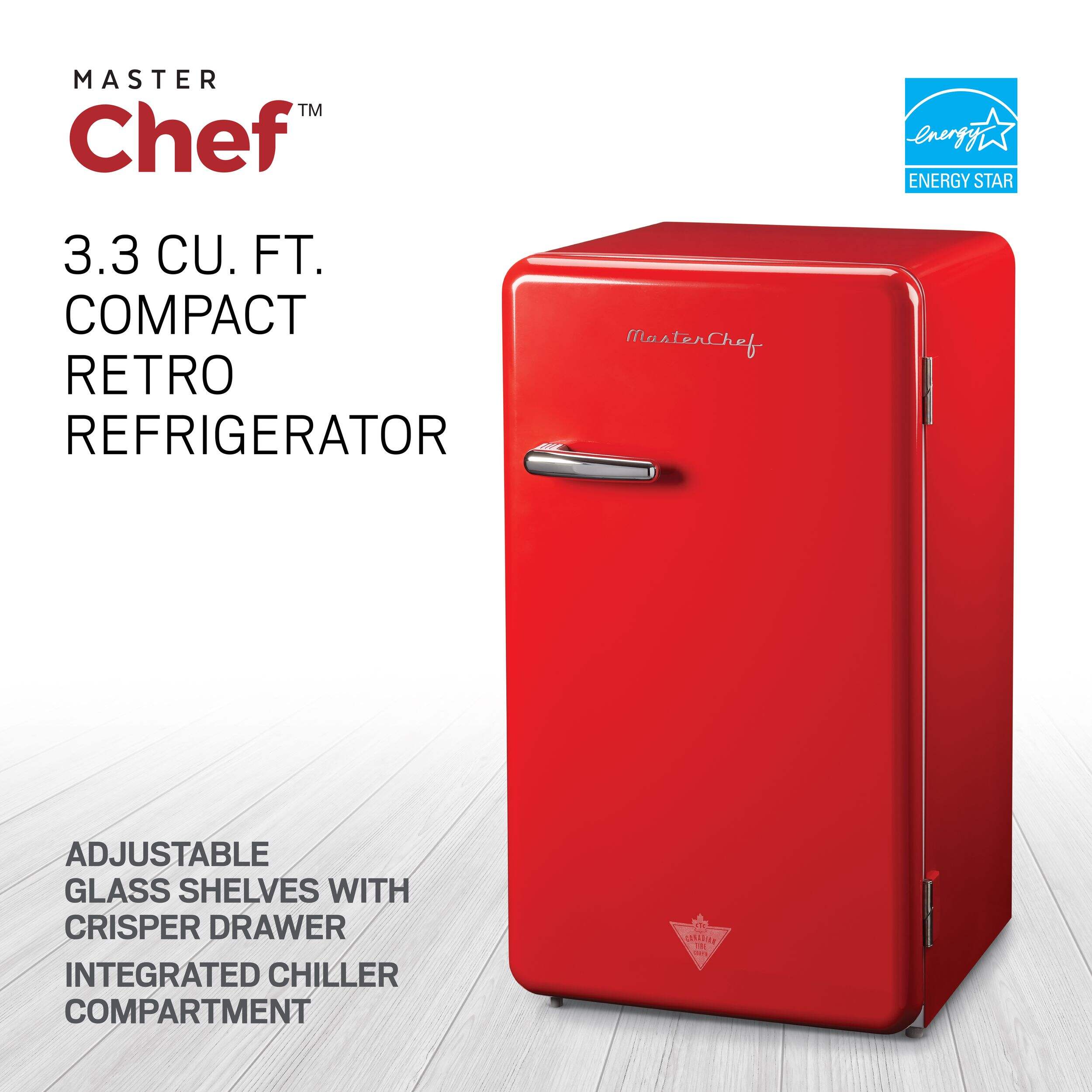 MASTER Chef Compact Retro Refrigerator, Red, 3.3 Cu-Ft