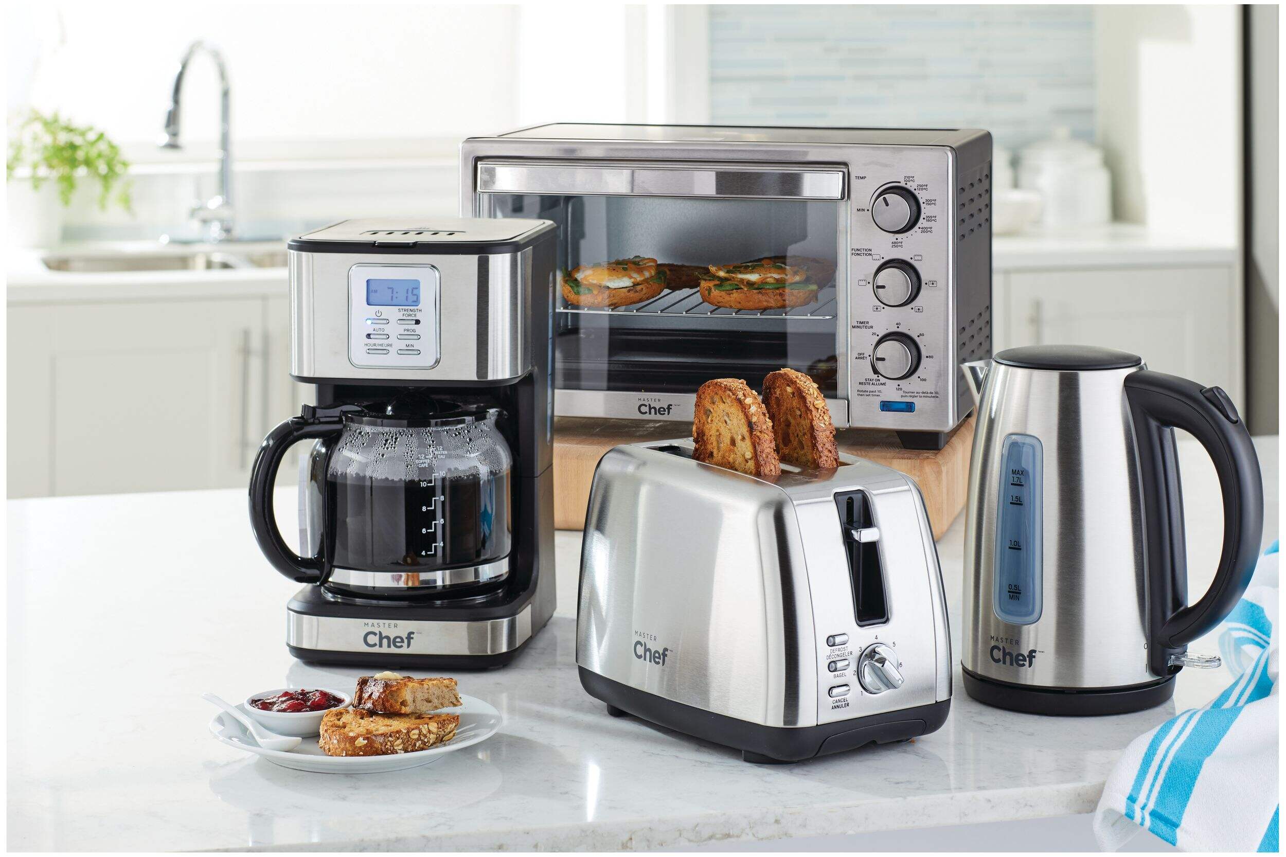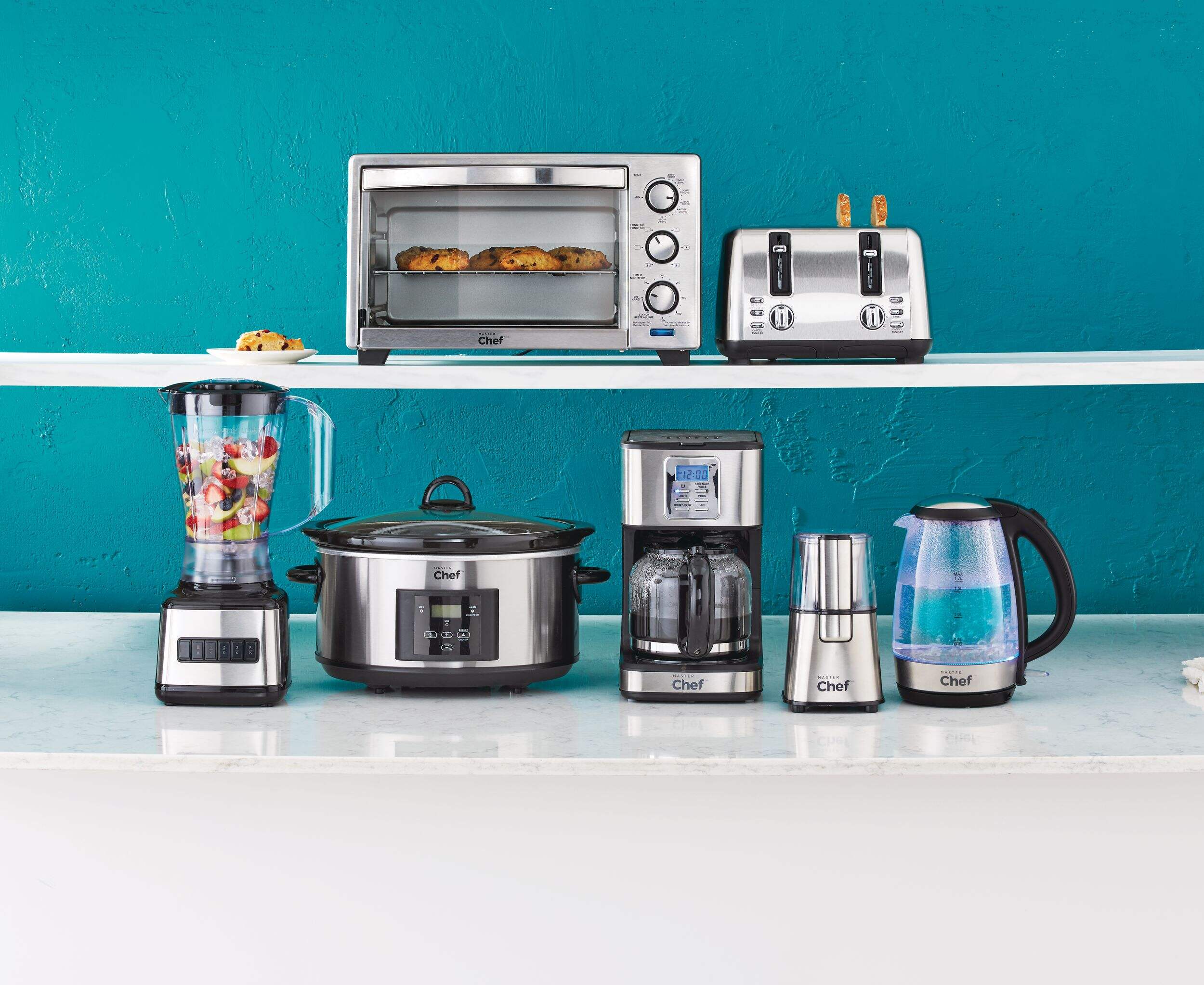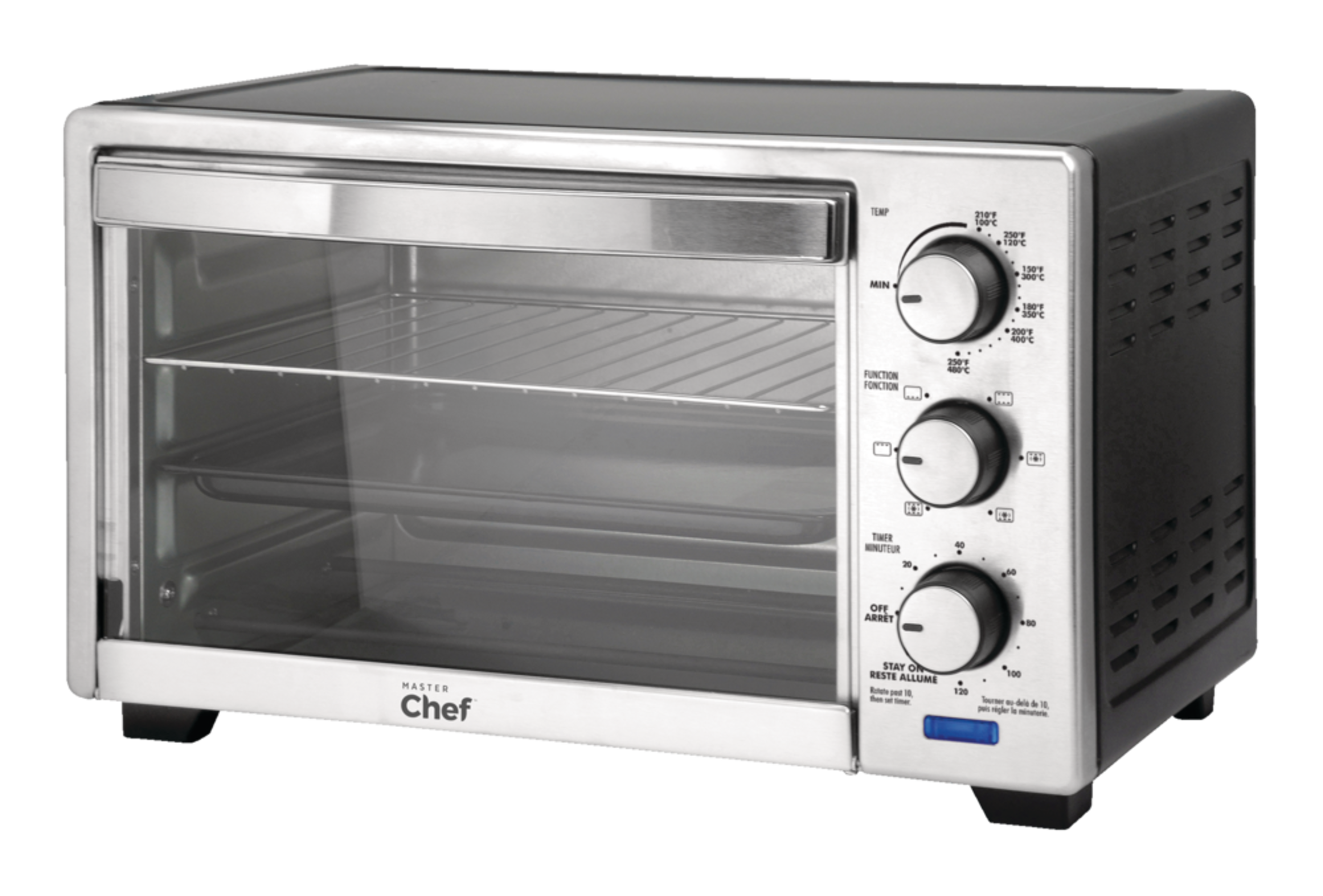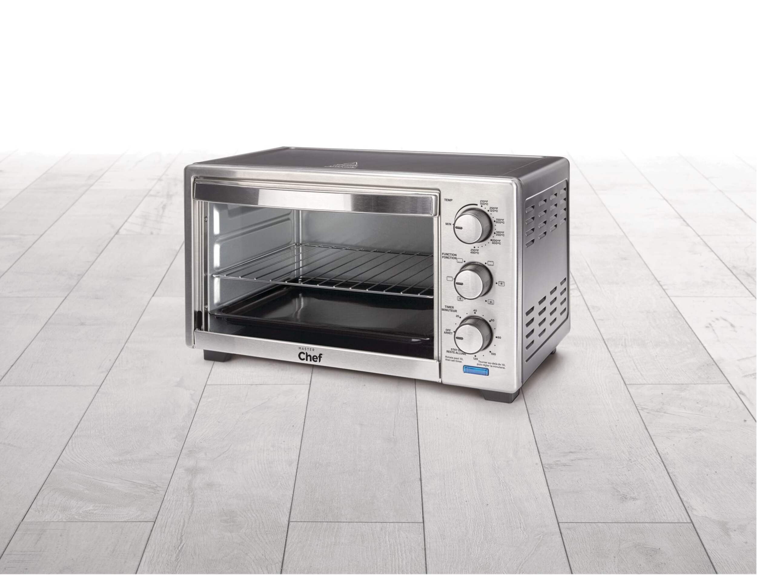 The versatile MASTER Chef 6-Slice Convection Toaster Oven can effortlessly handle all your cooking needs. This large toaster oven can accommodate six slices of bread or a four-pound chicken, ensuring you can cook for multiple people. The removable baking sheet and crumb tray make clean-up simple, while three adjustable rack positions provide flexibility
