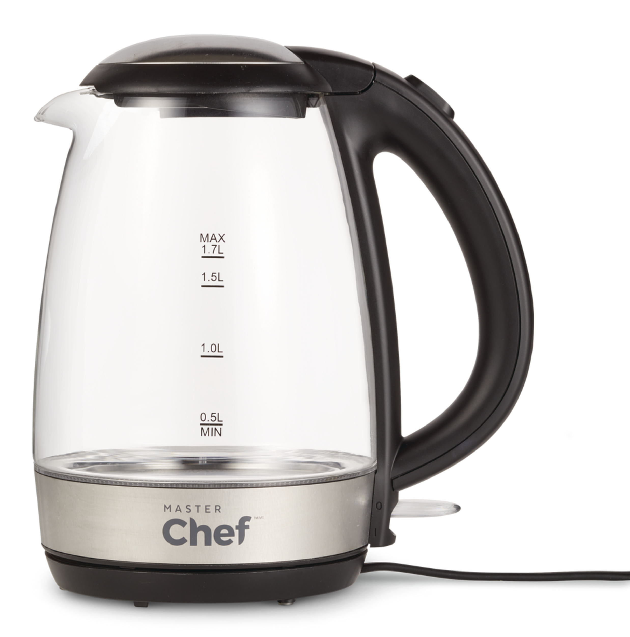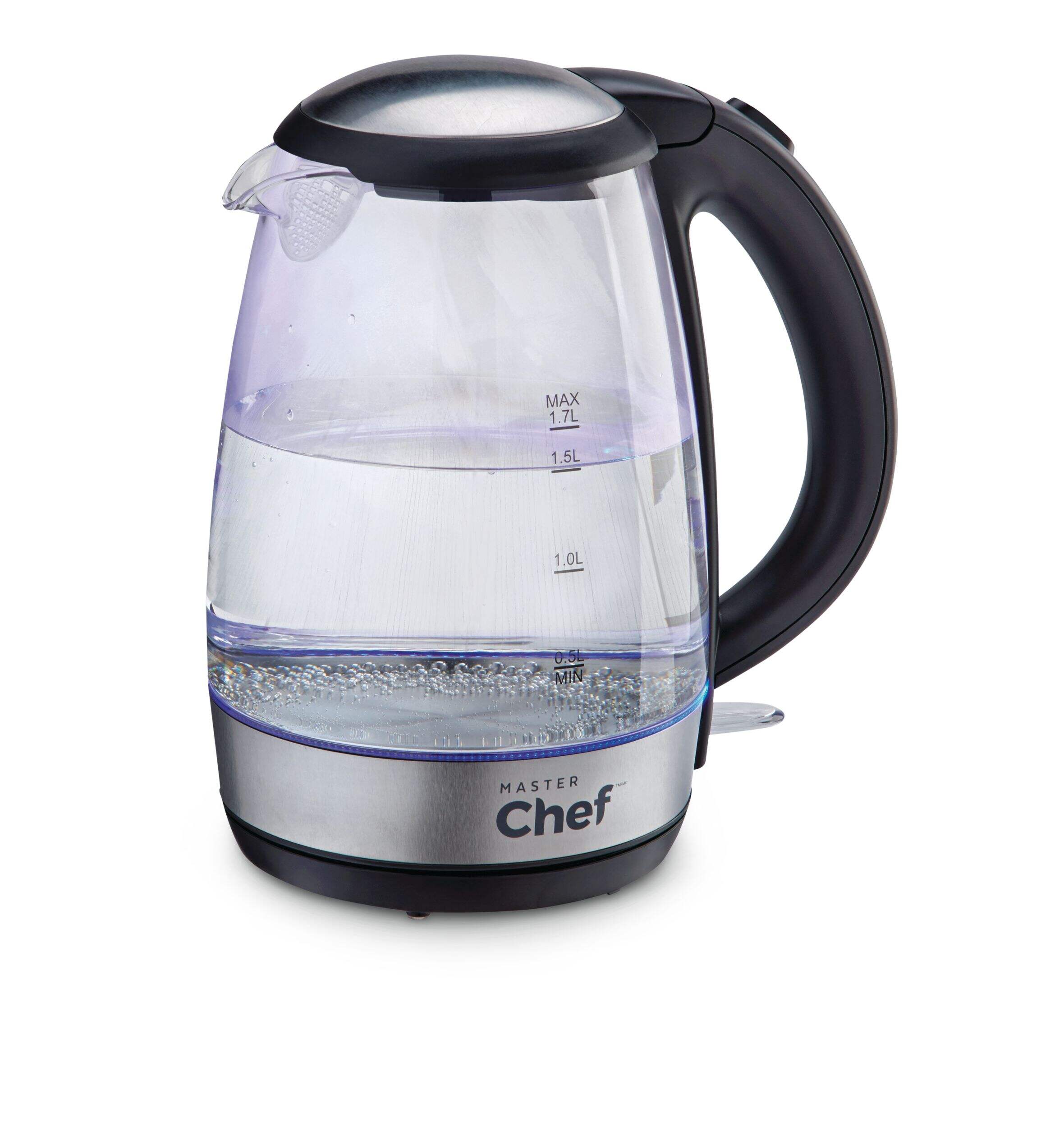 The MASTER Chef Electric Glass Kettle provides hot water for your favourite tea, oatmeal, or instant noodles. Take advantage of its cordless design and power base that offer mobility and easy storage. With seamless docking, make boiling water a hassle-free and versatile experience. This electric kettle uses a heating element to quickly boil water, with safety features like automatic shut-off and boil-dry protection for convenience and peace of mind.