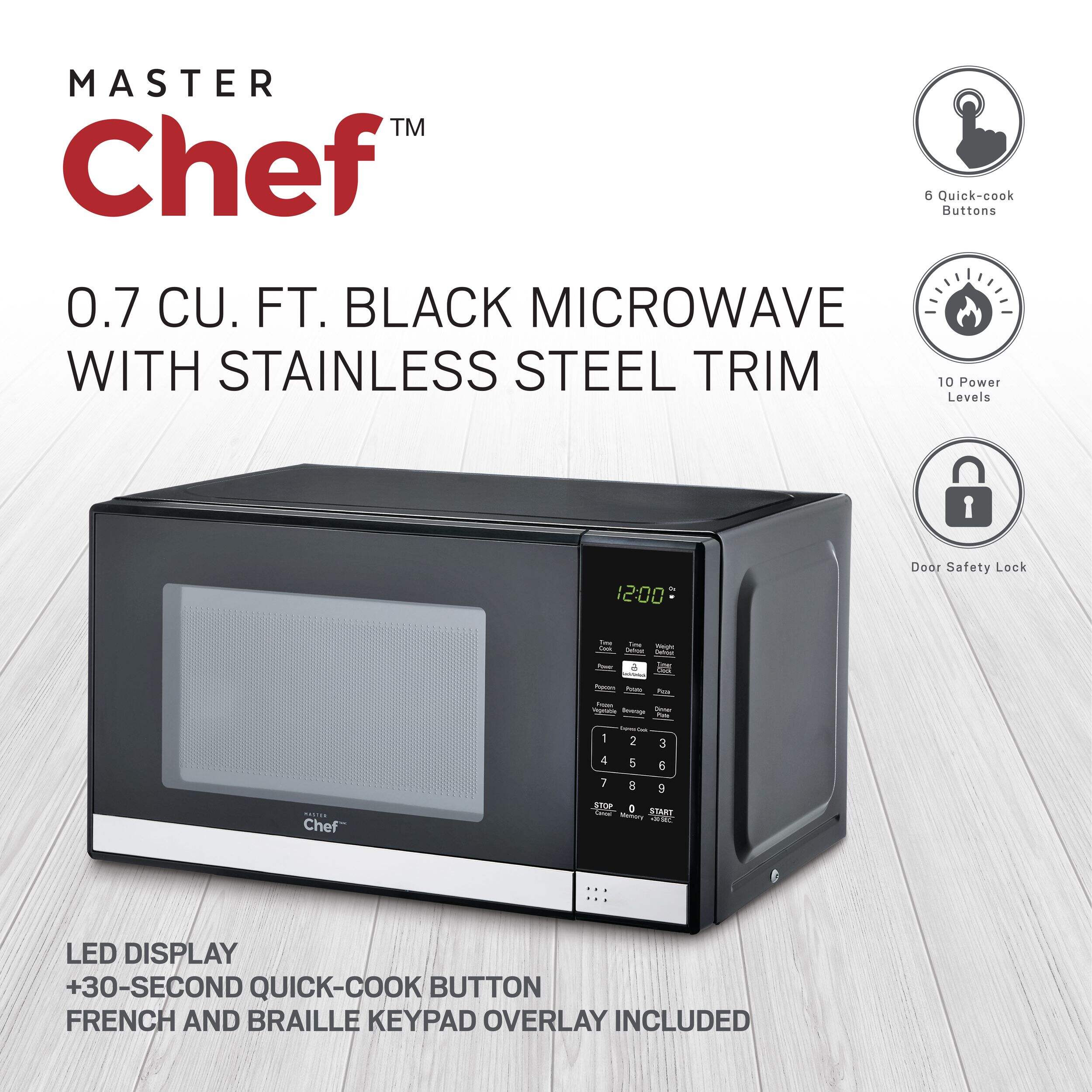 The MASTER Chef Countertop Microwave streamlines meal prep with a number of cooking settings and an intuitive control panel. It ensures hassle-free operation with features like auto defrost and a removable turntable for straightforward cleaning, and its compact size is ideal for any kitchen.