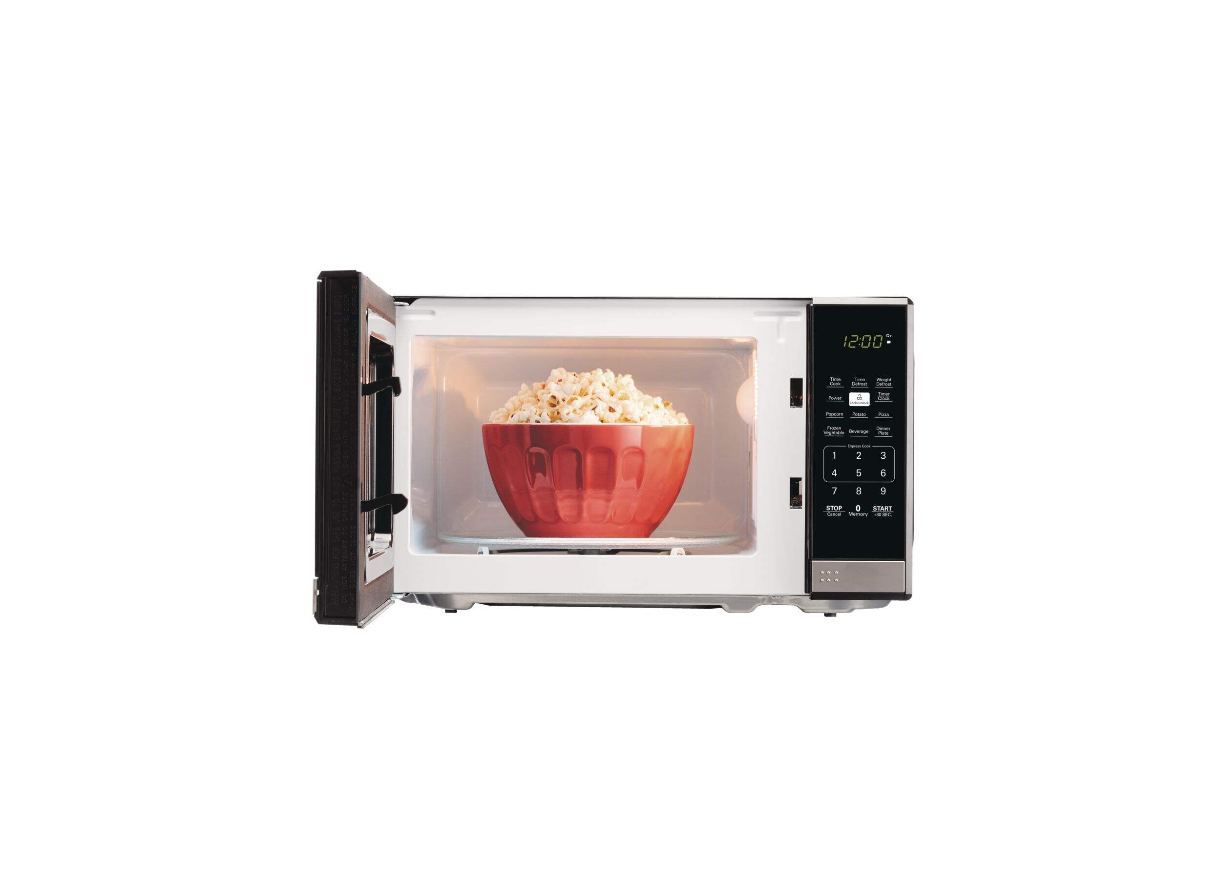 Features 10 power levels and 6 pre-programmed one-touch cooking options for popcorn, pizza, baked potato, and more