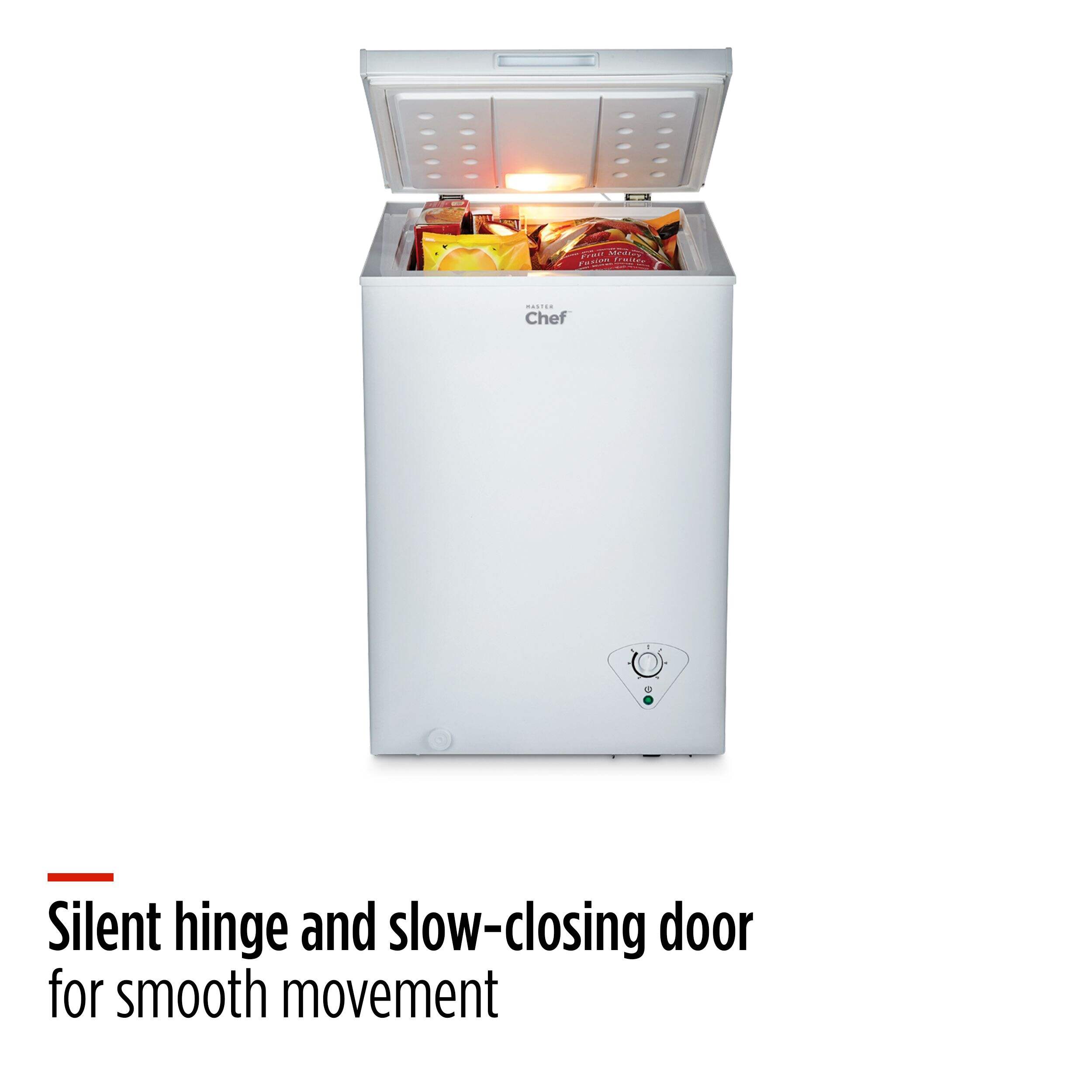 The MASTER Chef E-Star Chest Freezer is ideal for small, tight spaces like condos, dorm rooms, cottages, and offices. Included with this energy-efficient freezer is a removable wire basket for organization and easy access. An embossed aluminum inner cabinet provides a durable finish, while the mechanical temperature controls make this stand-alone freezer easy to use. This energy-efficient chest freezer comes in white for a clean look that can blend in with your existing décor for a seamless finish.