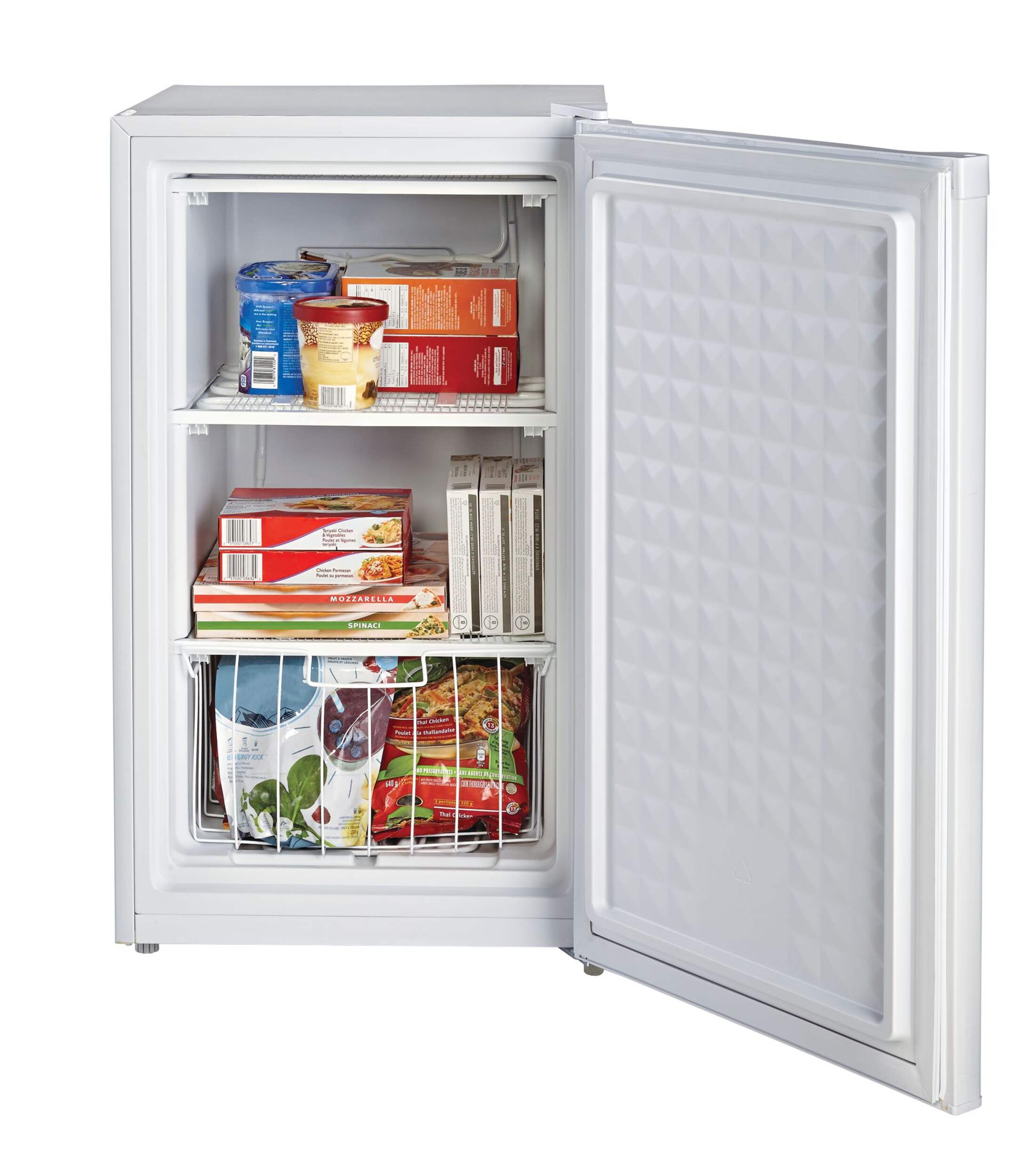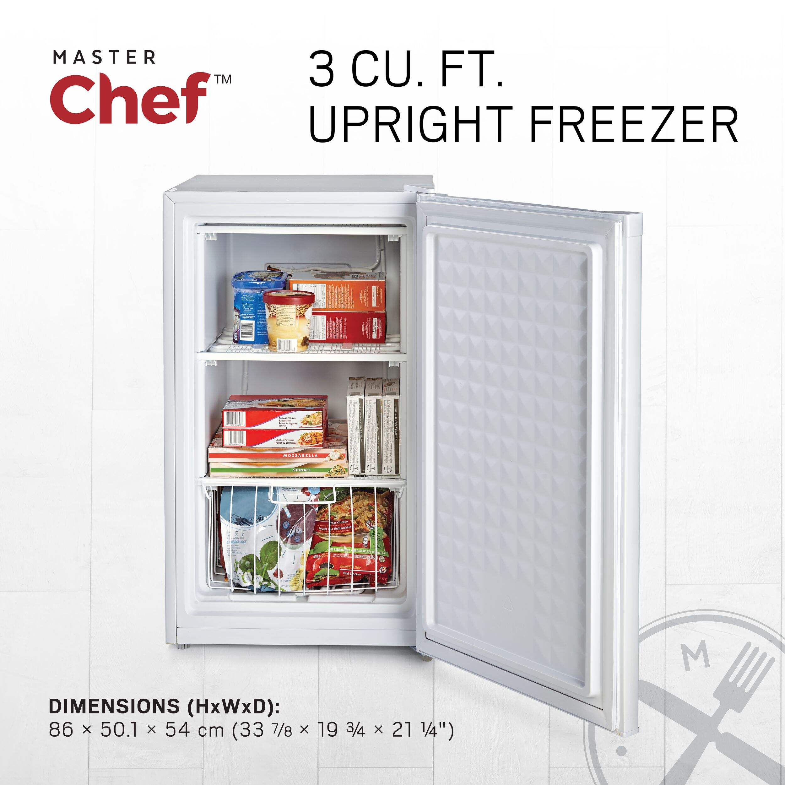 Versatile and compact, the MASTER Chef Upright E-Star Freezer is the ideal choice for small, tight spaces. Featuring a reversible door design, this mini stand alone freezer is a great option for apartments, offices, cottages, dorm rooms and more. Wire shelves and a removable basket are included to ensure everything stored in this mini upright freezer stays organized, visible and reachable. Easy to use and operate, this small stand up freezer has adjustable manual temperature controls to suit your needs.