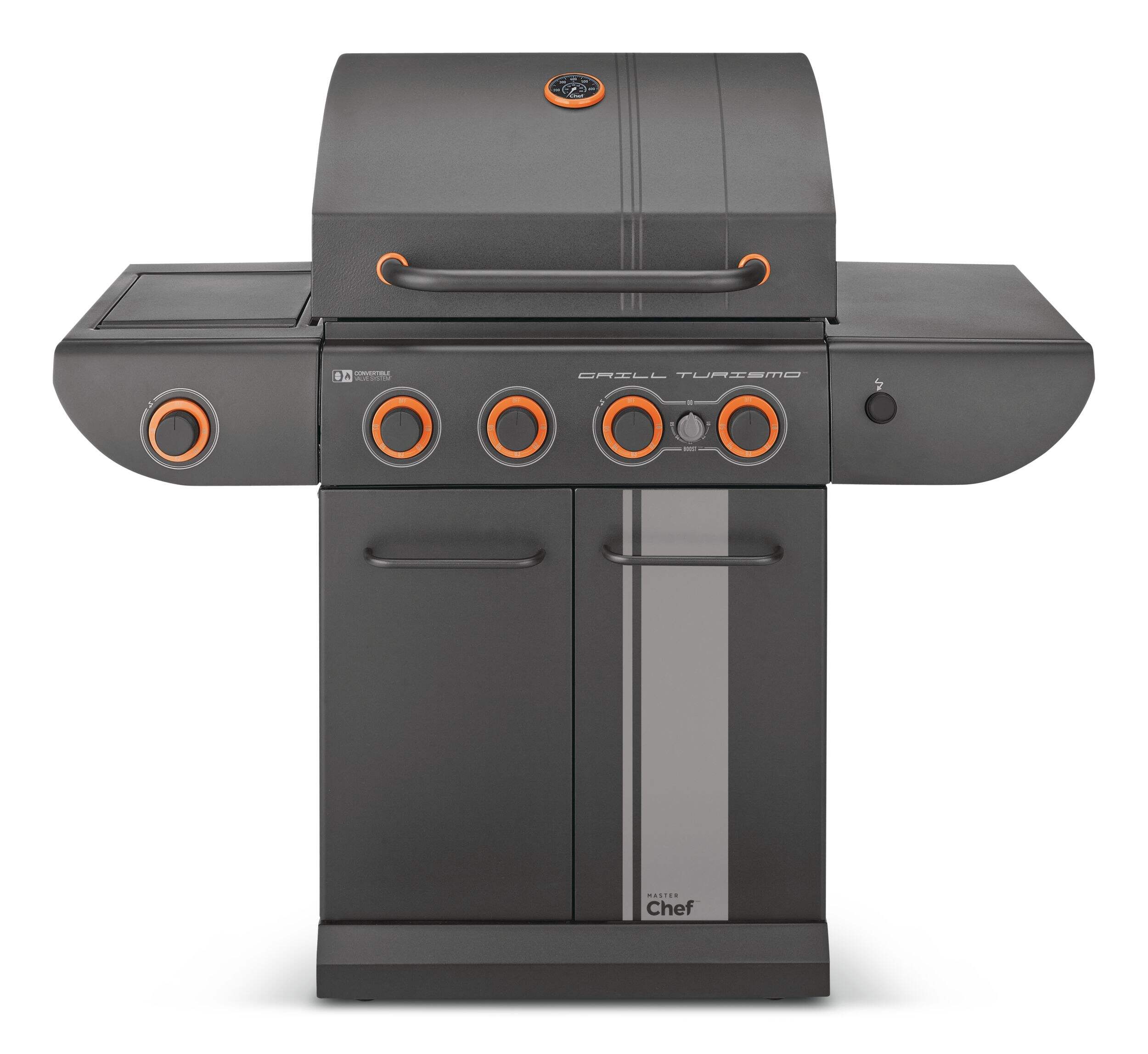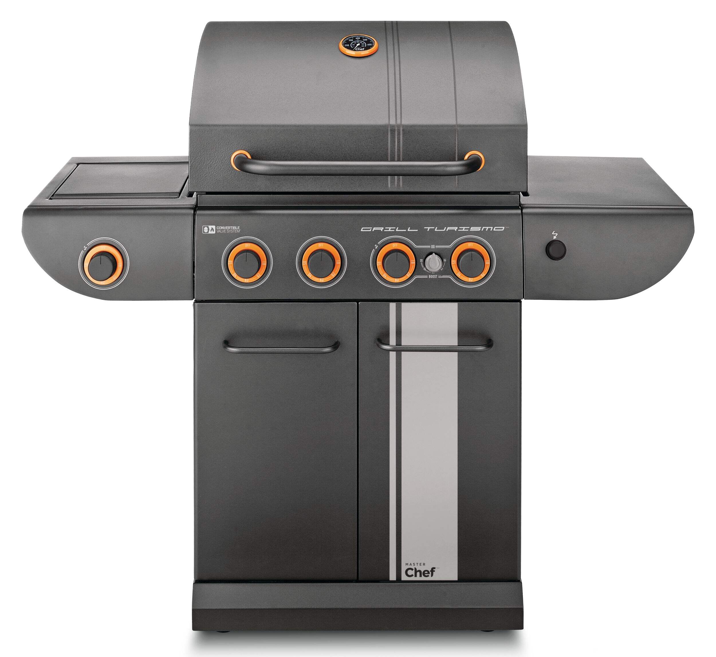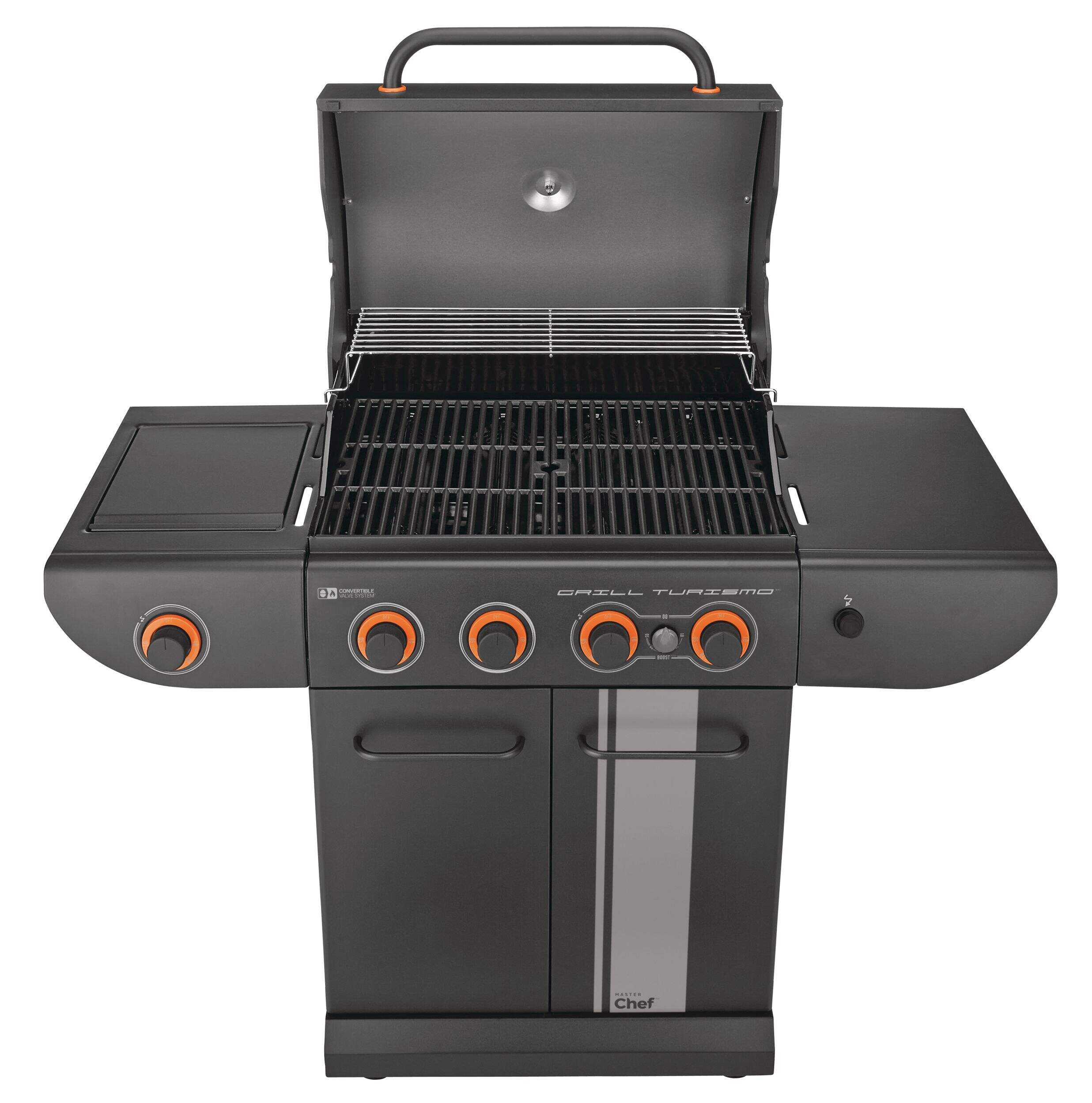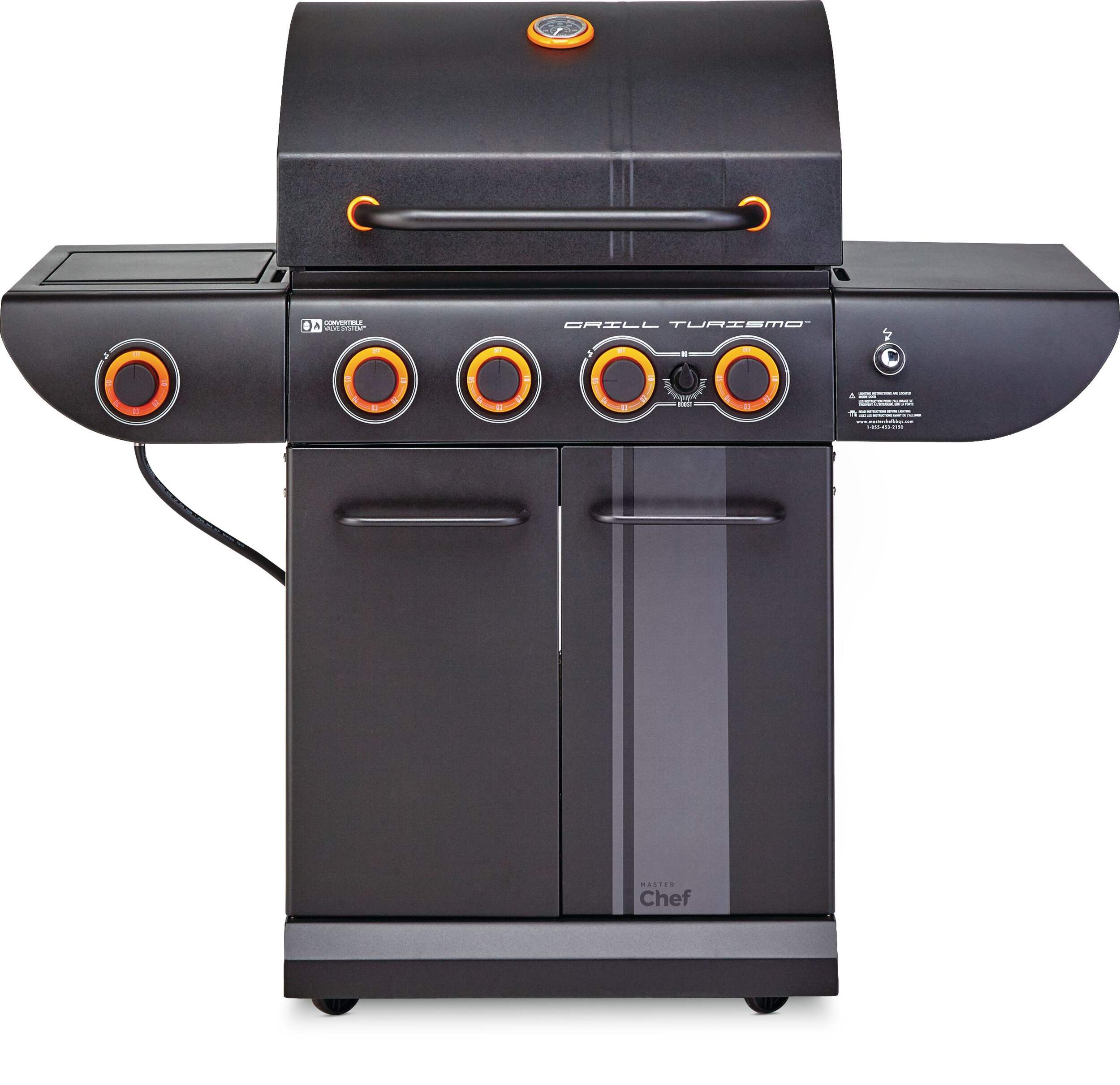 The MASTER Chef Grill Turismo™ 5-Burner Convertible BBQ with Side Burner delivers power, precision, and versatility for serious outdoor cooking. It features four main burners plus a high-intensity Boost Burner—giving you 5 burners in total—for fast searing and maximum heat when you need it. A dedicated side burner adds even more cooking flexibility. Built with durable, high-quality materials and generous grilling space, it’s designed for everyday meals and weekend gatherings alike. Enjoy consistent heat, effortless control, and flavour-packed results.