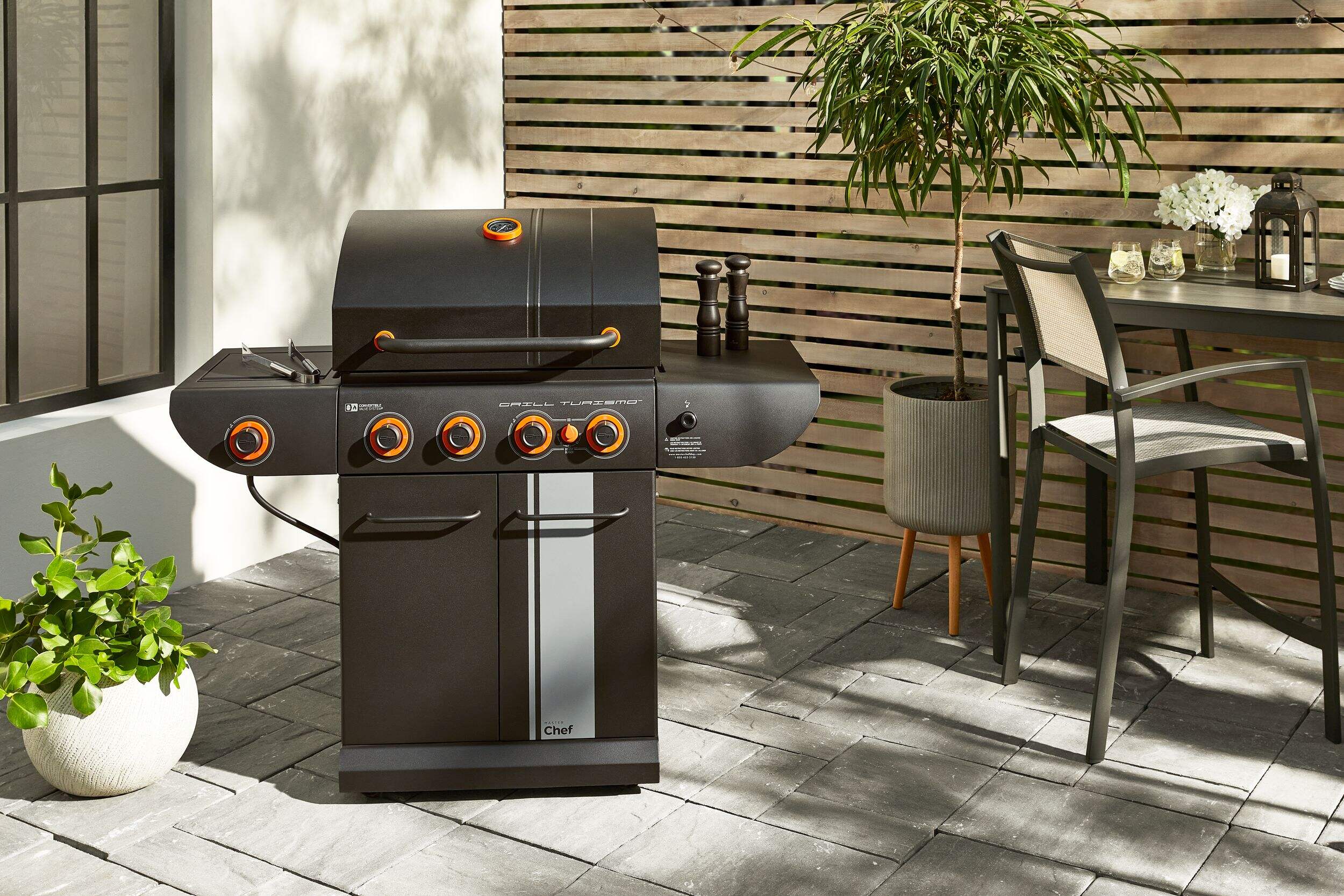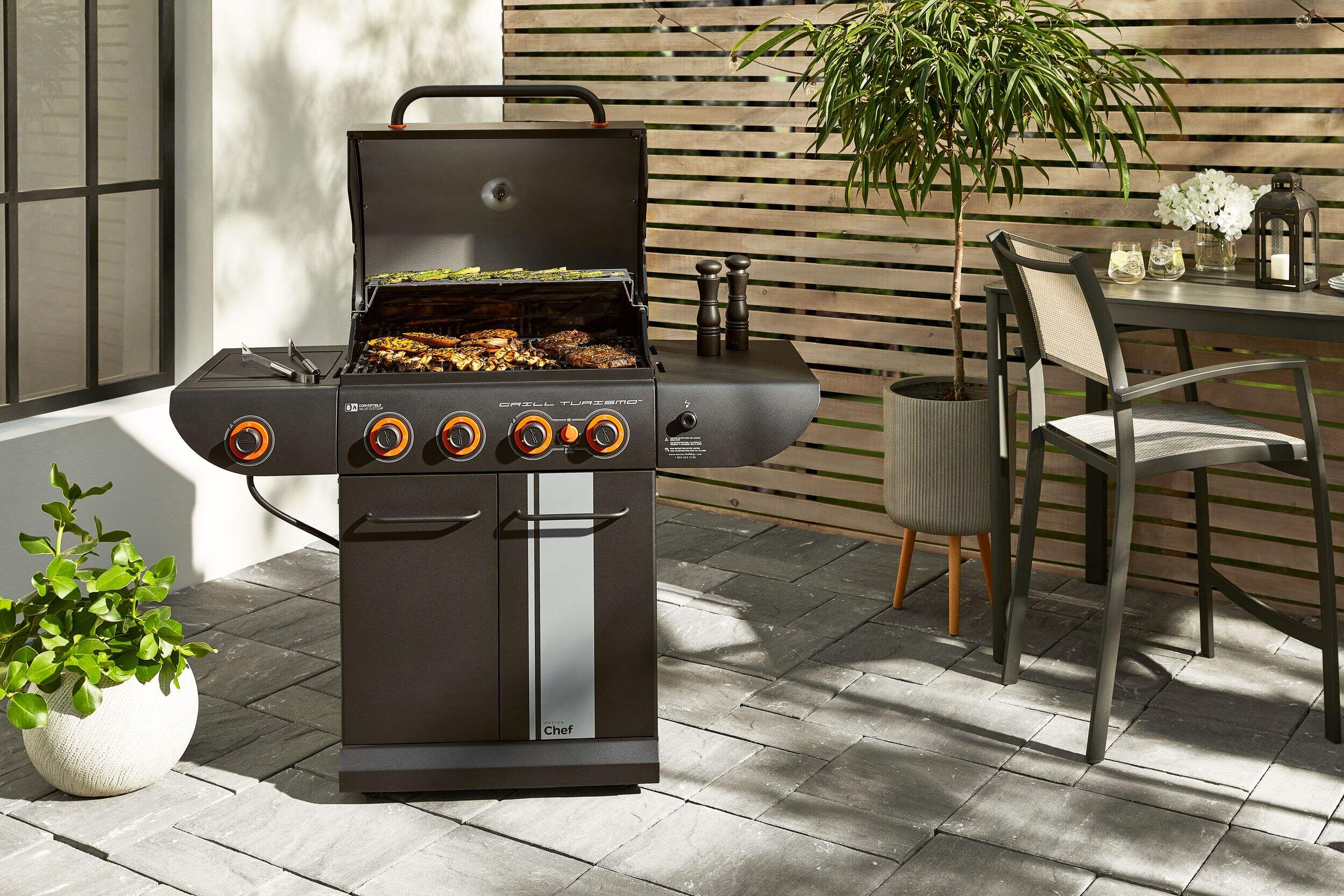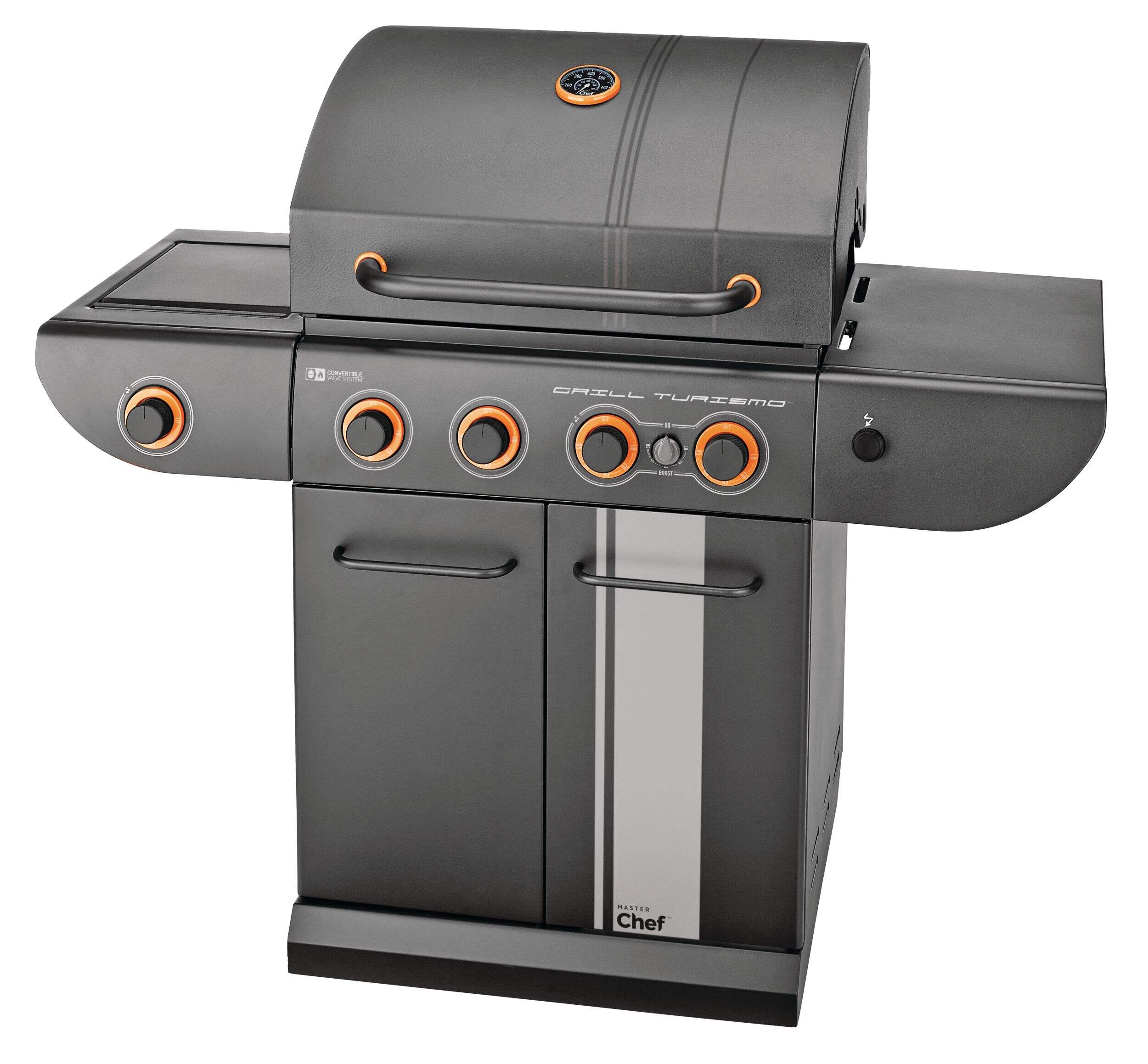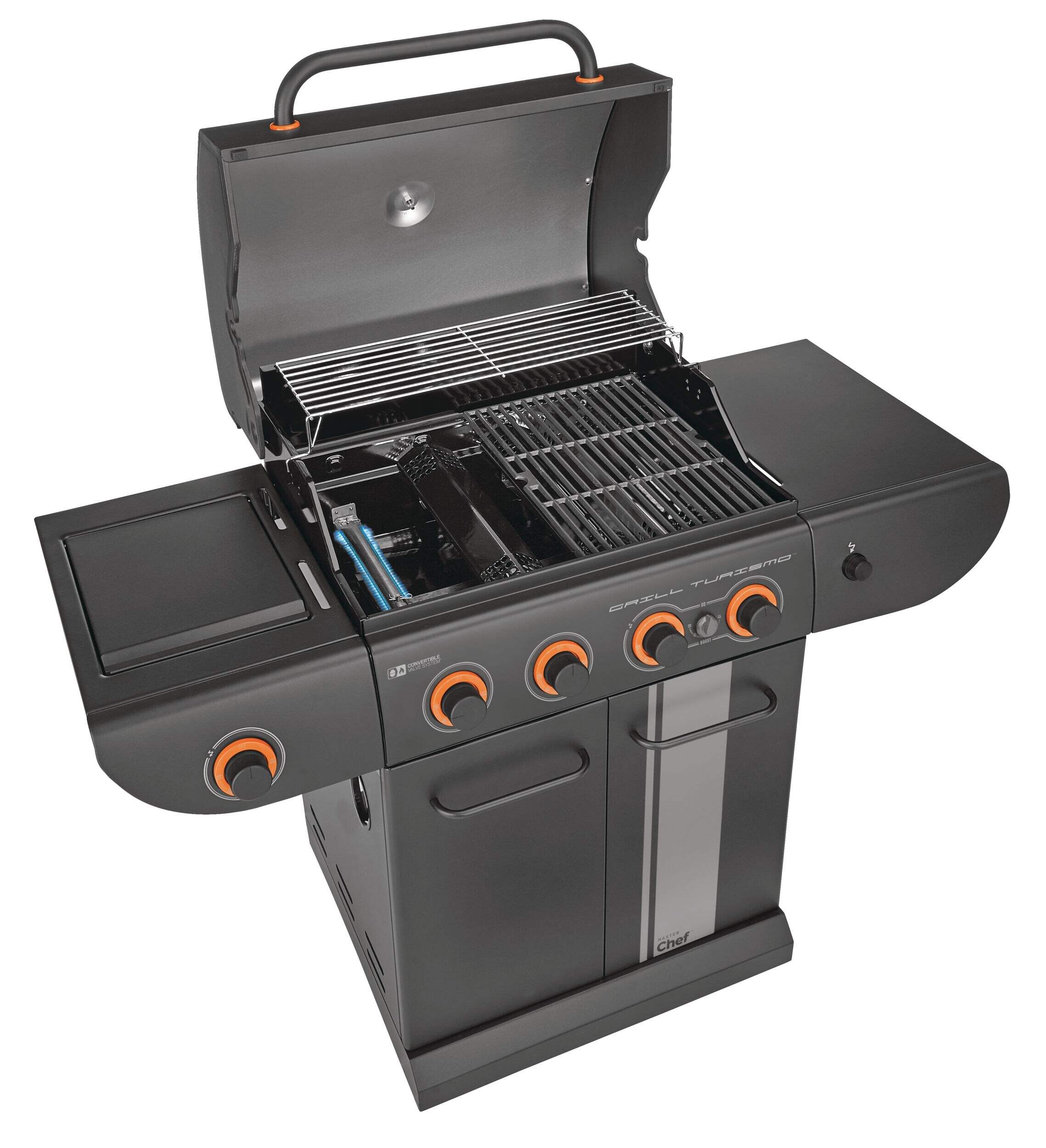 The MASTER Chef Grill Turismo™ 5-Burner Convertible BBQ with Side Burner delivers power, precision, and versatility for serious outdoor cooking. It features four main burners plus a high-intensity Boost Burner—giving you 5 burners in total—for fast searing and maximum heat when you need it. A dedicated side burner adds even more cooking flexibility. Built with durable, high-quality materials and generous grilling space, it’s designed for everyday meals and weekend gatherings alike. Enjoy consistent heat, effortless control, and flavour-packed results.