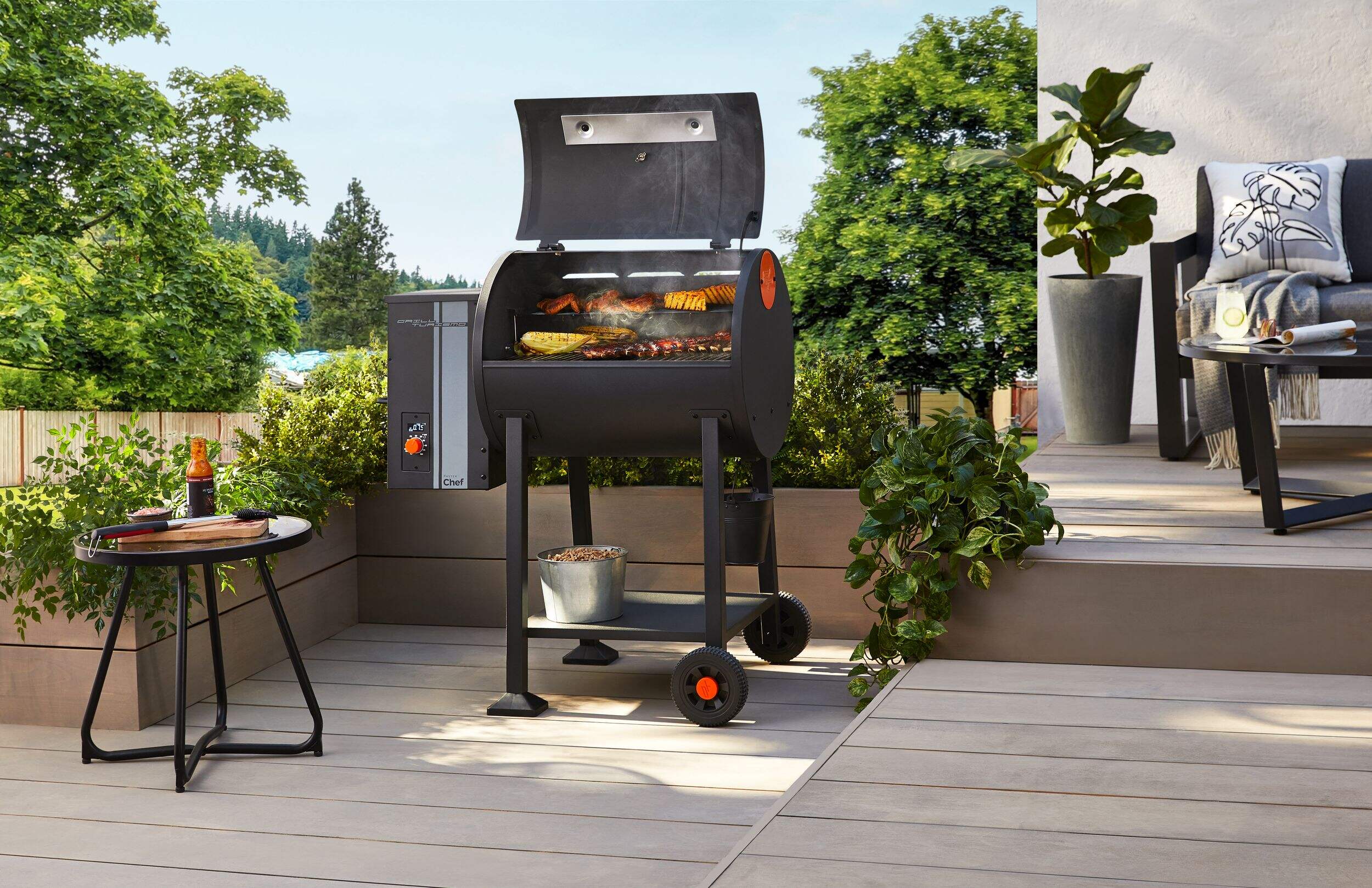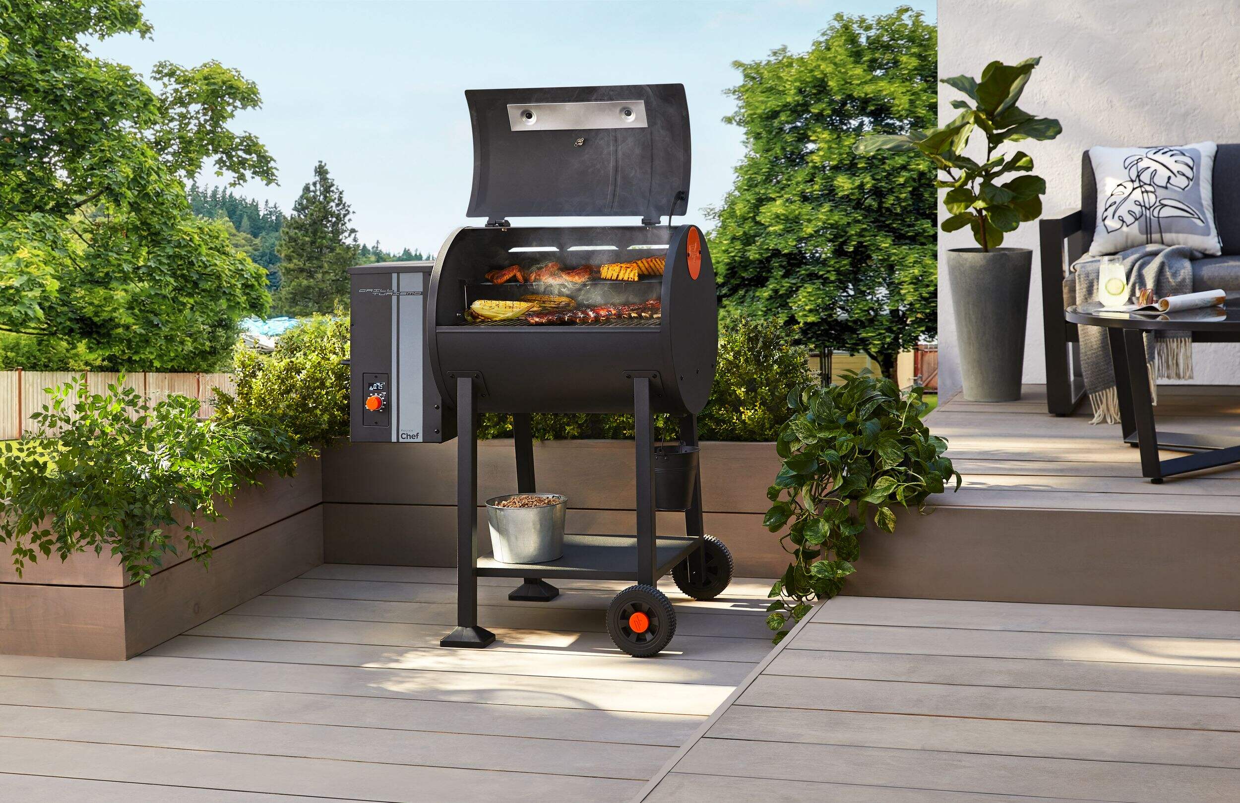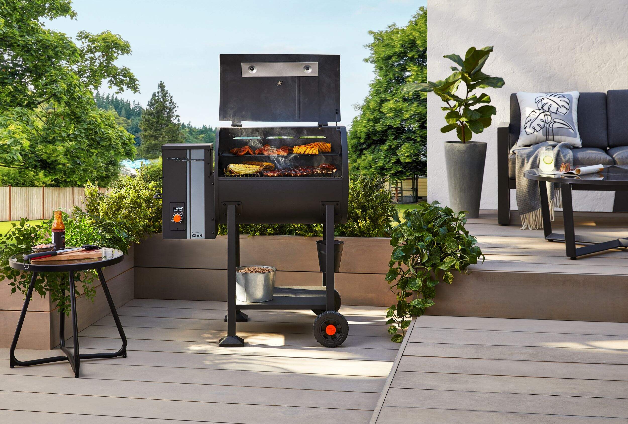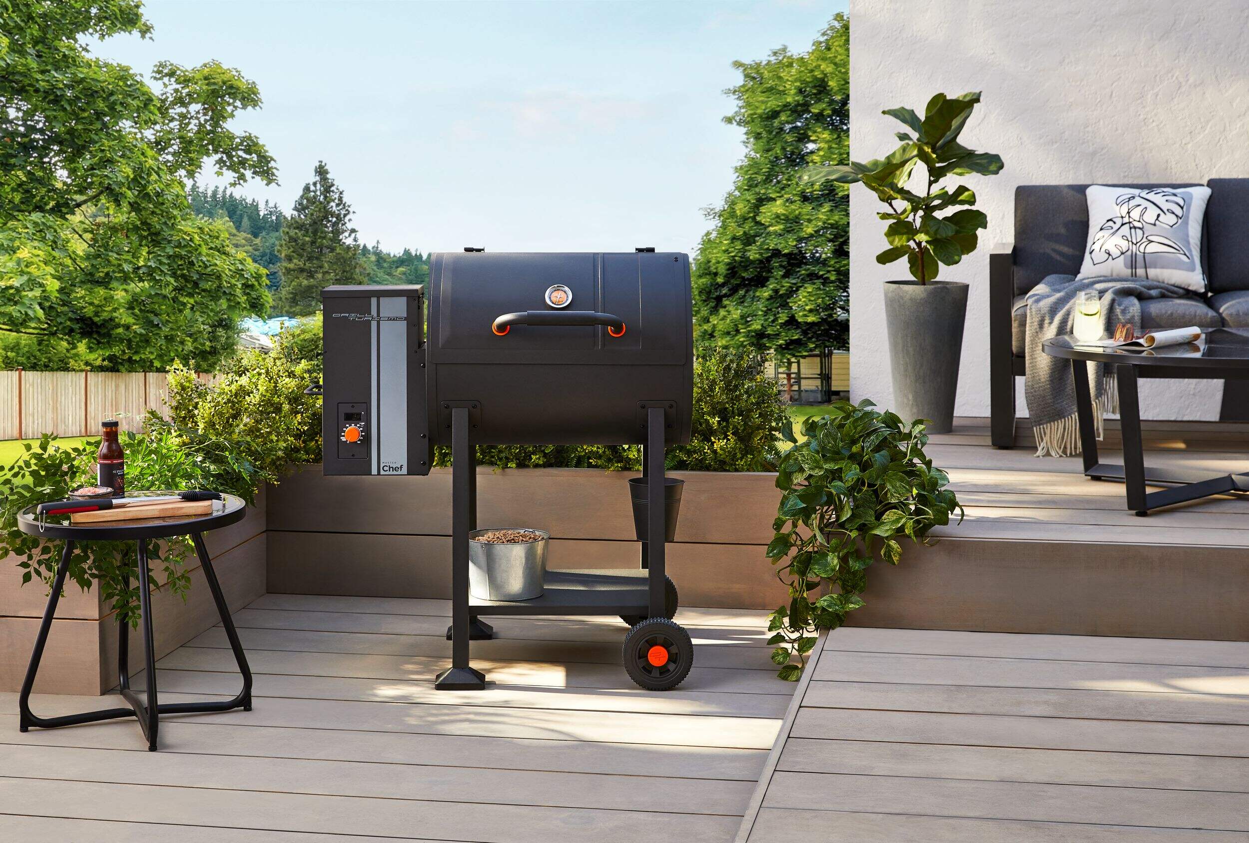 The MASTER Chef Grill Turismo Wood Pellet Grill & Smoker combines precision and versatility for outdoor cooking enthusiasts. With a digital controller, this grill offers auto ignition, automatic pellet feeding, and precise temperature control from 82.2°C to 260°C (180°F to 500°F). Perfect for grilling, smoking, roasting, searing, and baking, it delivers bold wood-fired flavour. The durable construction and user-friendly design make it an ideal choice for both beginners and seasoned grill masters.