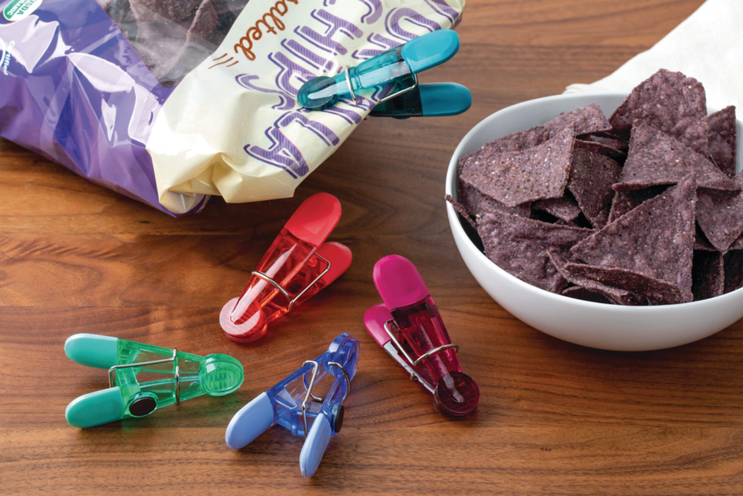 MASTER Chef Magnetic Bag Clips are for multi-purpose use; secure bags, papers, cookbooks and more