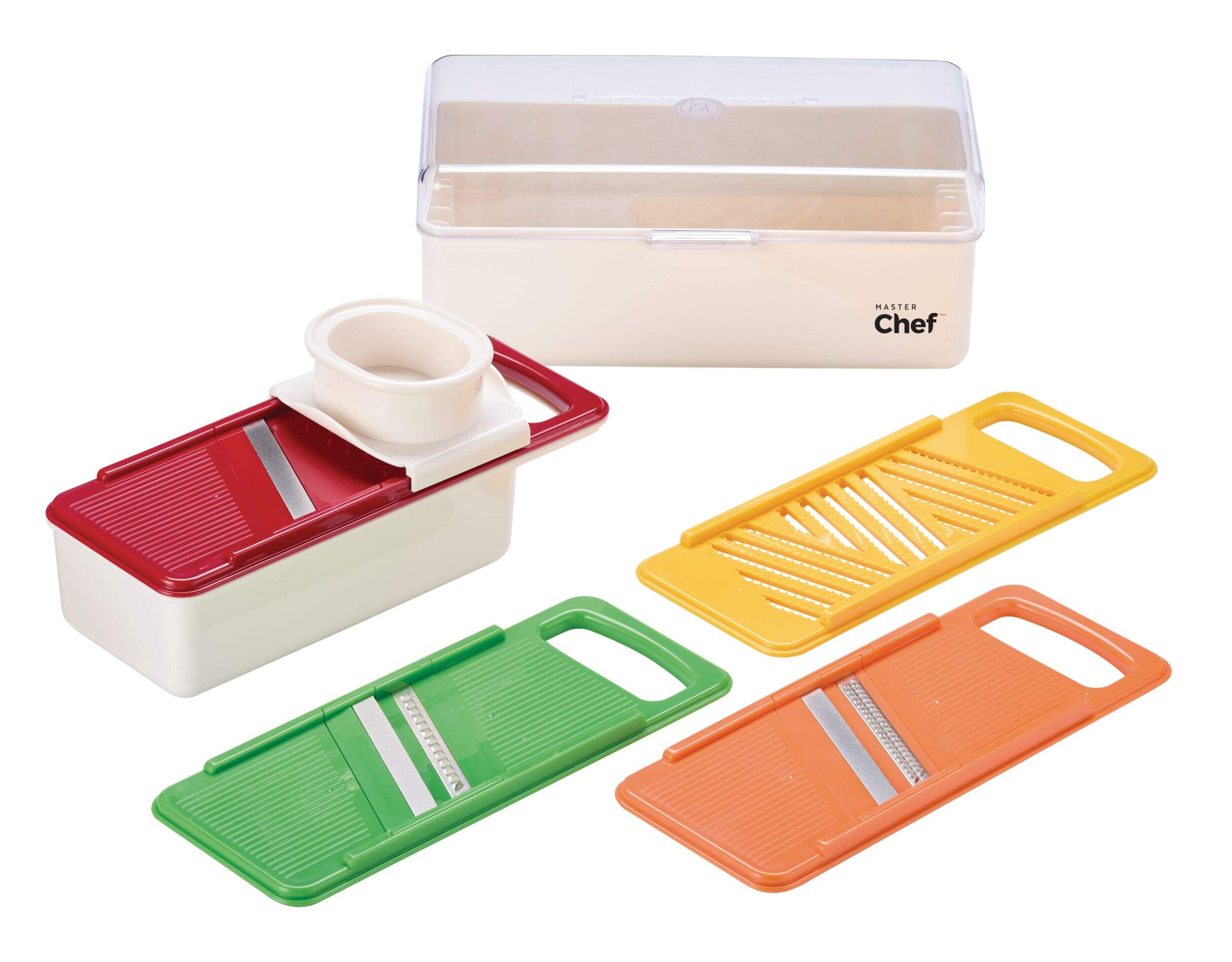 Effortlessly prepare your favourite meals with the Master Chef Mandoline Slicer. This versatile kitchen tool offers multiple slicing options, making it perfect for creating uniform slices, julienne cuts, and grating. The included storage case ensures your slicer and blades are neatly organized when not in use.
