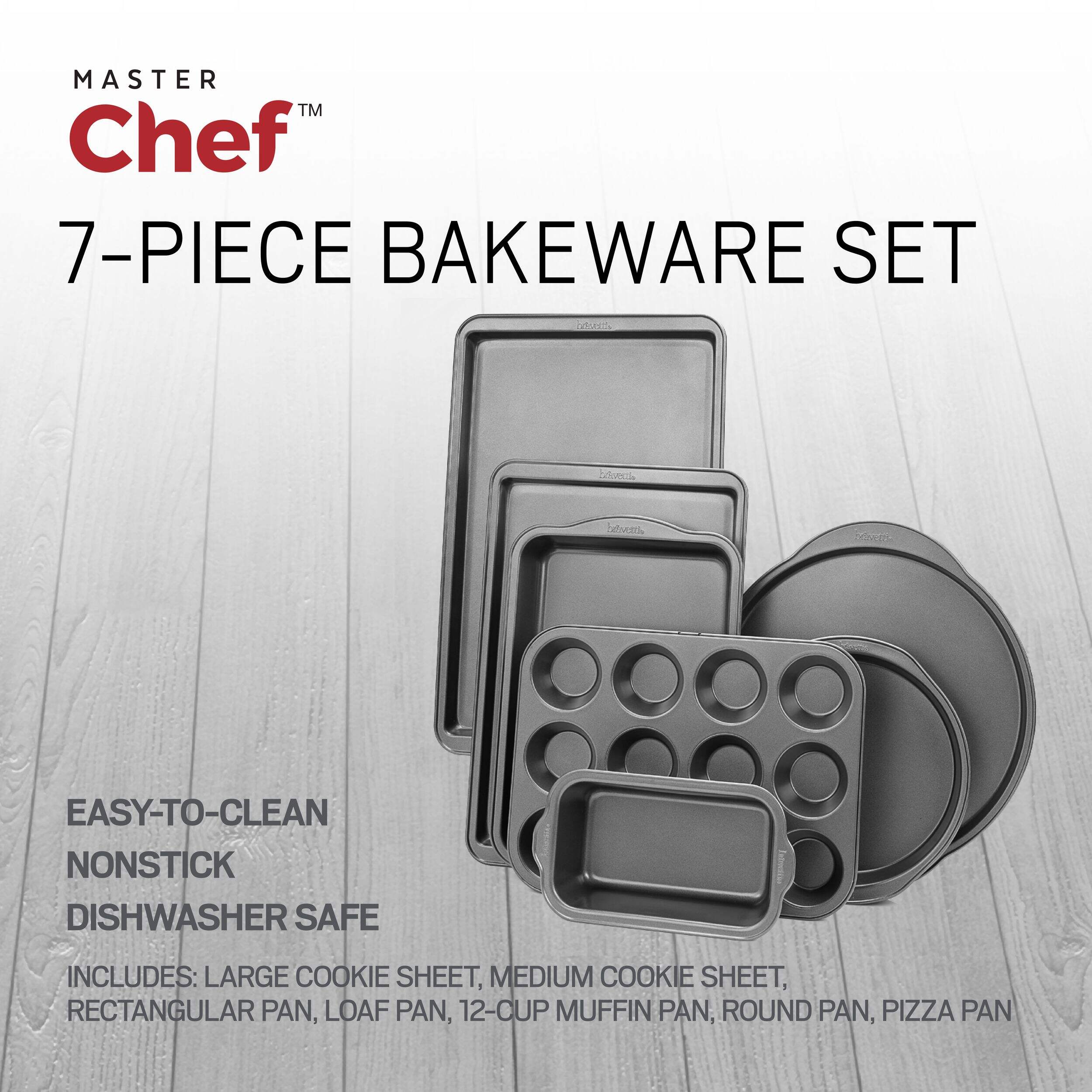 Take your baking game to the next level with the versatile MASTER Chef Non-Stick Bakeware Set. Ideal for both aspiring bakers and seasoned pros alike, this complete bakeware set comes with cookie sheets, cake pans, muffin pans and more. The smooth, BPA-free non-stick surfaces ensure your delicious baked treats come away clean. Convenient metal handles allow for easy access when moving these baking pans in and out of the oven.