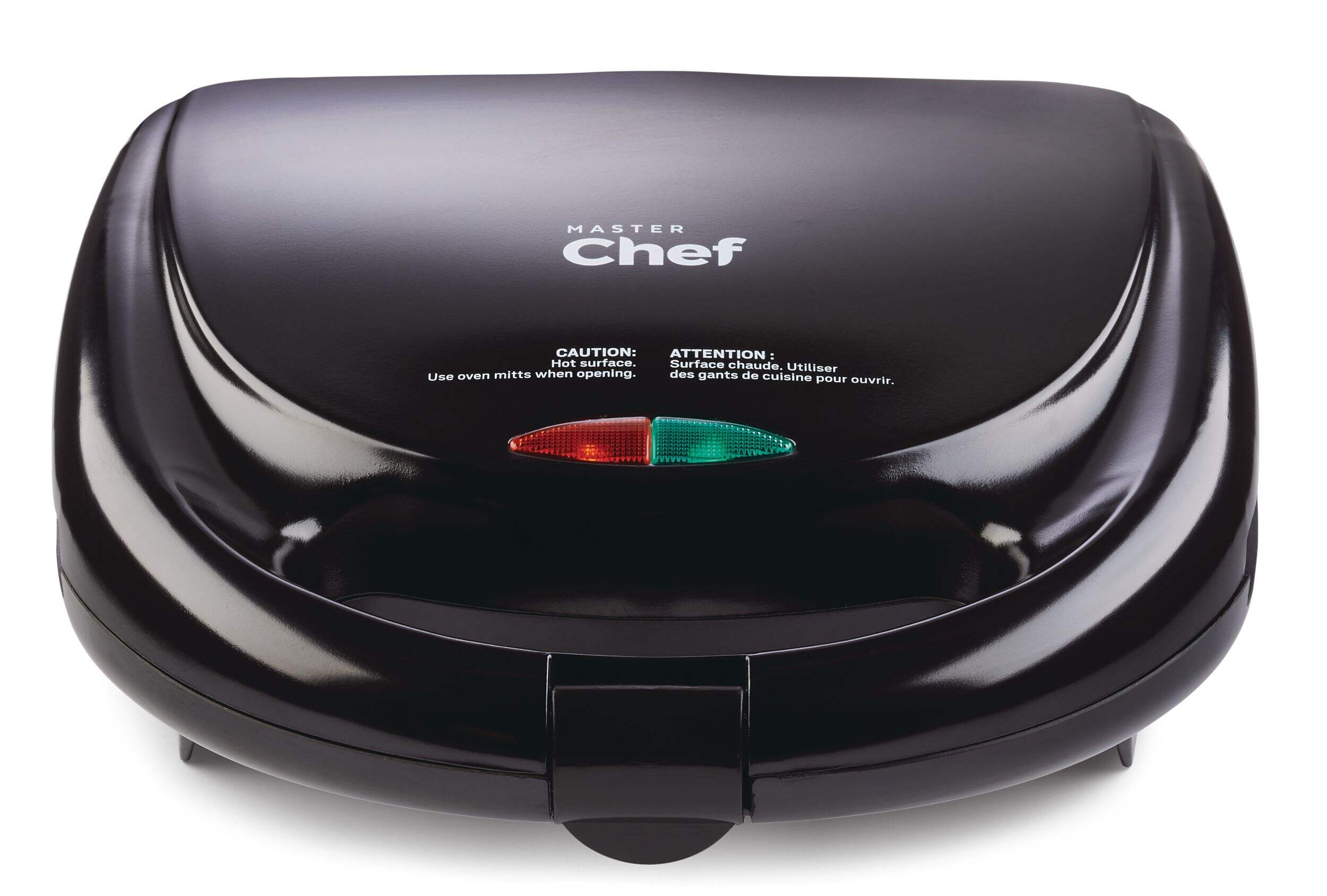 The MASTER Chef Non-Stick Sandwich Maker lets you enjoy your favourite restaurant lunches from your own kitchen. With four deep, non-stick grill pockets and a flexible hinge to keep the pockets level, the sandwich press delivers evenly-cooked results every time. This sandwich toaster has power-on and ready-to-cook indicator lights for ease of use. It will be ready to go in a flash when you crave a grilled cheese or panini sandwich for lunch.