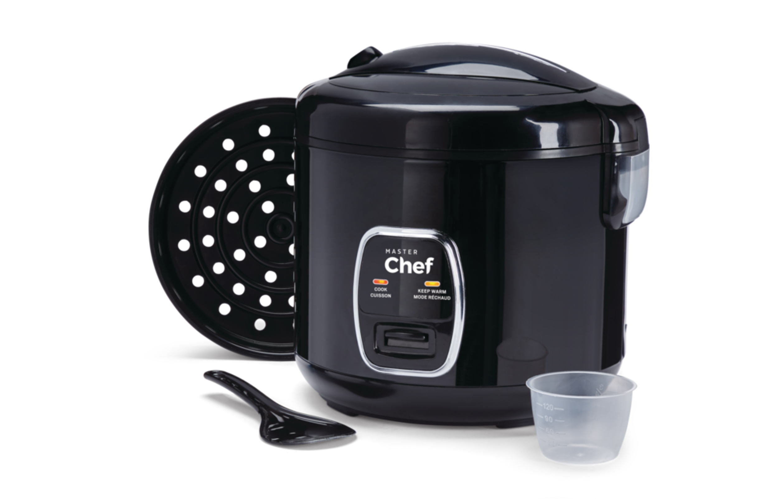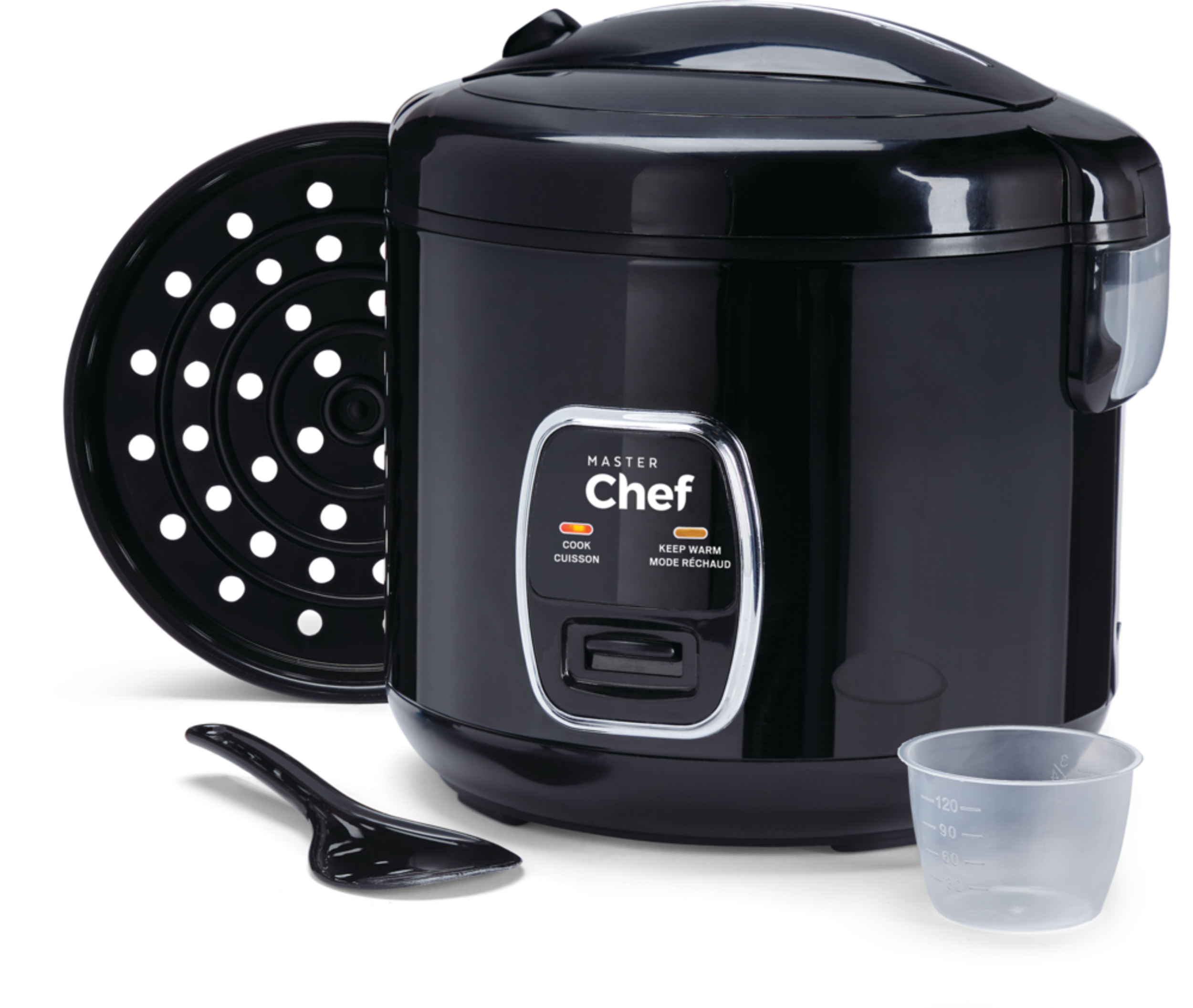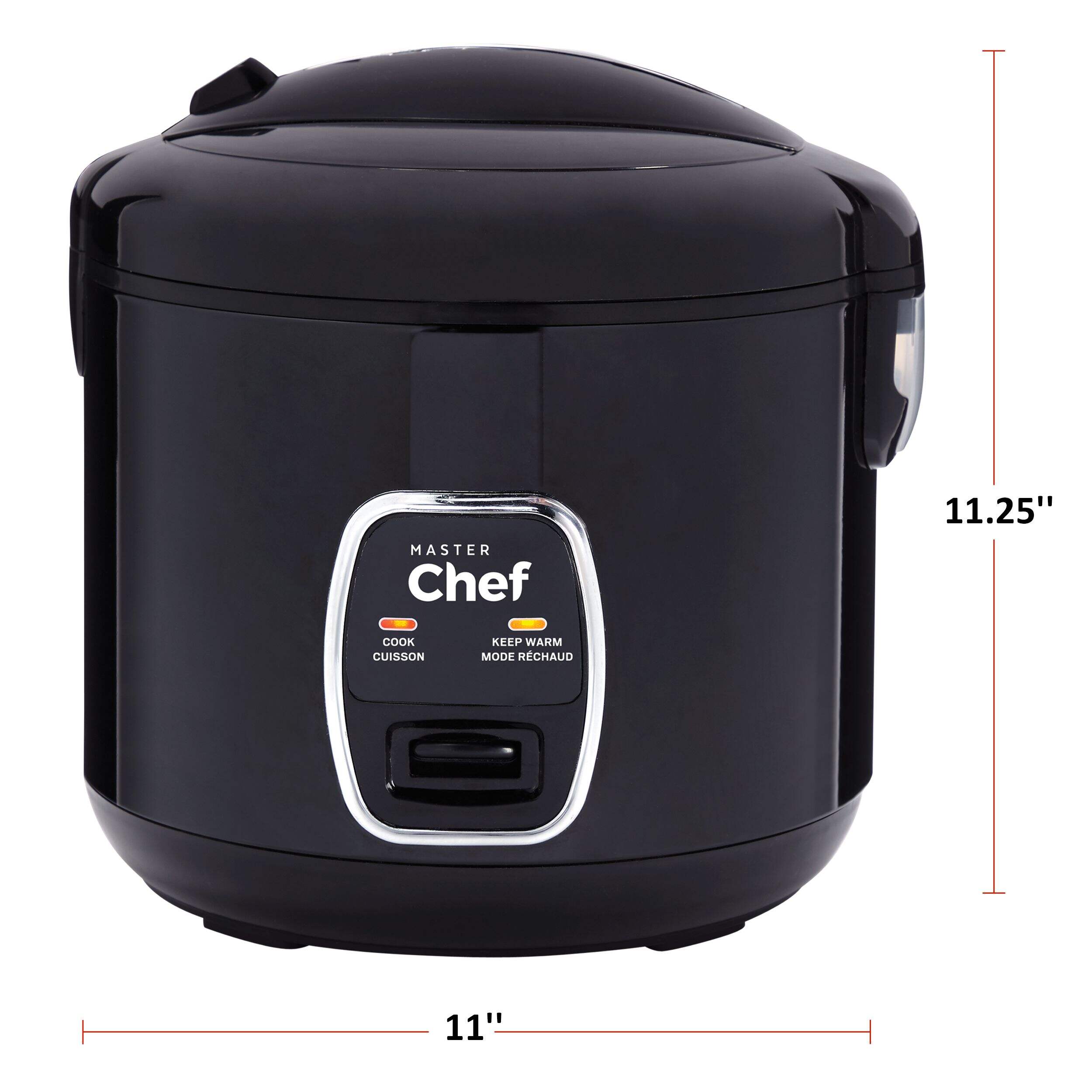 The MASTER Chef One-Touch Non-Stick Rice Cooker with Steamer makes it easy to enjoy perfectly cooked rice with every meal. This large rice cooker is great to have on hand for family dinners or when you're hosting a dinner party. The lid locks and seals in place for effortless cooking, and the included steamer basket allows you to steam vegetables and other food at the same time for added versatility. This easy-to-use rice cooker works with the touch of a button and features a starch overflow collector to keep your rice soft, fluffy, and delicious.