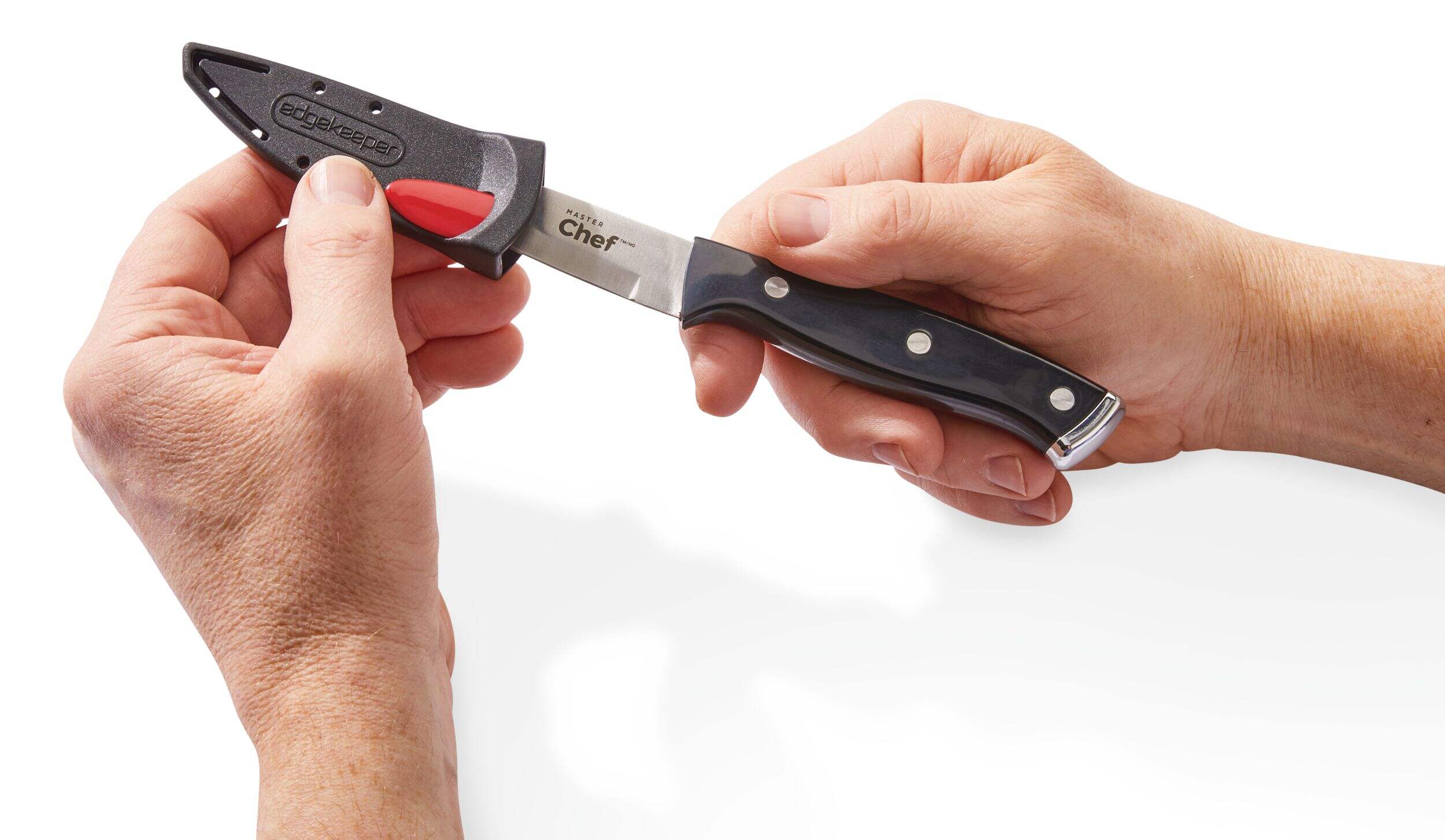 The Master Chef Paring Knife is a convenient and durable kitchen essential. Featuring high-carbon steel blades, this paring knife offers precision and control for slicing and trimming. The built-in knife sharpener ensures your blade stays sharp for long-lasting usage.