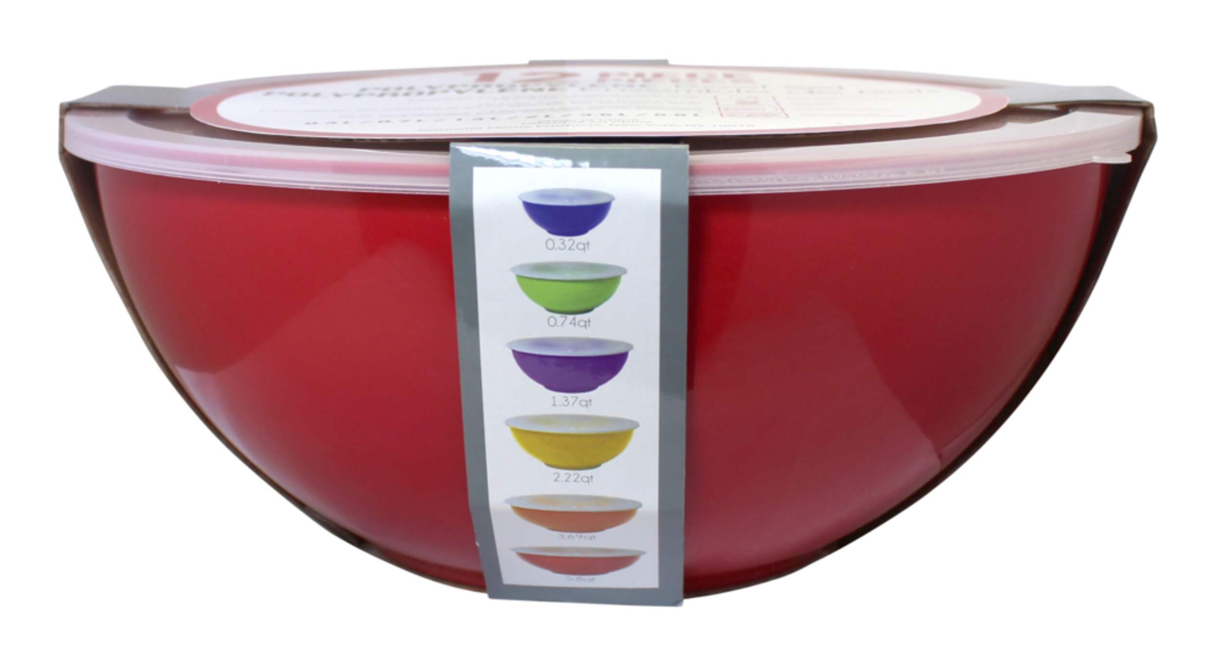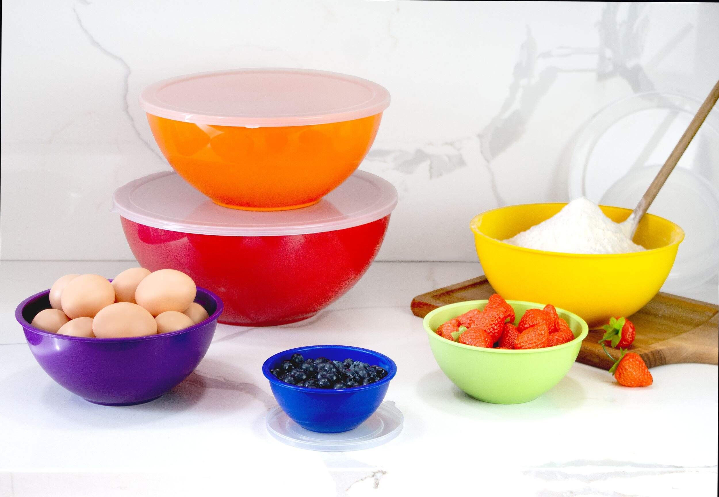 Add a bright pop of colour to your kitchen and store foods and leftovers in this MASTER Chef Plastic Mixing Bowl Set with Lids. This handy set of six nesting bowls in different sizes is ideal for storing a variety of foods, and the bowls can be safely used in the freezer or in the microwave. Perfect for advanced meal planning, these bowls have tight-fitting lids to ensure the contents stay fresh.