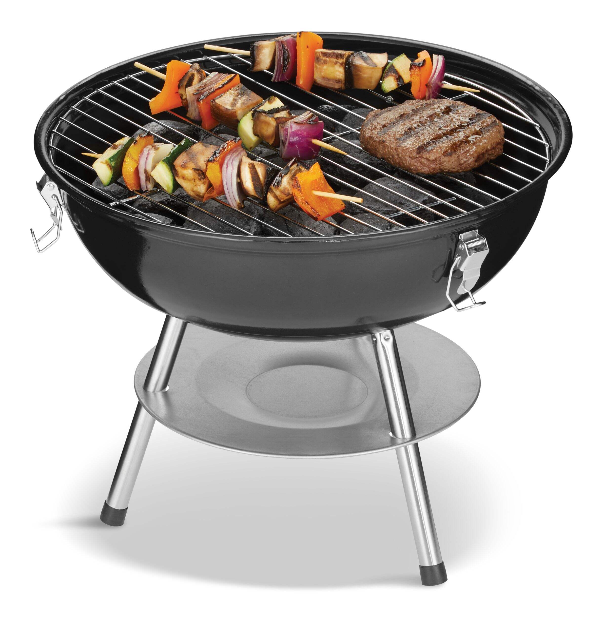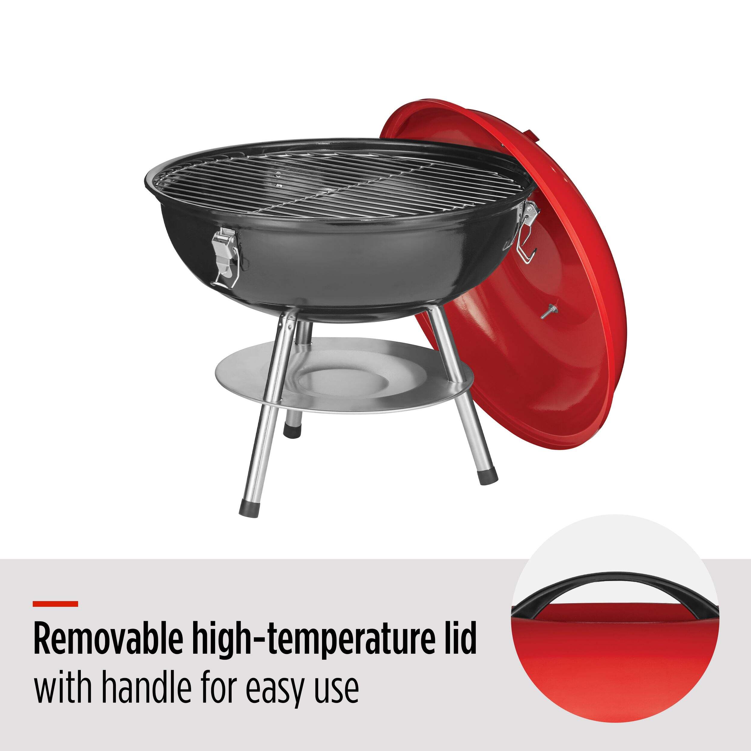 The MASTER Chef Portable 14-in Charcoal Kettle BBQ Grill with Folding Stand is a lightweight and compact grilling solution, perfect for small spaces and outdoor adventures. Featuring a chrome-plated cooking surface, this grill provides ample room for cooking your favourite meals. Its durable steel body ensures long-lasting performance, while the folding stand allows for effortless portability and storage. Whether at home or on the go, this grill is an ideal choice for charcoal enthusiasts.