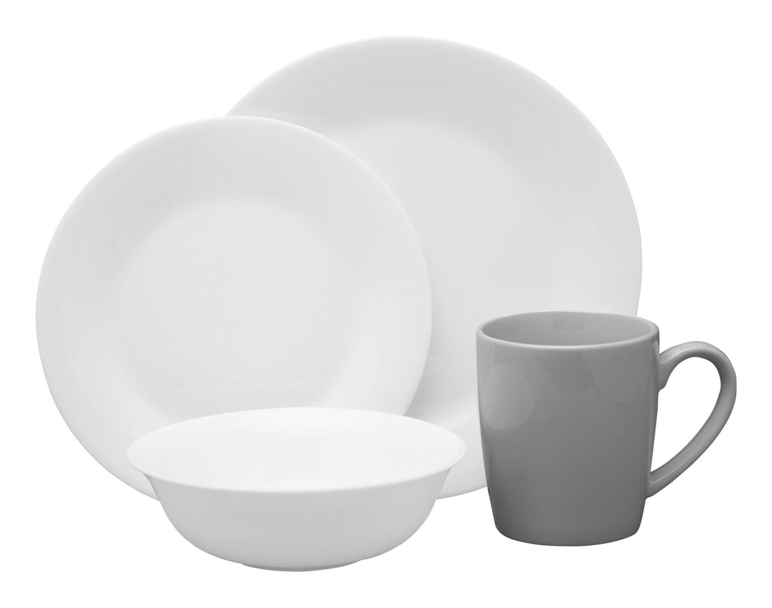 Set includes: 4 dinner plates, 4 side plates, 4 mugs, and 4 bowls