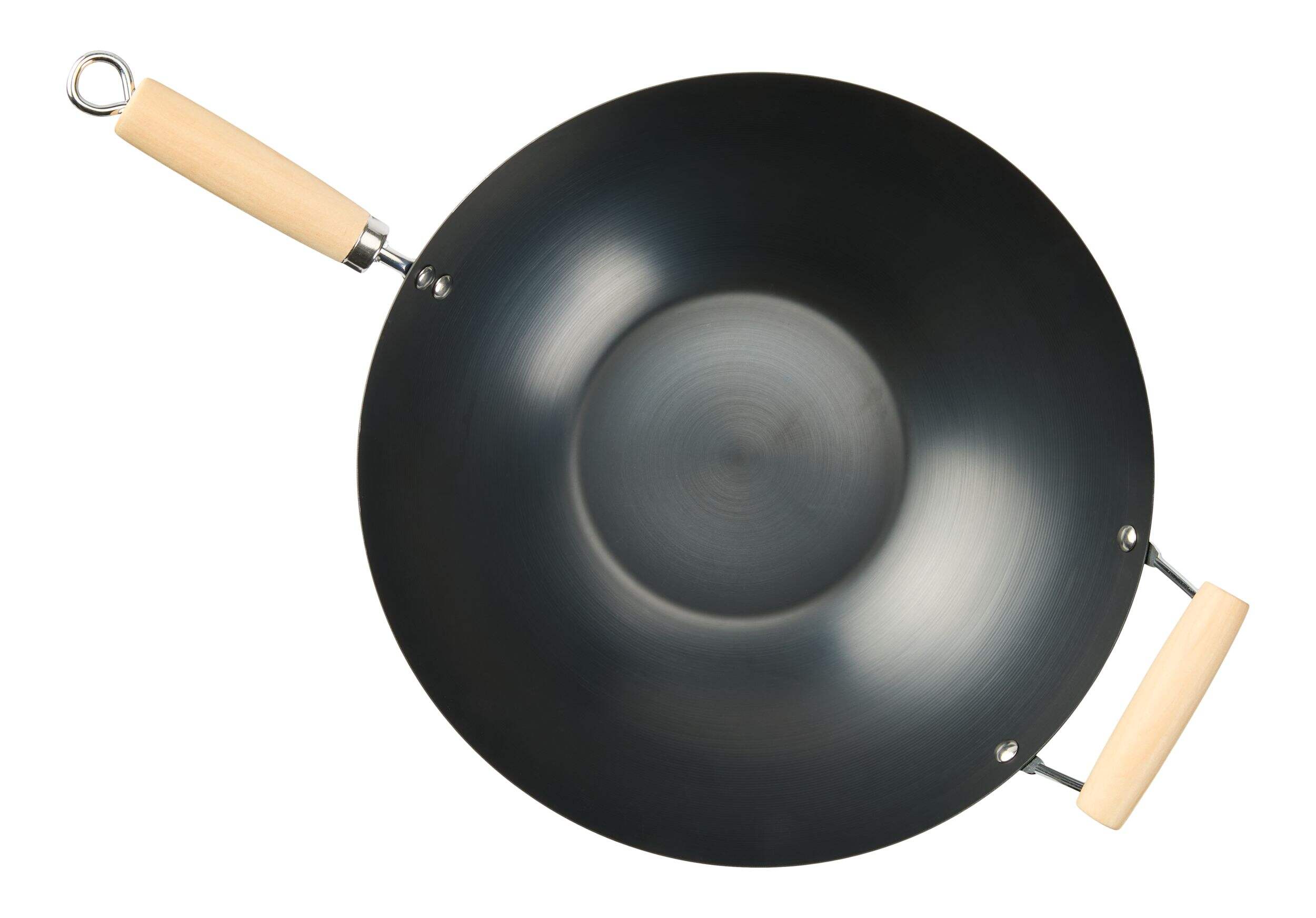 Elevate your cooking experience with the Master Chef Rust-Resistant Carbon Steel Wok. This 14-inch wok pan is designed to provide excellent thermal performance, making it perfect for a variety of dishes. The wooden helper handle ensures added support and ease during cooking, while its compatibility with multiple cooktop types, including induction stove woks and electric stove woks, offers versatile use.
