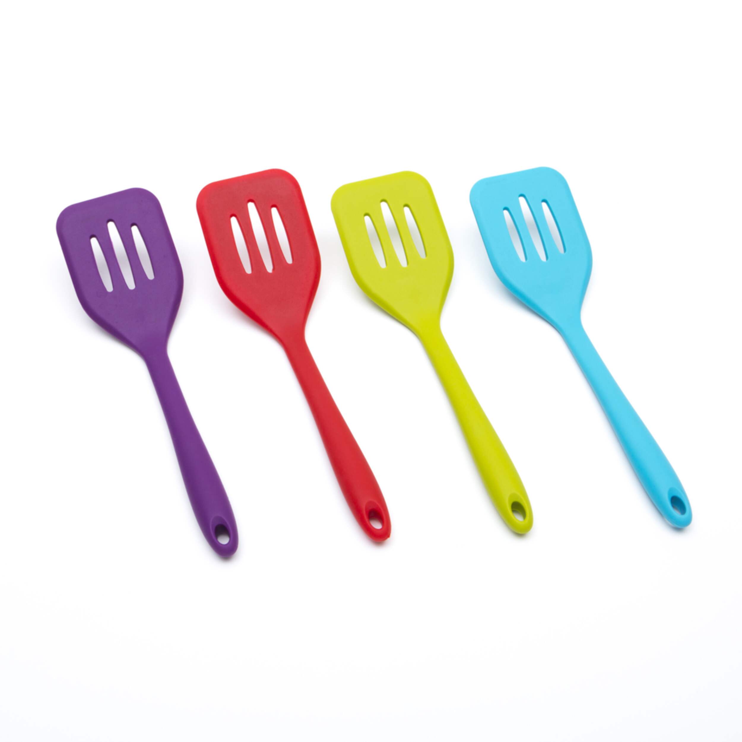 Make preparing food at home simpler with help from a MASTER Chef Silicone Slotted Turner. This slotted turner makes it easy to flip or serve food and the silicone turner is designed to glide easily beneath foods on non-stick cookware. A must-have everyday tool in any kitchen, the heat-resistant turner withstands temperatures up to 500 °F and is dishwasher safe. The practical chef turner is available in assorted stylish colours of red, green, blue, or purple.