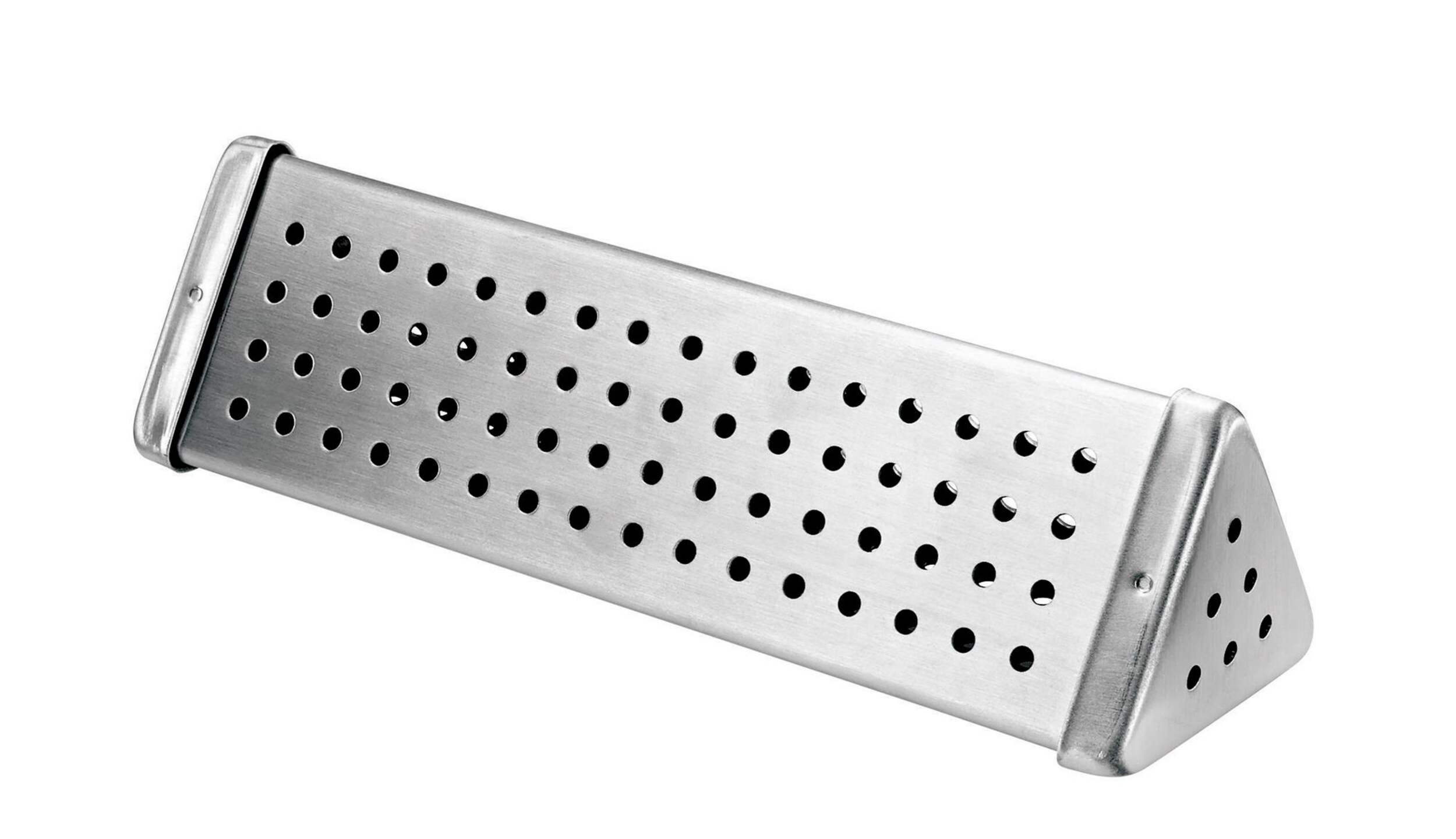 Make any barbecue into a smoker with the Master Chef® Smoker Box. Built with a space-saving triangular design, this smoker box can be positioned anywhere in the grill. The smoker box includes double sided openings making it easy to load and clean, and allowing you to focus on the finished product!