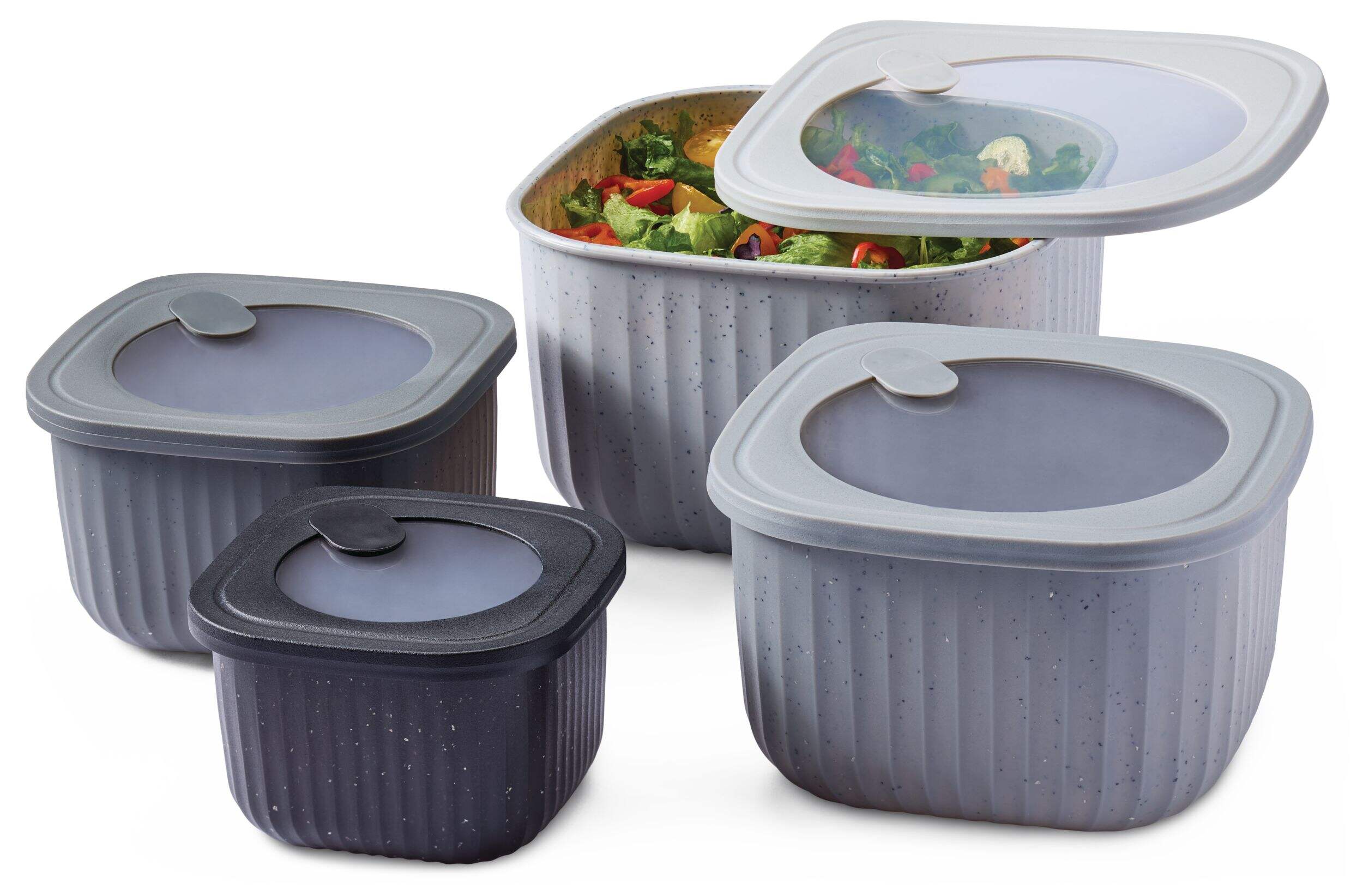 • Set includes containers in the following sizes: 3.69 qt, 2.32 qt, 1.42 qt, and 24.3 oz