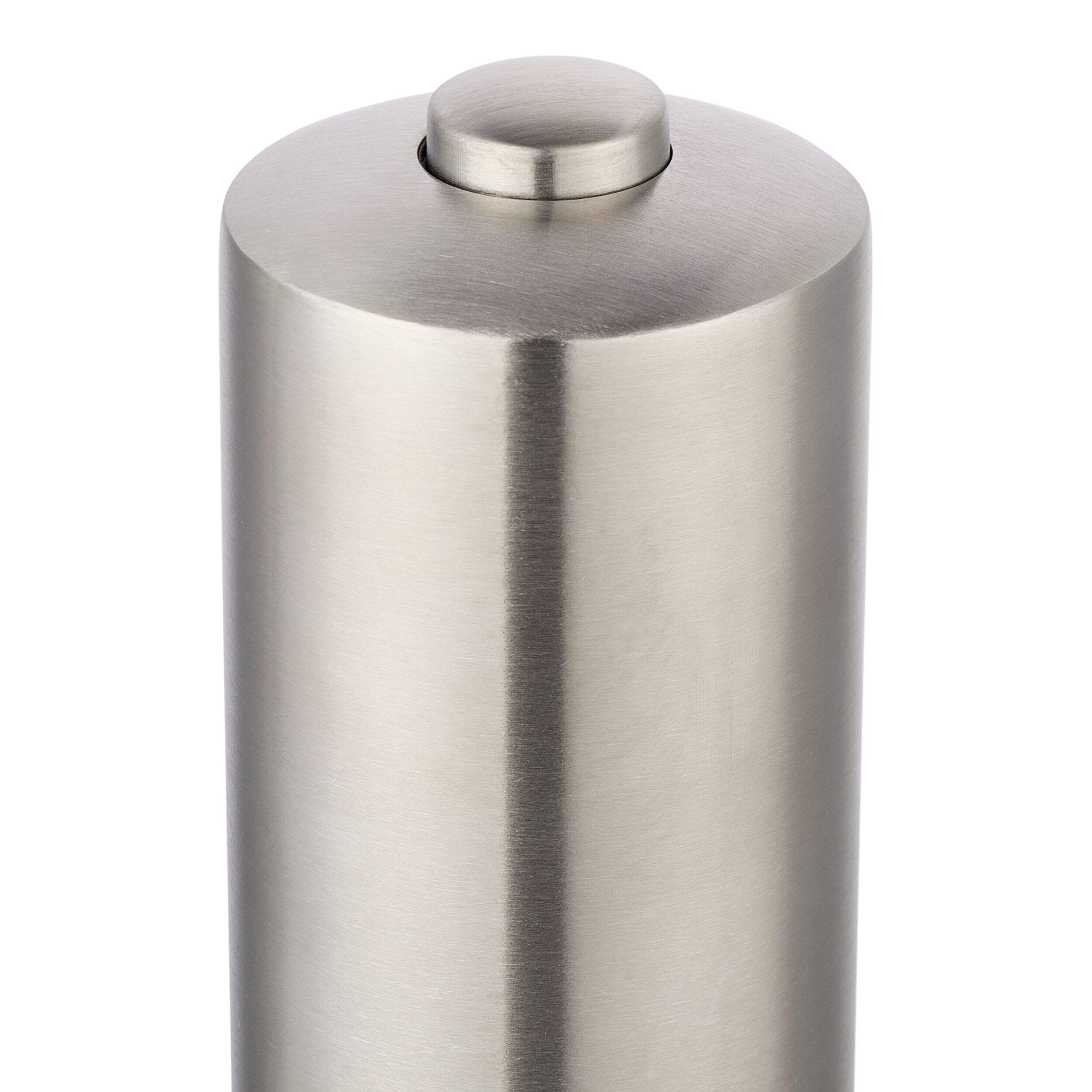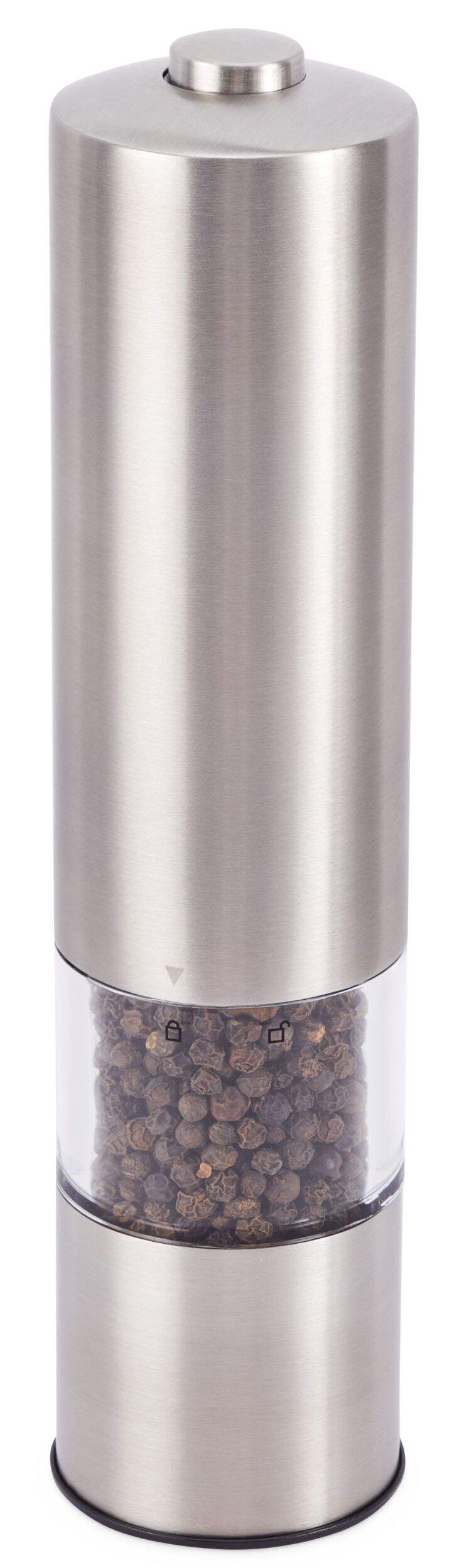 The MASTER Chef Stainless Steel Electric Salt & Pepper Grinder with LED Light offers a convenient way to season food. This stainless steel electric mill features a fully adjustable coarseness setting and a ceramic grinder for precise grinding.