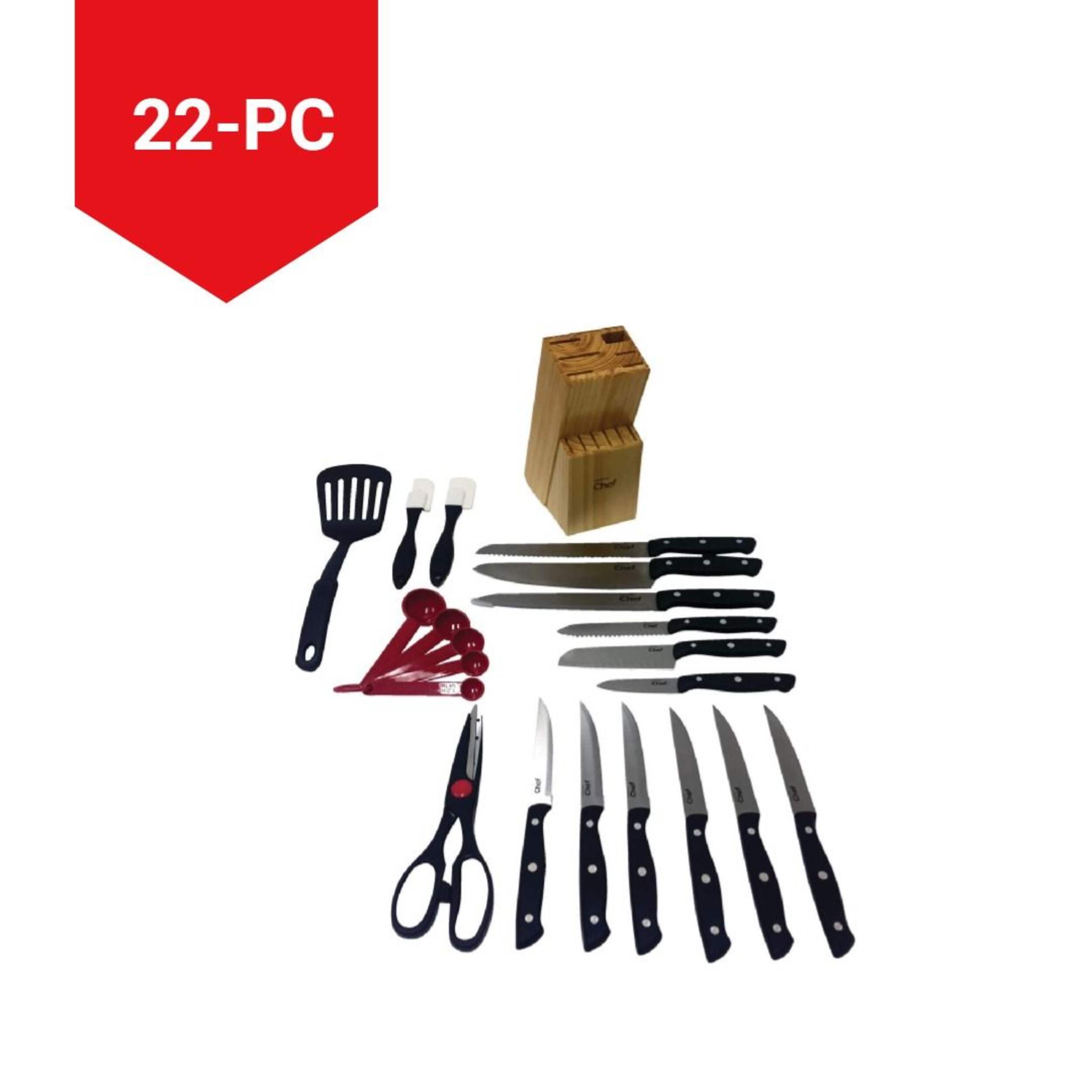 22 Piece set includes: 8" (20 cm) chef knife