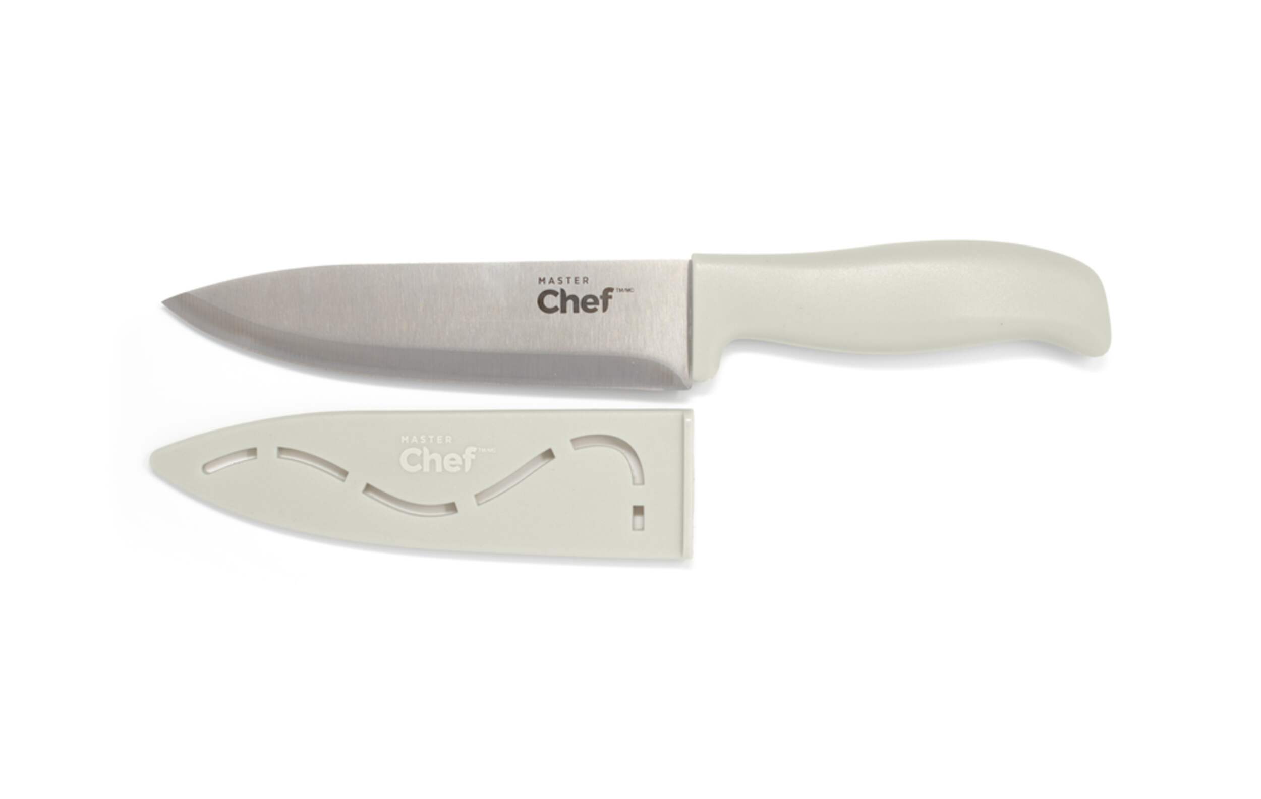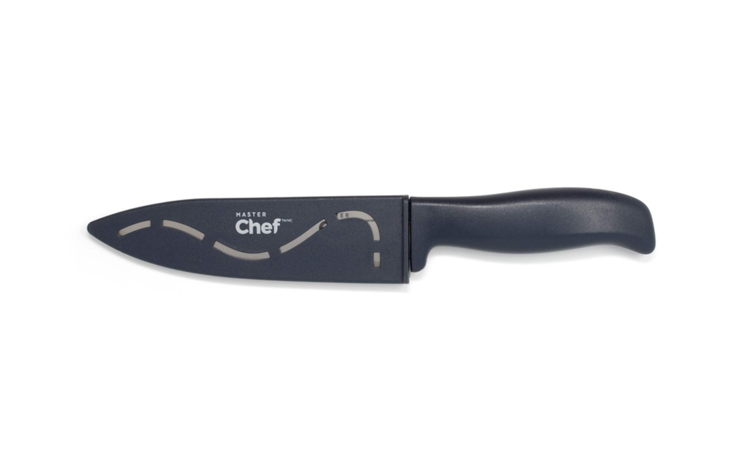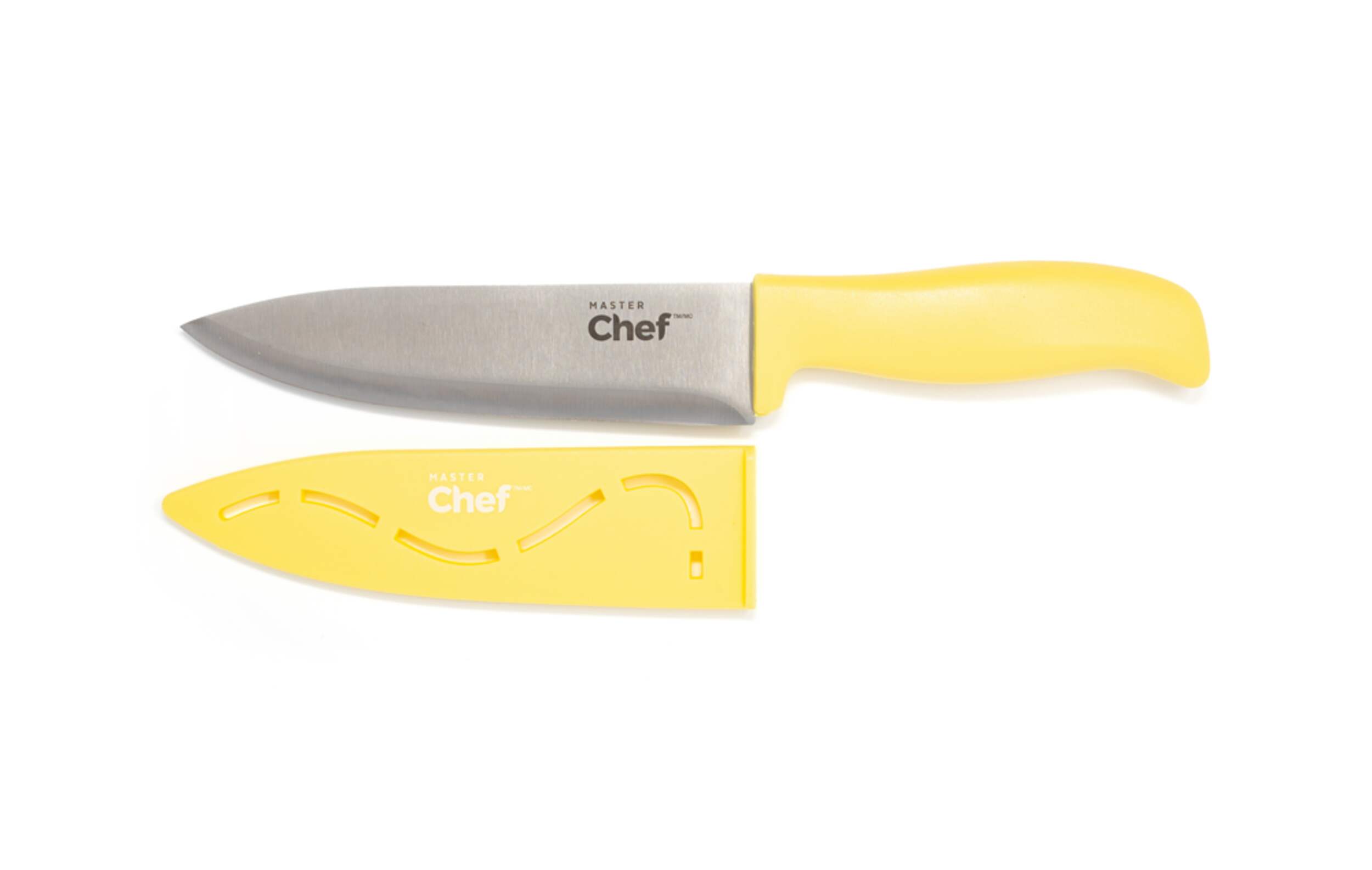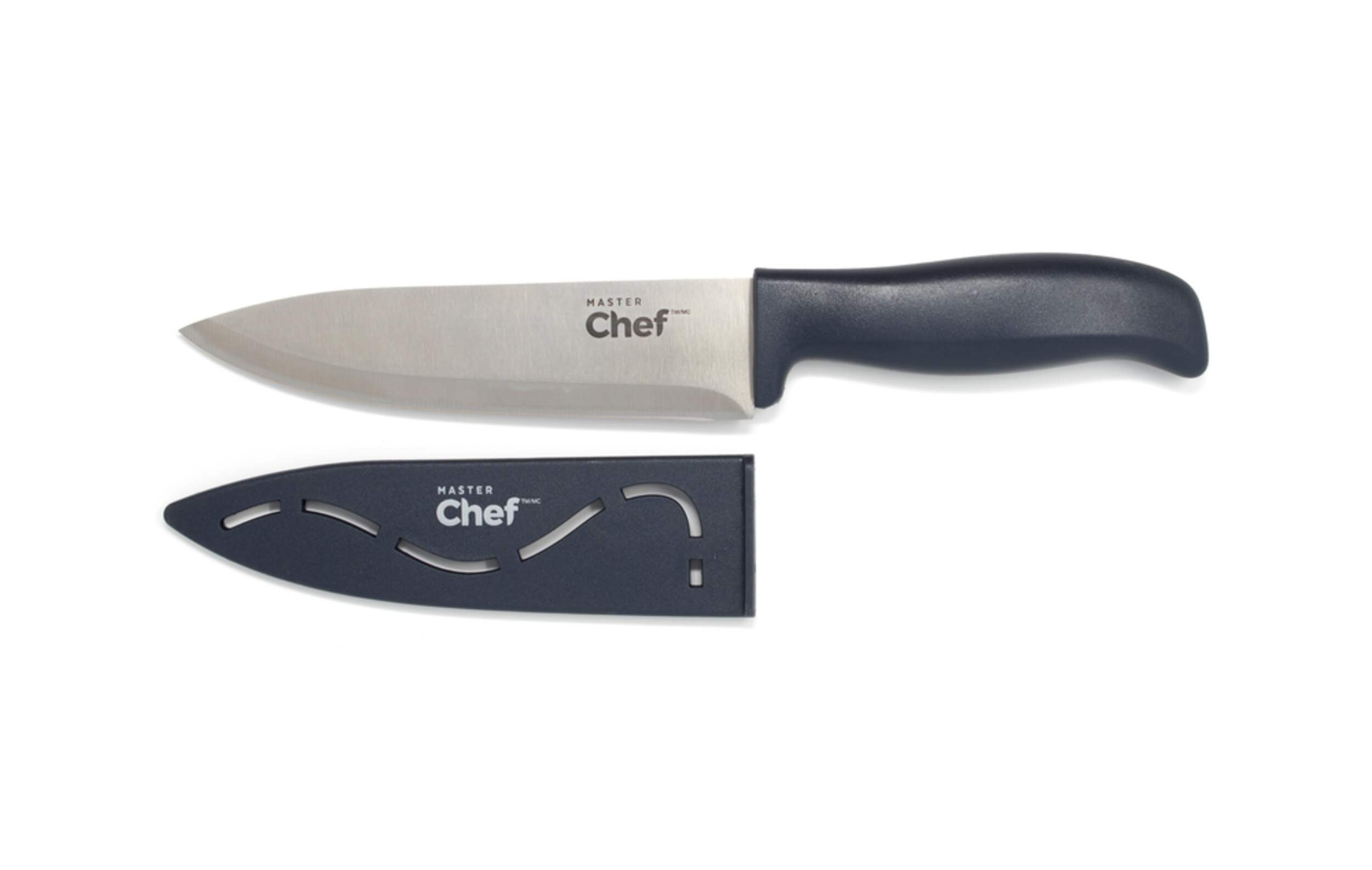 This MASTER Chef Knife features a soft-touch ergonomic handle and stainless steel blade for easy use