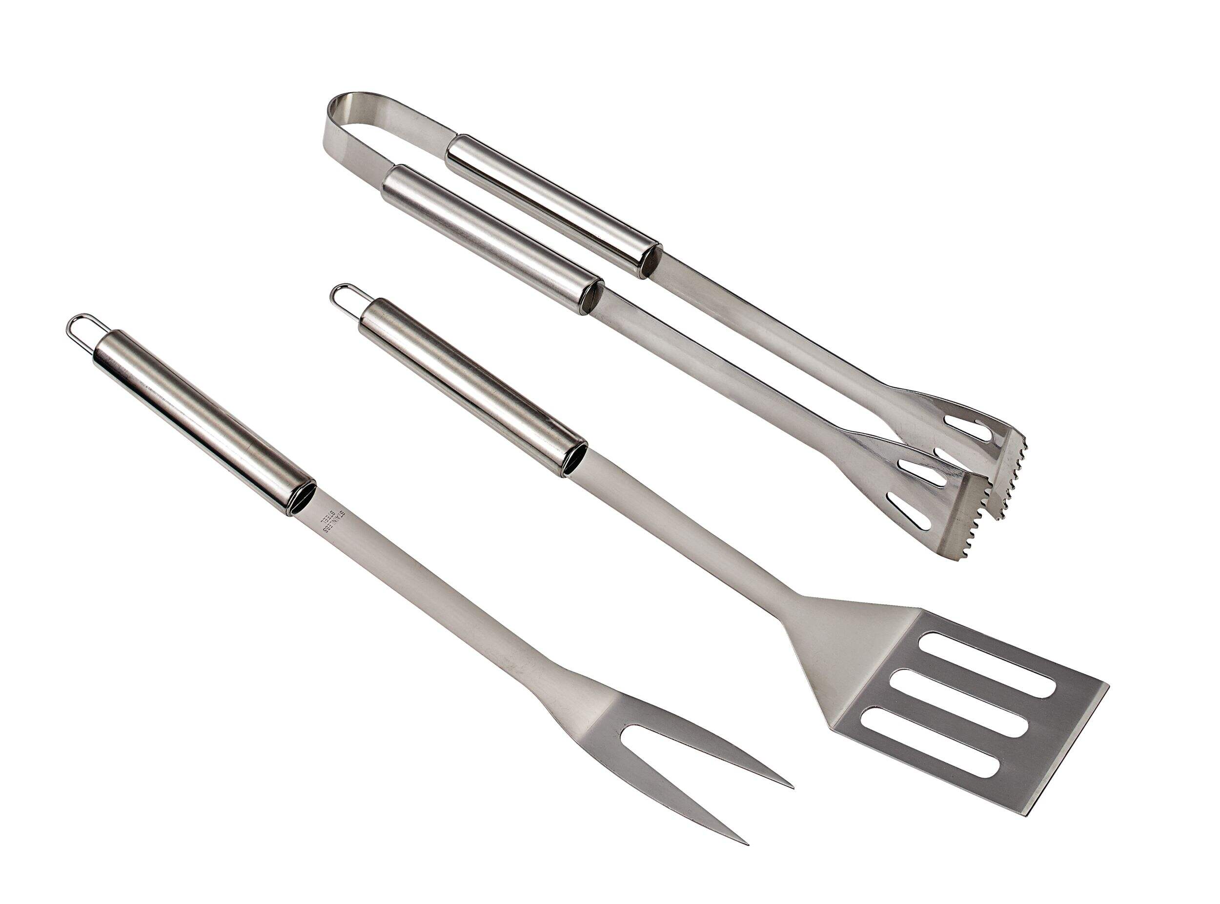 The MASTER Chef BBQ Tools Set includes everything you need to start grilling. An ideal choice for experienced and inexperienced barbecuers, this BBQ toolset includes three essential barbecue utensils: a spatula for flipping favourites; a barbecue fork for lifting and turning from the grill; and a set of tongs for handling heavier meats and vegetables. Made for durability and ease of use, this 3-piece toolset makes a great gift, too.