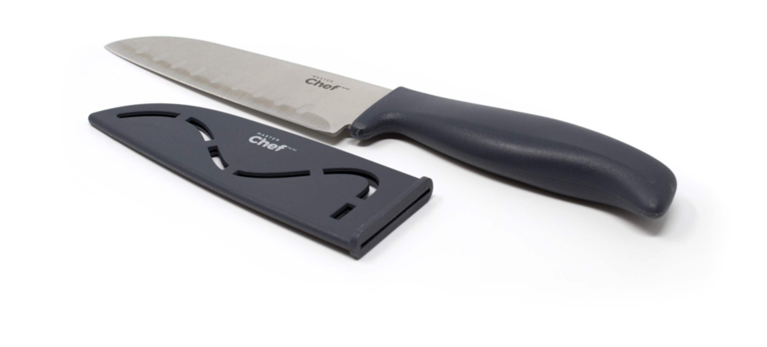 This MASTER Chef Santoku Knife features a soft-touch ergonomic handle for an easy grip