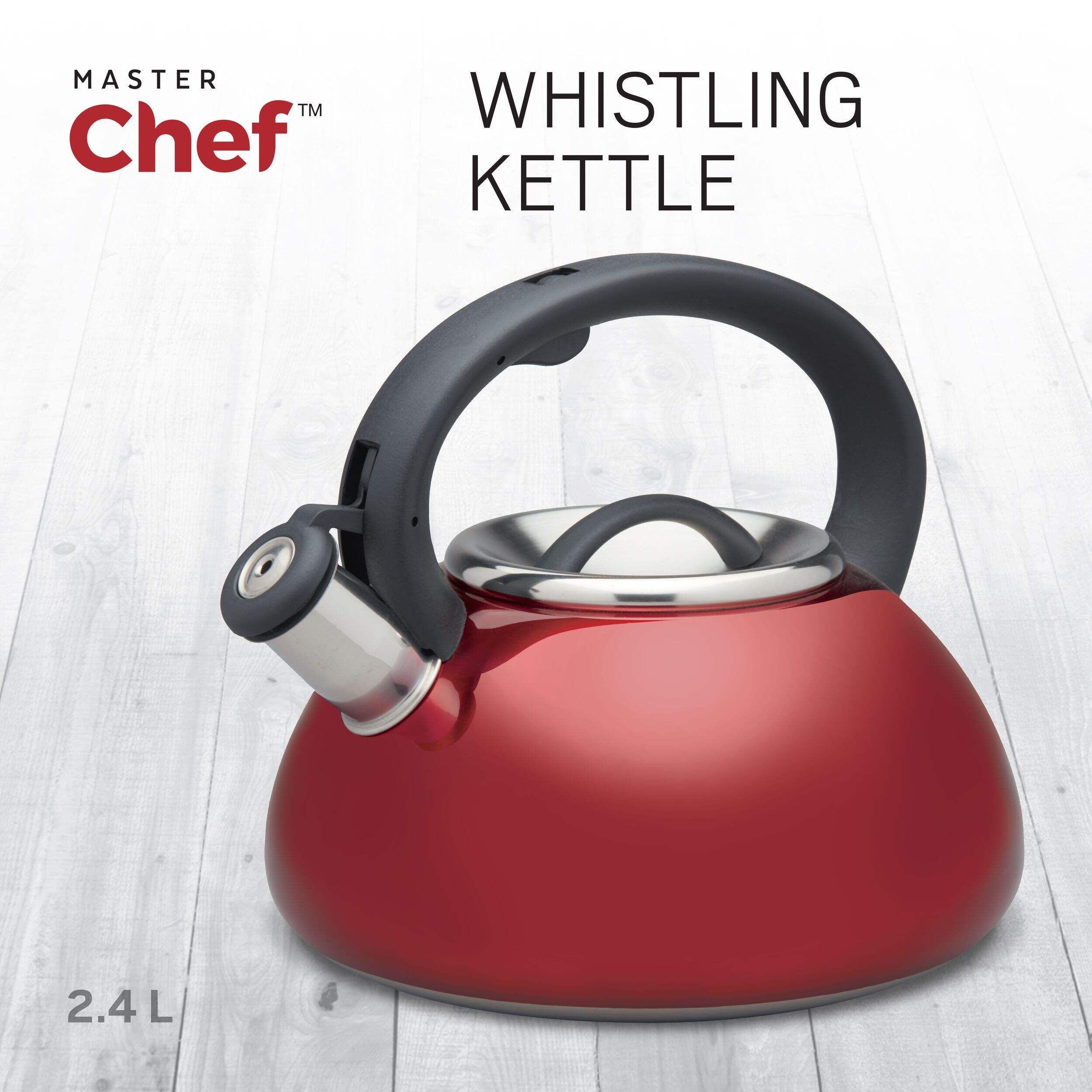 The MASTER Chef Stainless Steel Stovetop Kettle brings a touch of elegance to any kitchen. The stainless steel exterior with a painted body gives it a sleek, modern look that's as practical as it is good-looking.