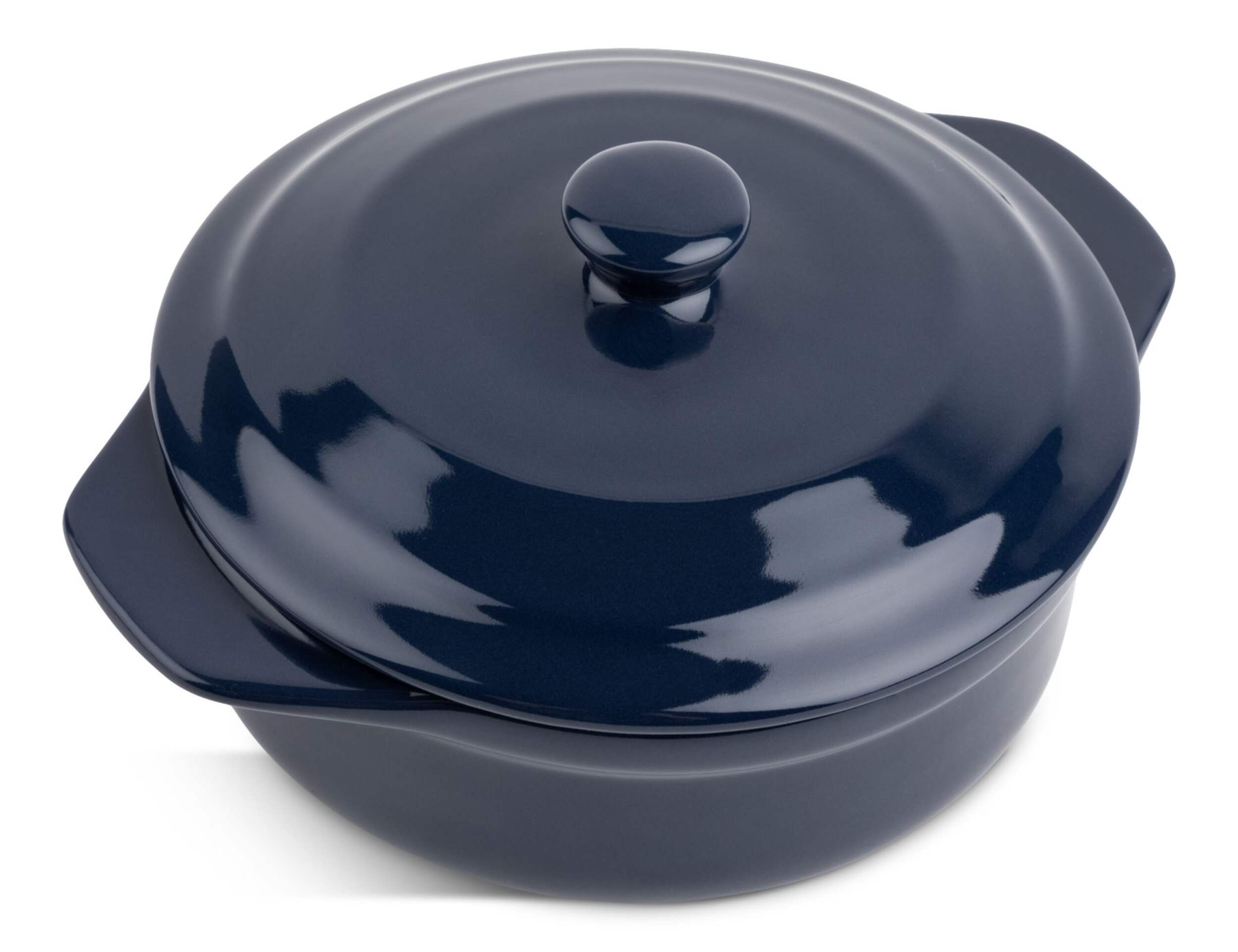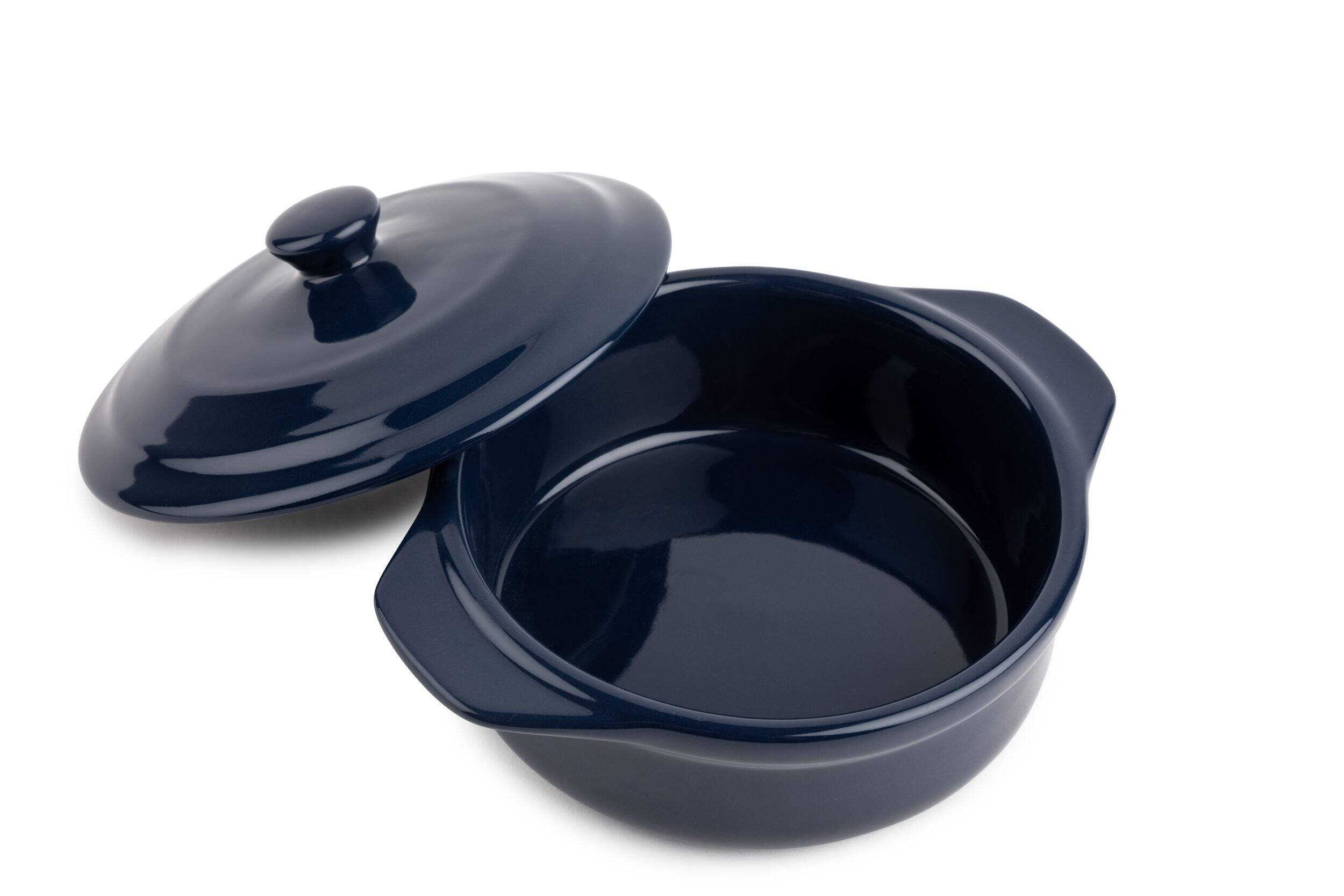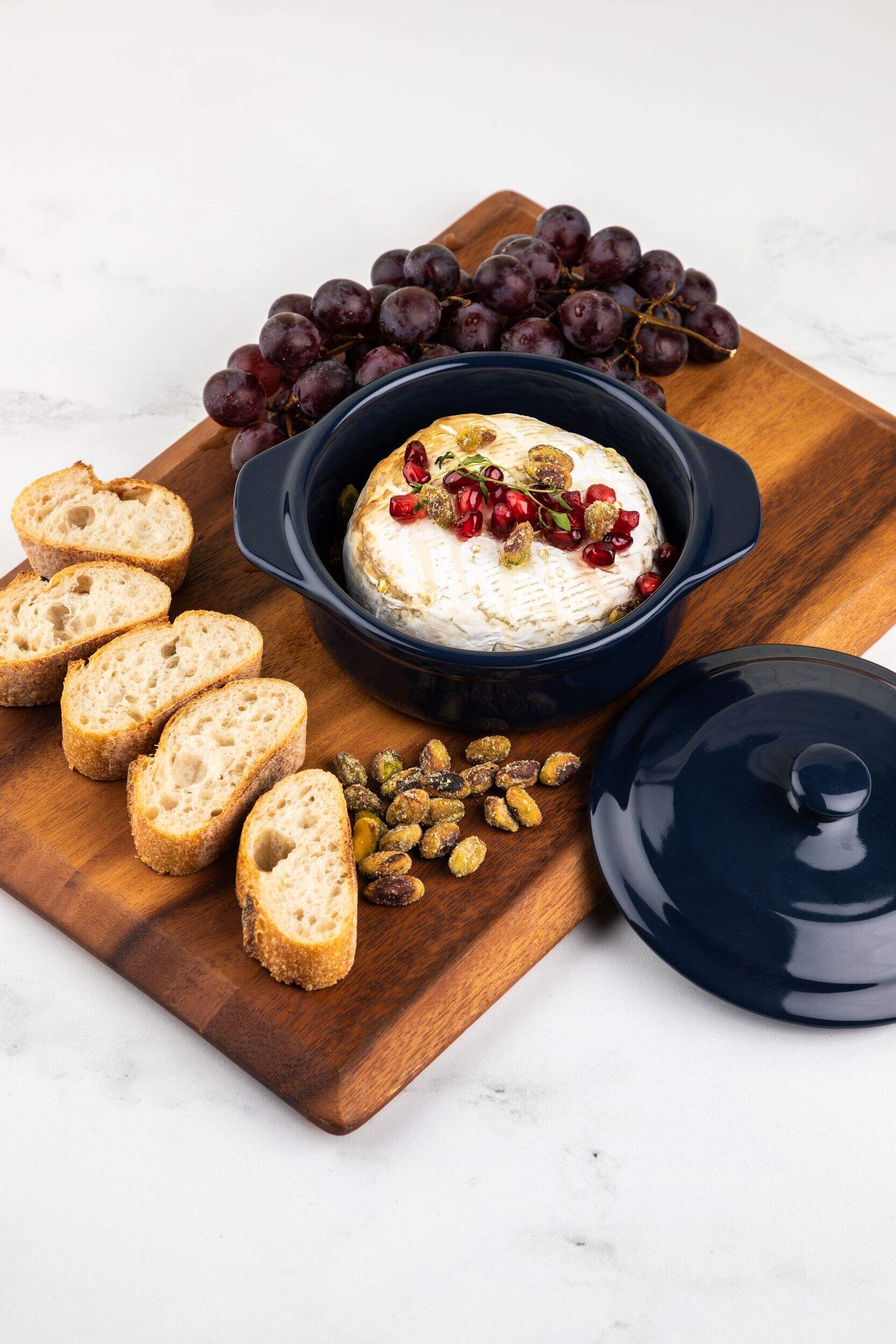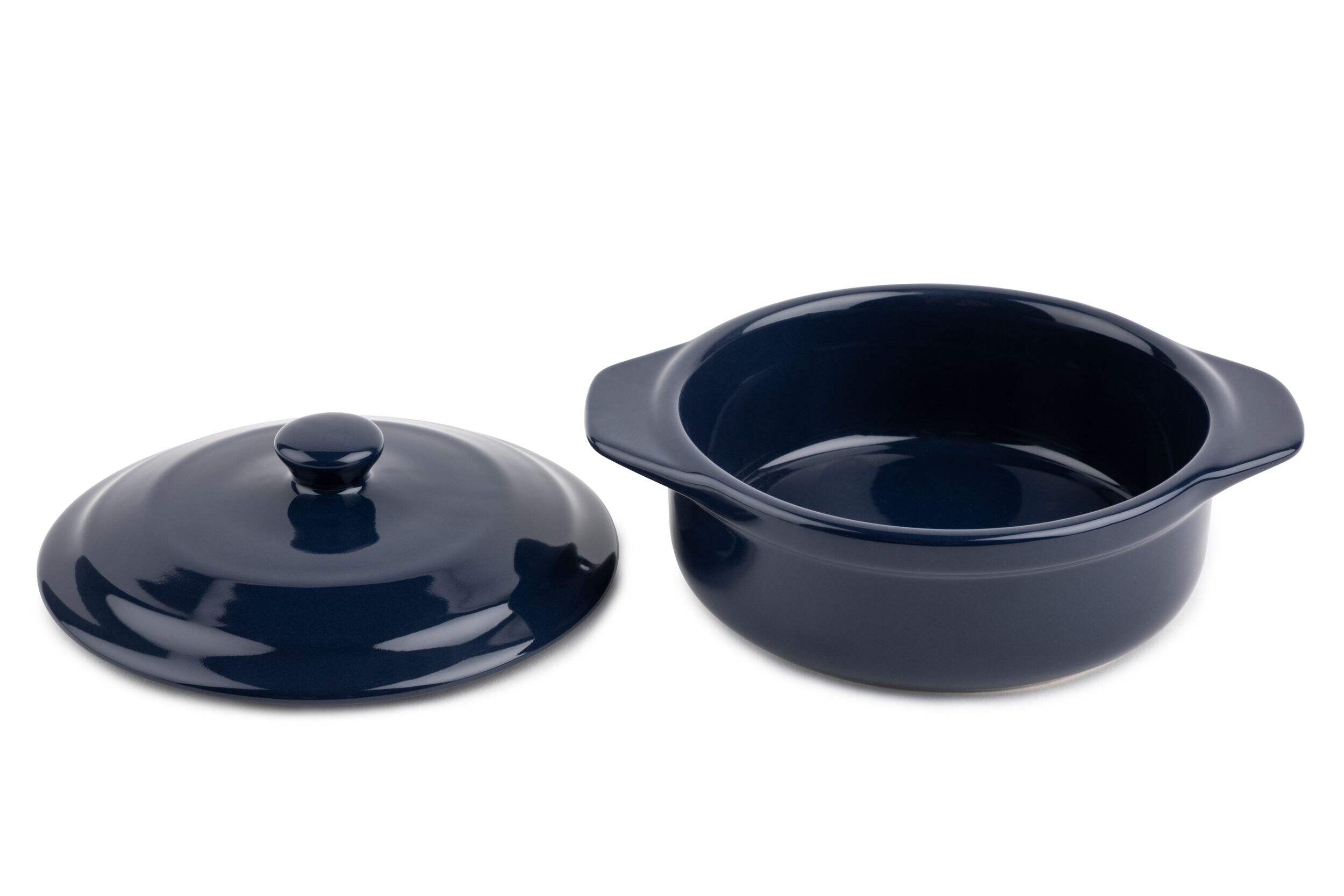 The MASTER Chef Stoneware Brie Baker, Navy Blue, is a must for any cheeseboard. Crafted from stoneware to retain heat and moisture during baking, transporting this brie baker from oven to table is a breeze thanks to its coated exterior that resists staining and rust, as well as comfortable side handles. Whether you're serving brie, other soft cheeses, or dips, this baker keeps your ingredients fresh and prevents soggy bread. Its microwave and dishwasher-safe construction means easy cleaning too. Durable and long-lasting - simply pop this kitchen baker in the oven to warm your favourite cheese without drying it out.